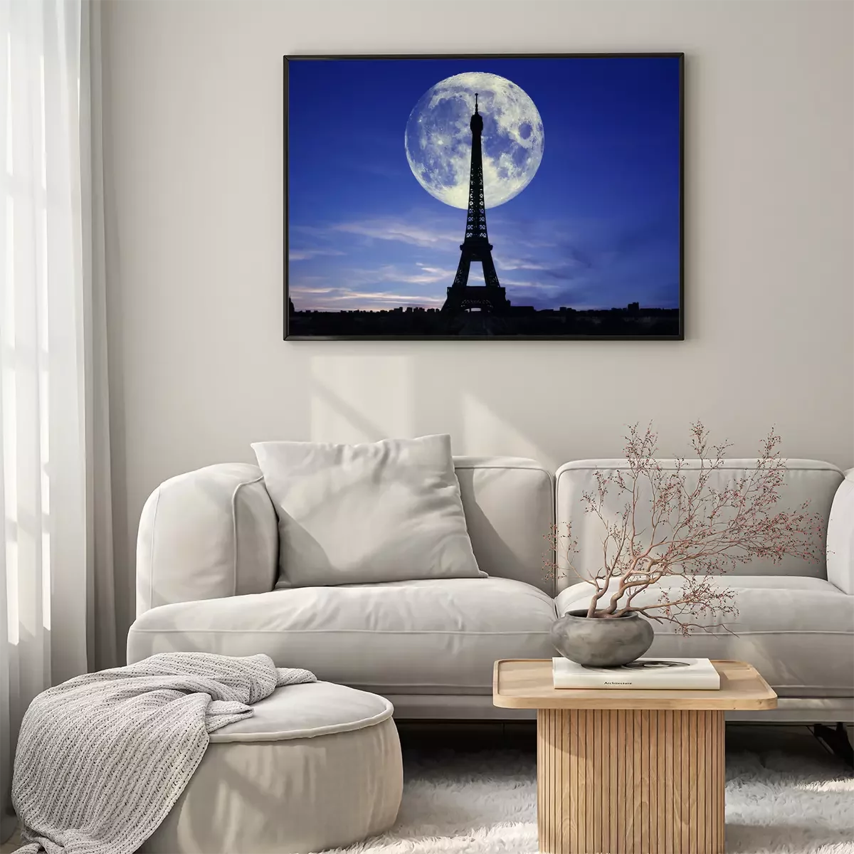 Poster: Der Eiffelturm und der Mond bei Nacht