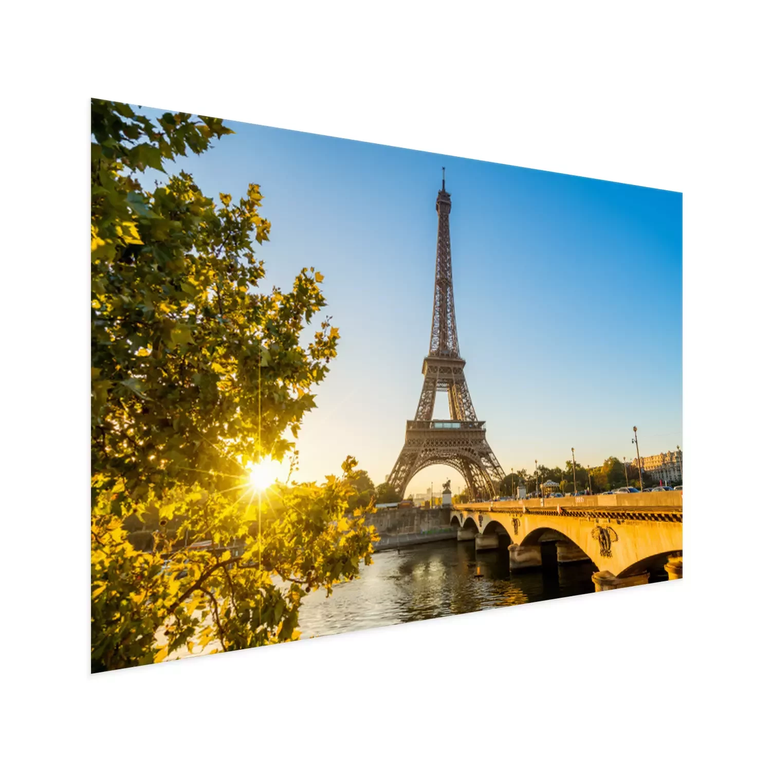 Poster: Der Eiffelturm vor klarem Himmel bei Sonnenaufgang