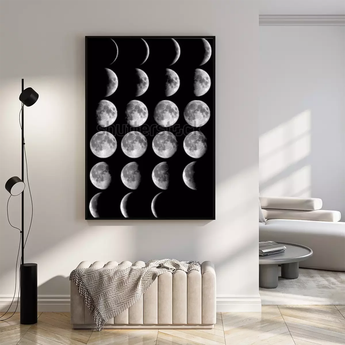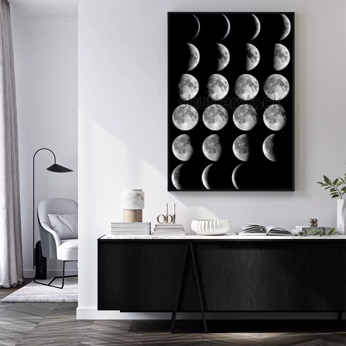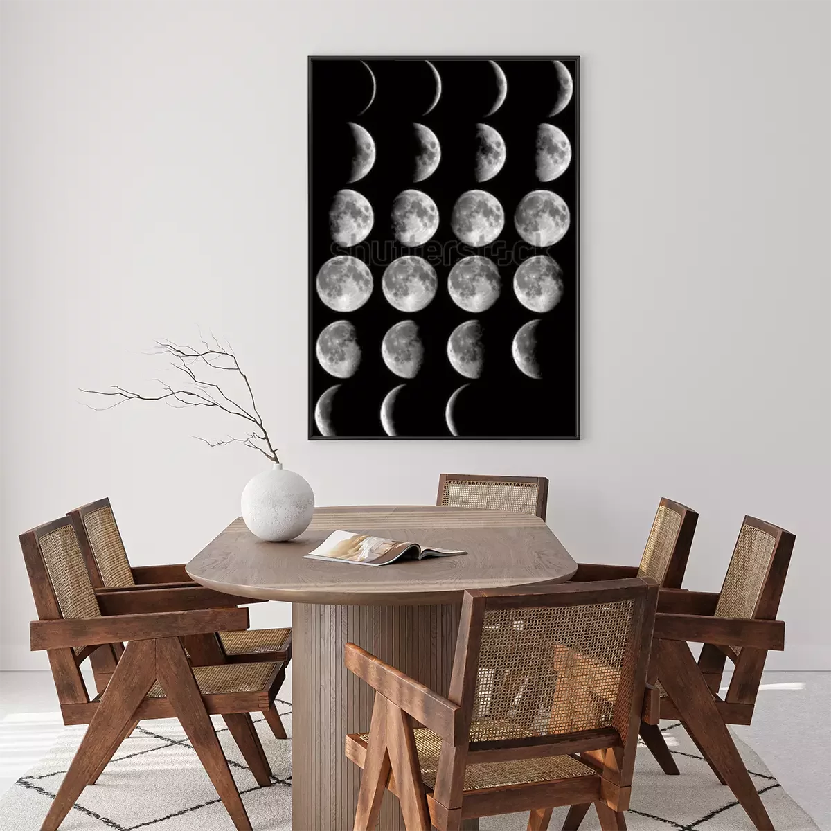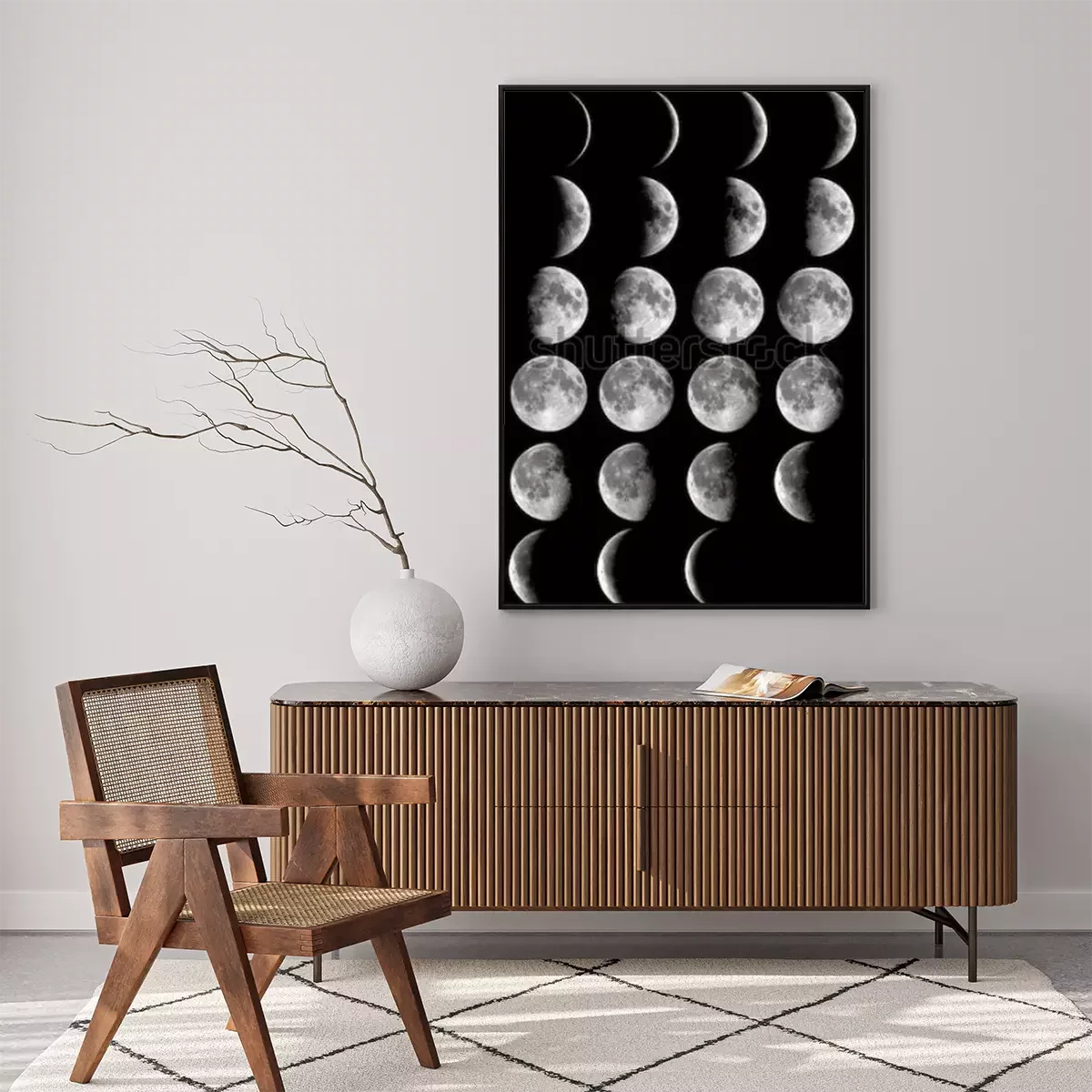 Poster: Der Weltraum und der Mond in verschiedenen Phasen