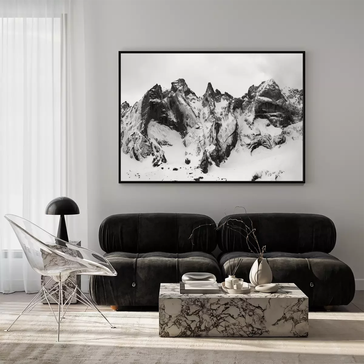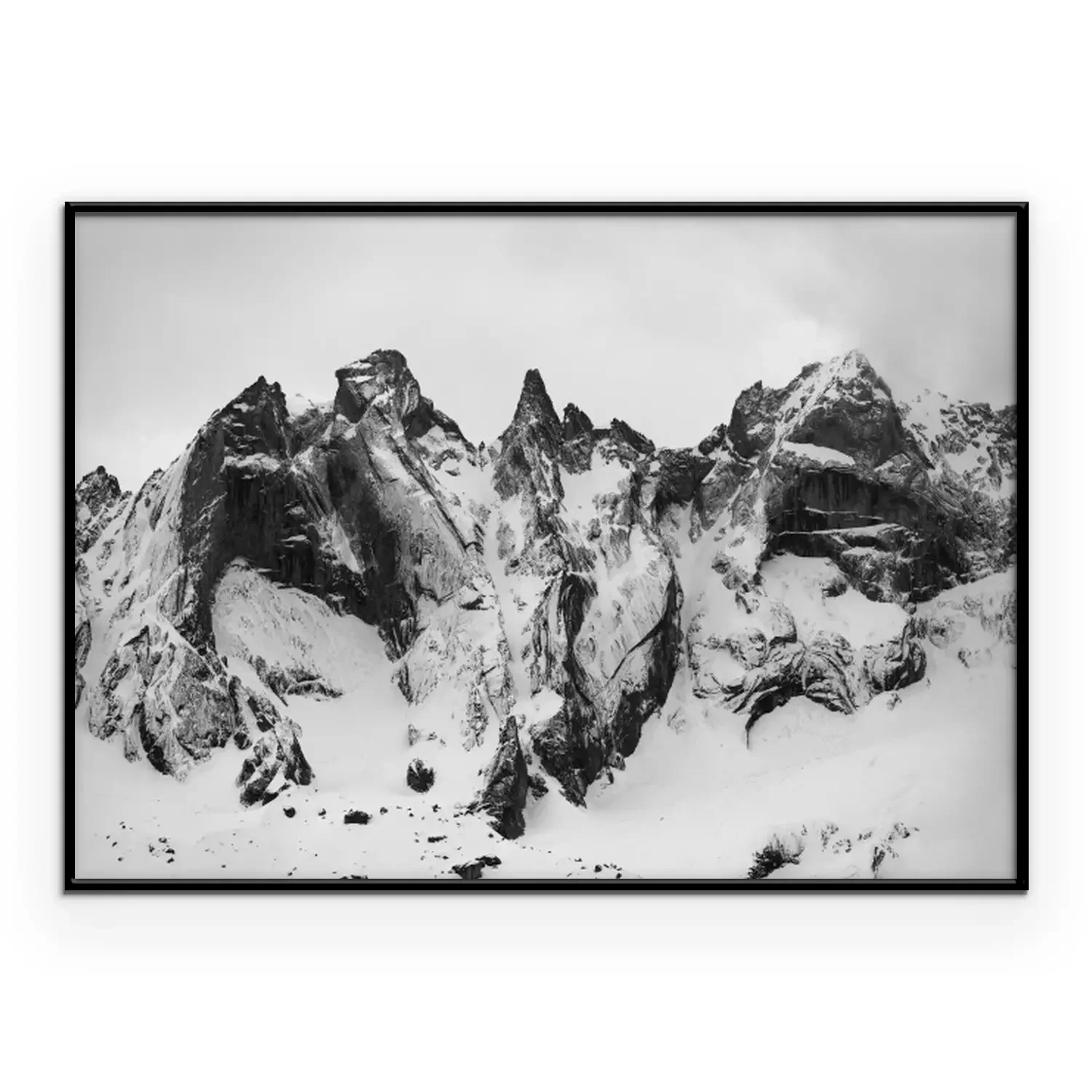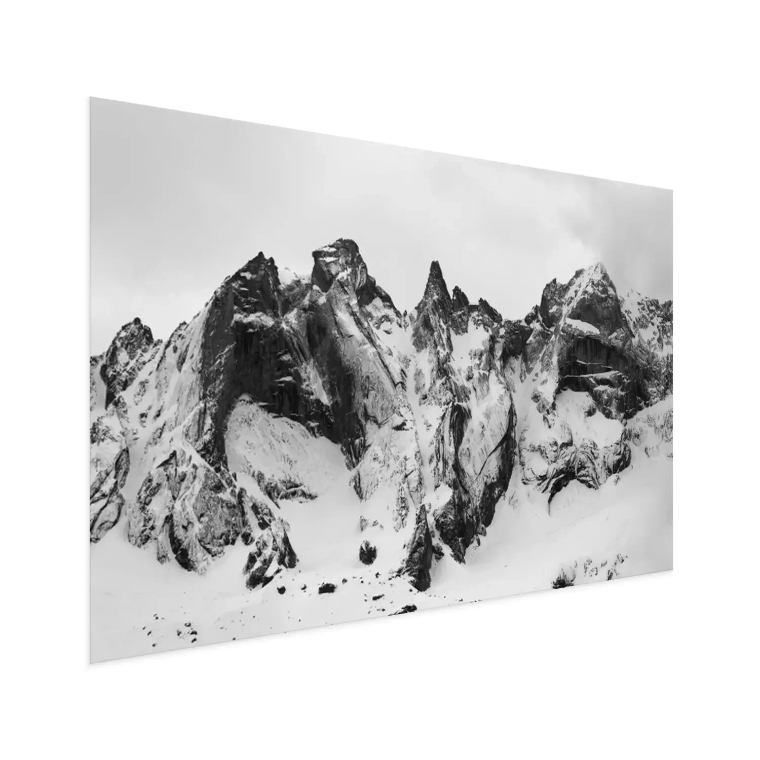 Poster: Detail der Sciero Gruppe in den Rhaetian Alpen in der Schweiz. Schwarz-Weiß-Kunst-Berg-Winter