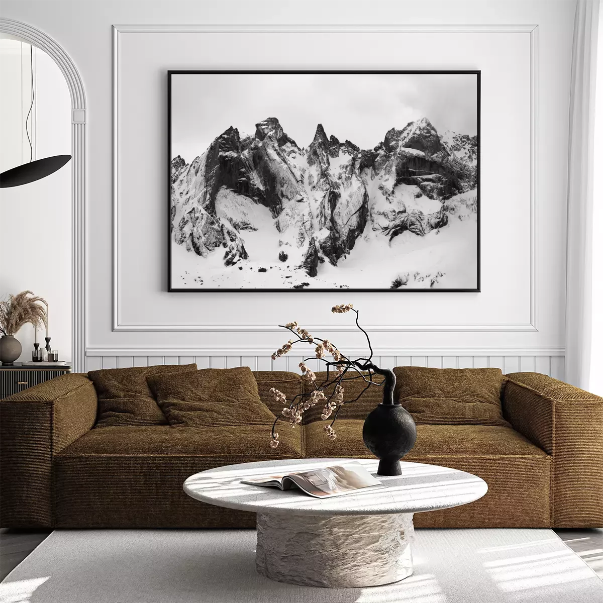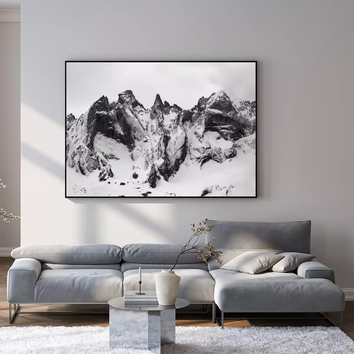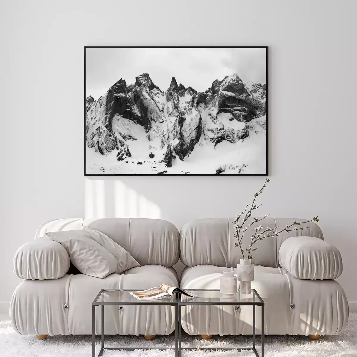 Poster: Detail der Sciero Gruppe in den Rhaetian Alpen in der Schweiz. Schwarz-Weiß-Kunst-Berg-Winter
