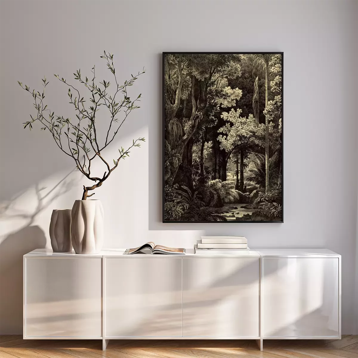 Poster: Dichter Amazonas-Dschungel Retro-Zeichnung