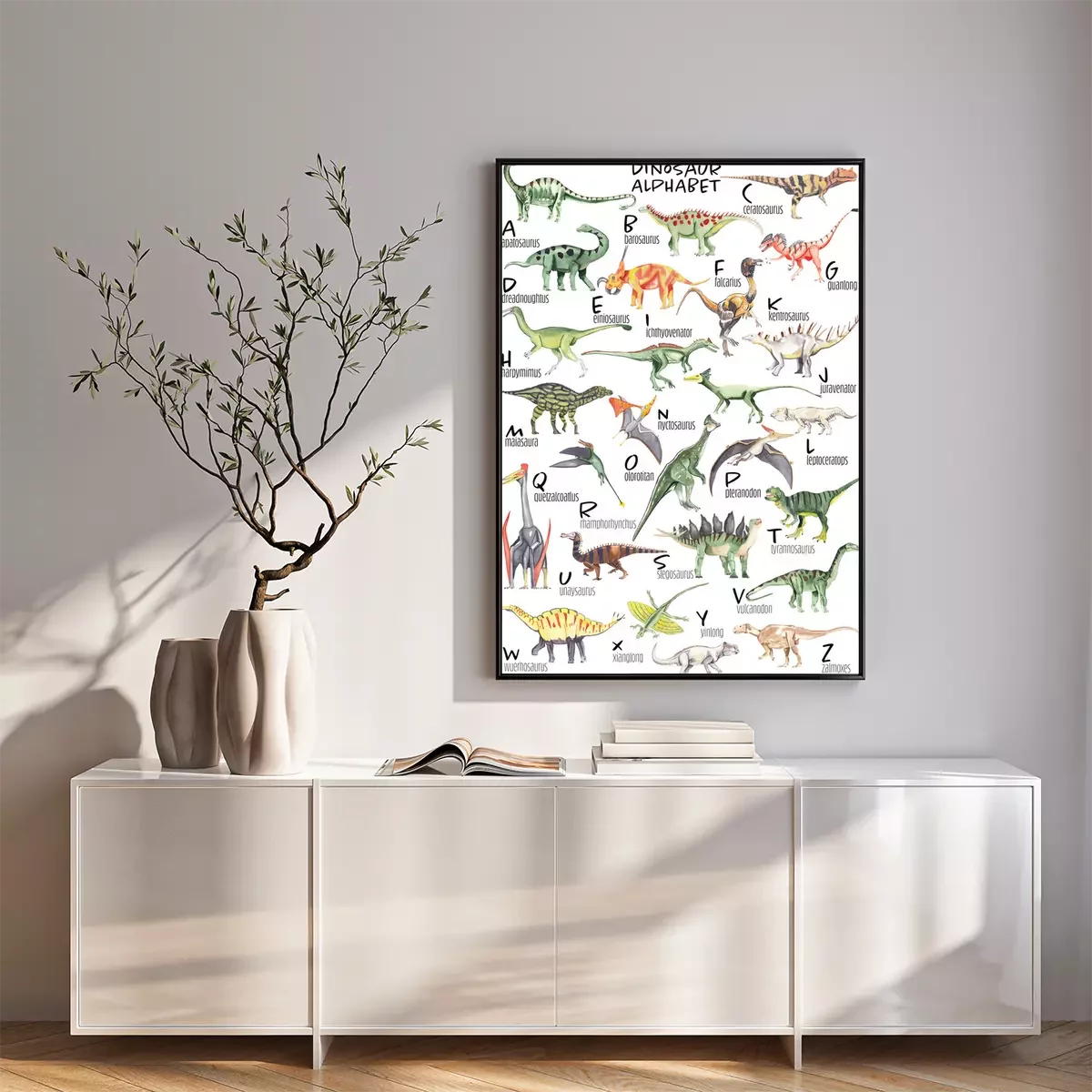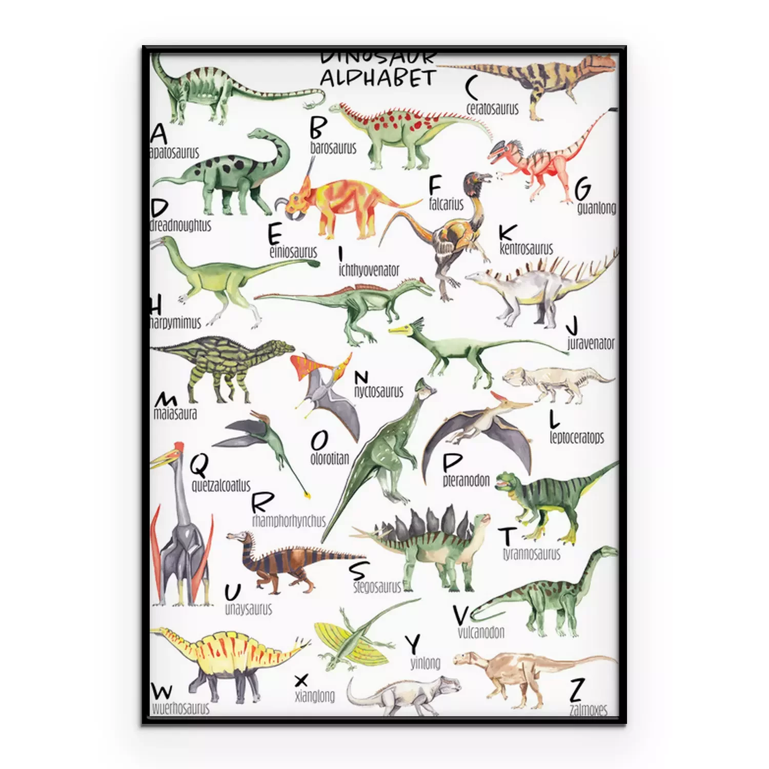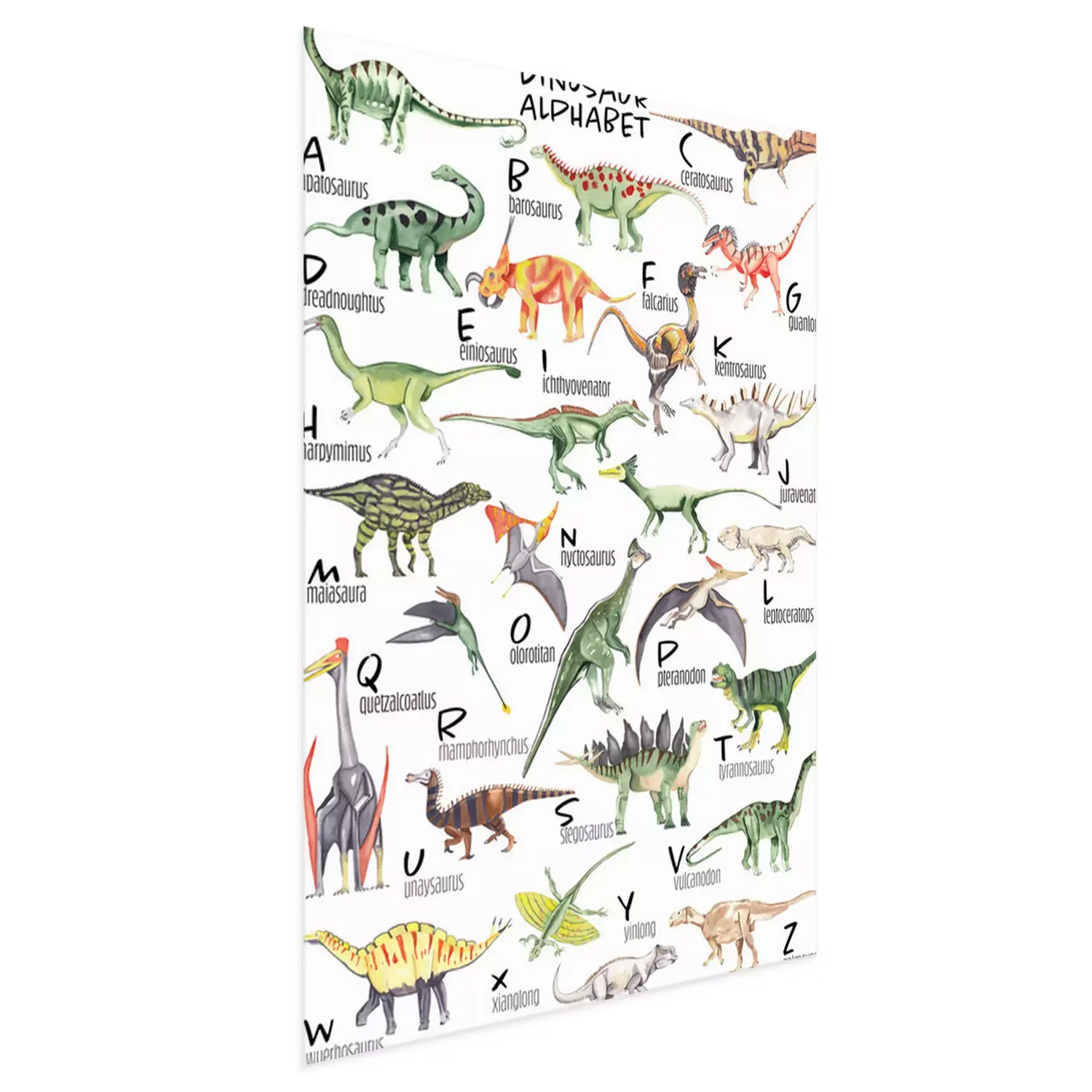 Poster: Dinosaurier Alphabet mit Aquarellfarben gemalt