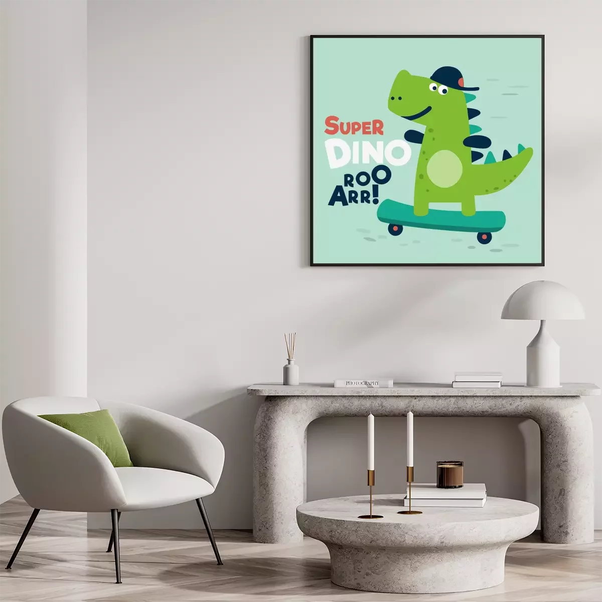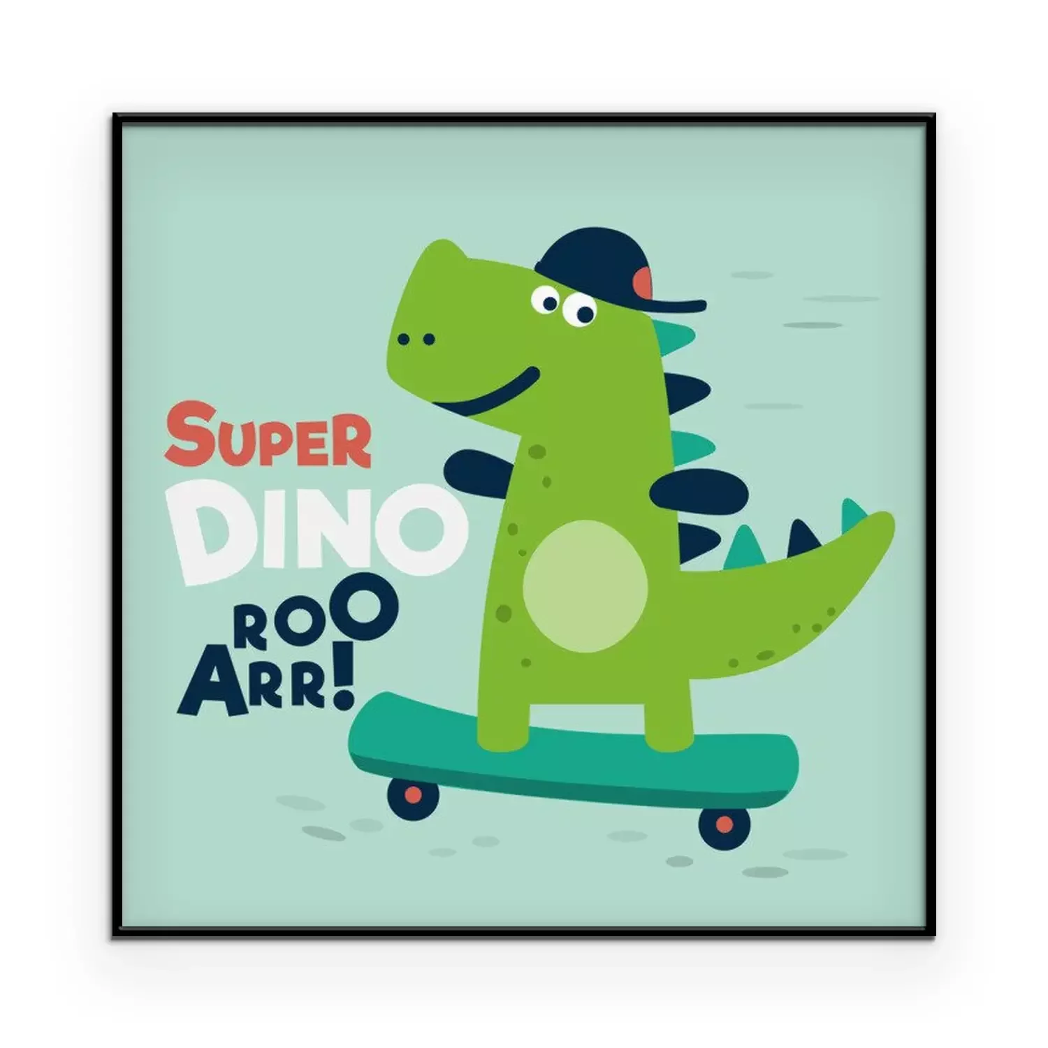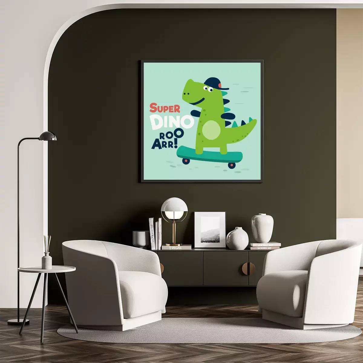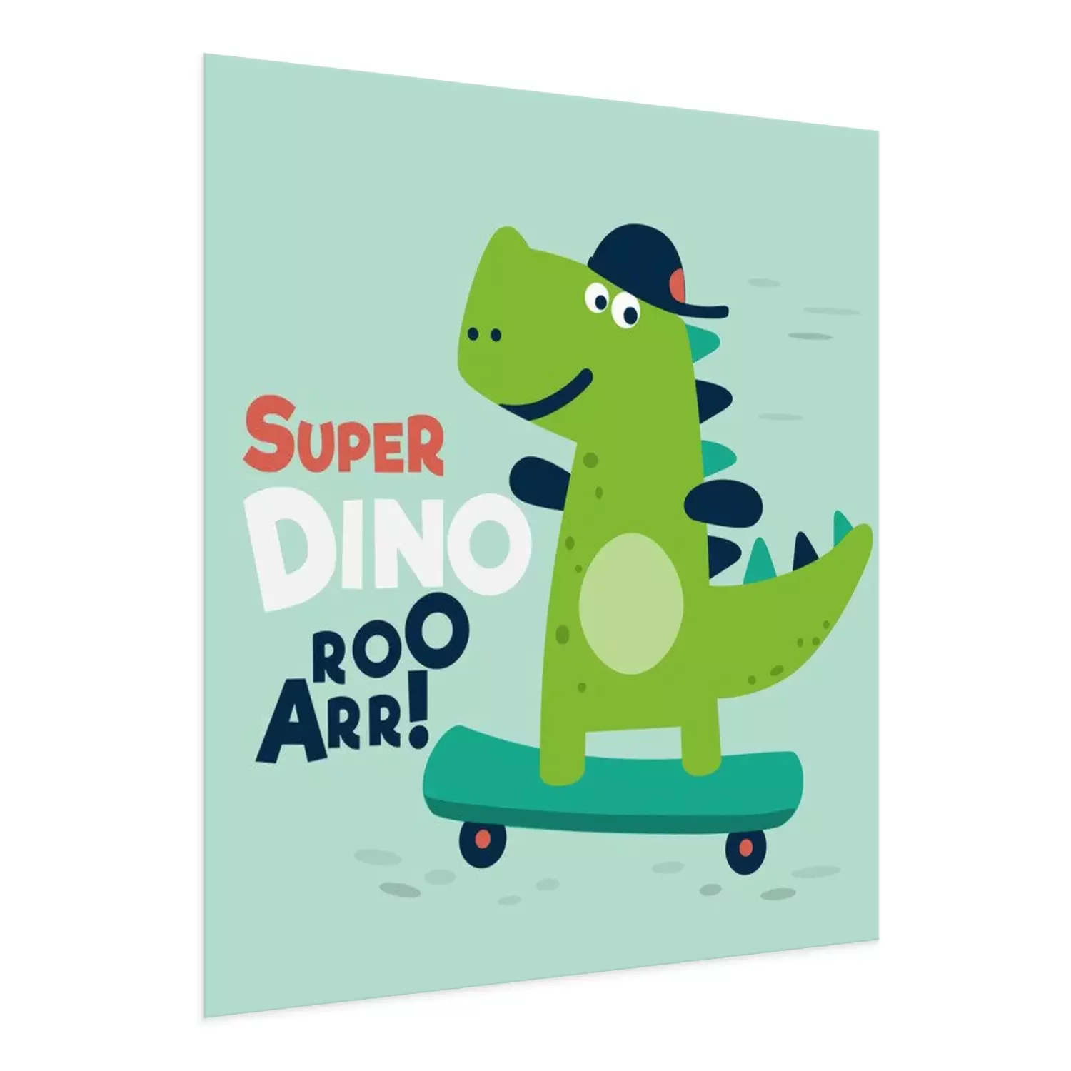 Poster: Dinosaurier mit einer Baseballmütze auf einem Skateboard