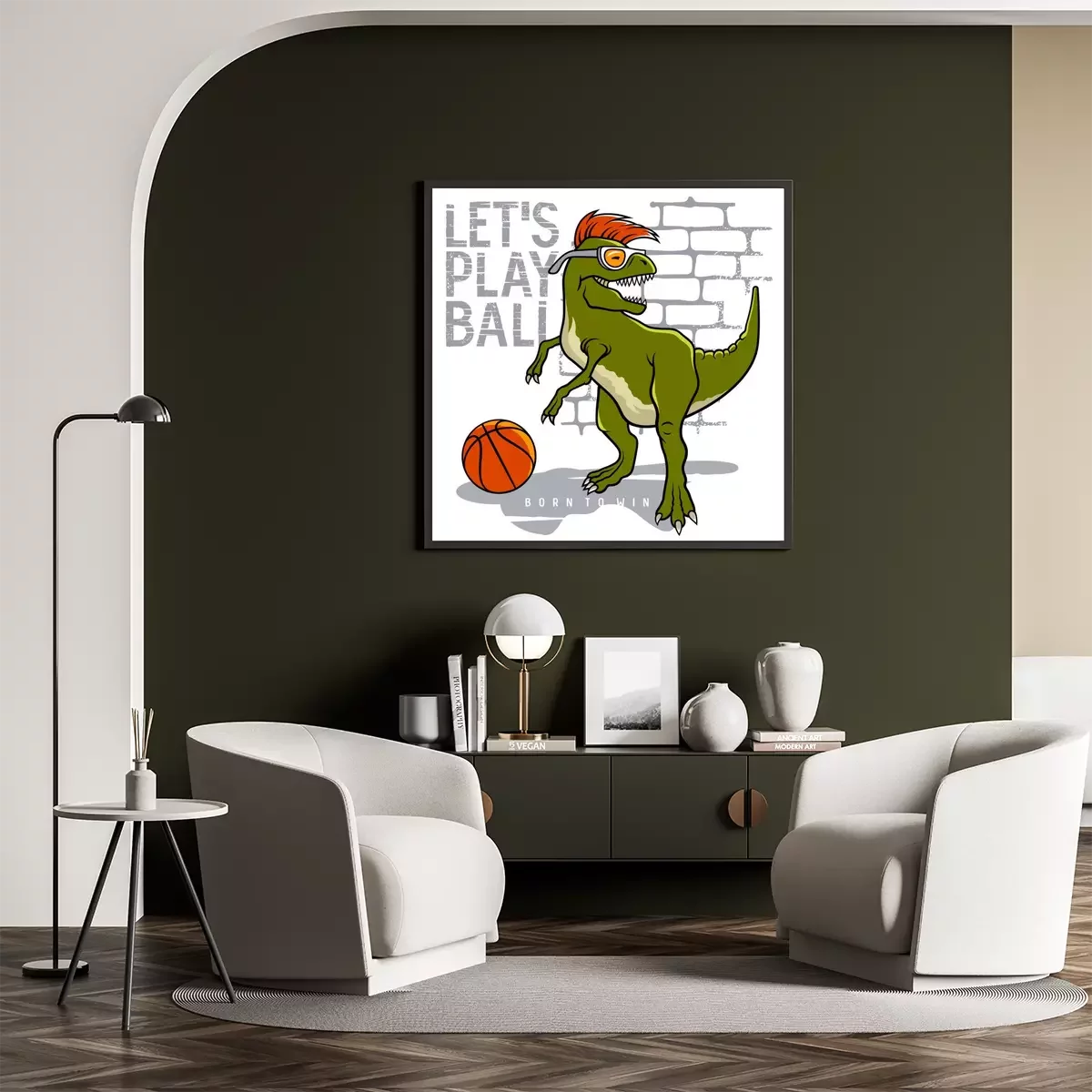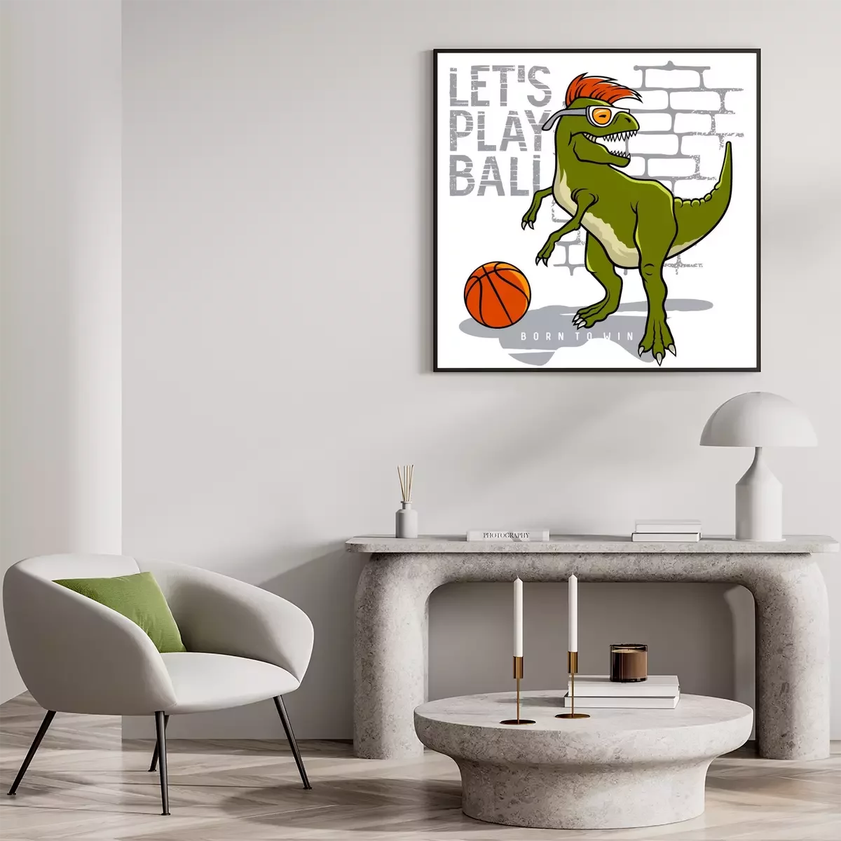 Poster: Dinosaurier mit orangefarbenen Irokesen