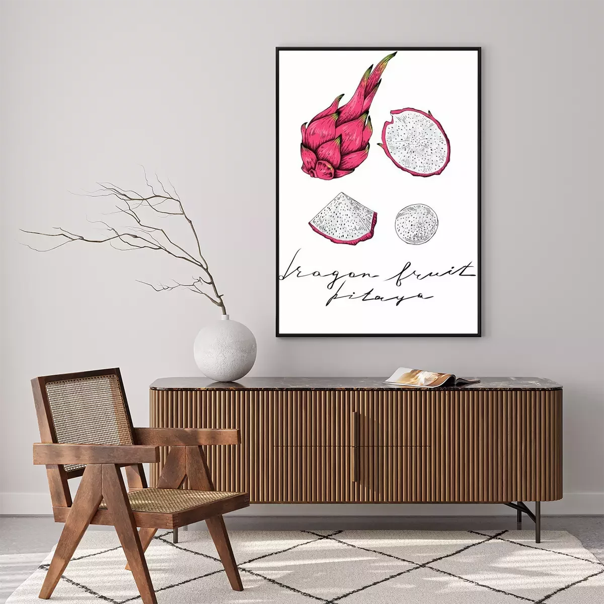 Poster: Drainoinfrucht, Hand gezeichnet, voll und Scheiben, Vektor