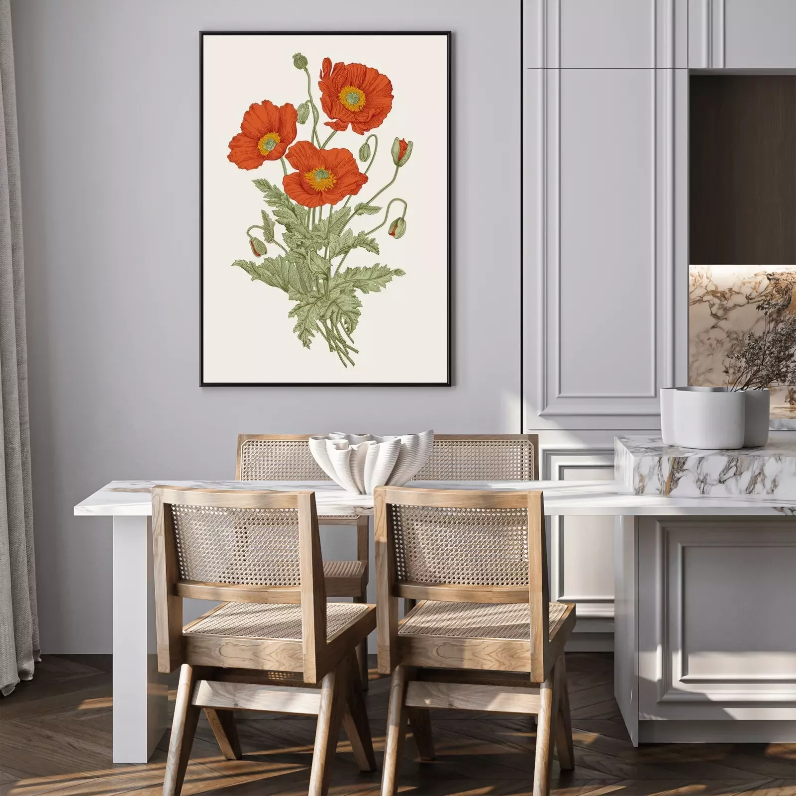 Poster Drei Mohnblumen auf einer botanischen Zeichnung