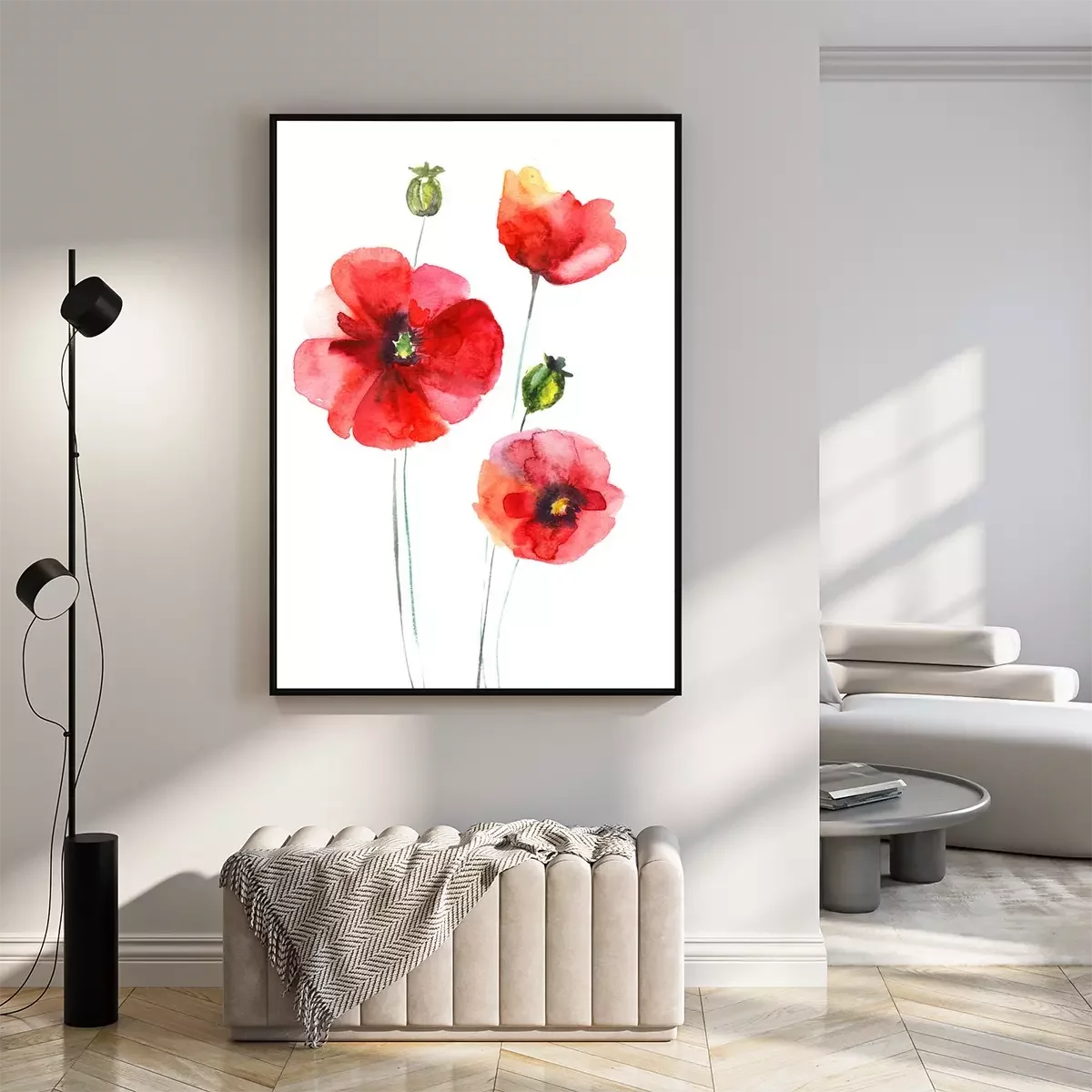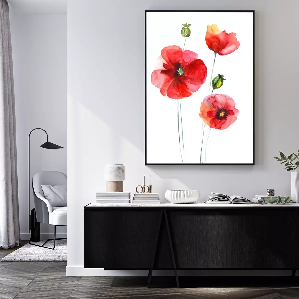 Poster Drei Mohnblumen mit Rotschattierungen