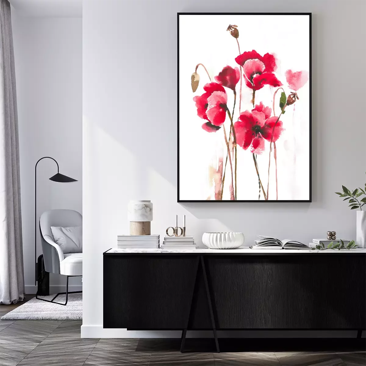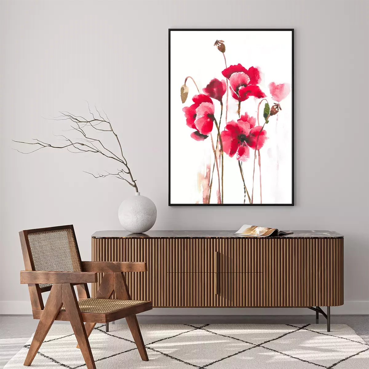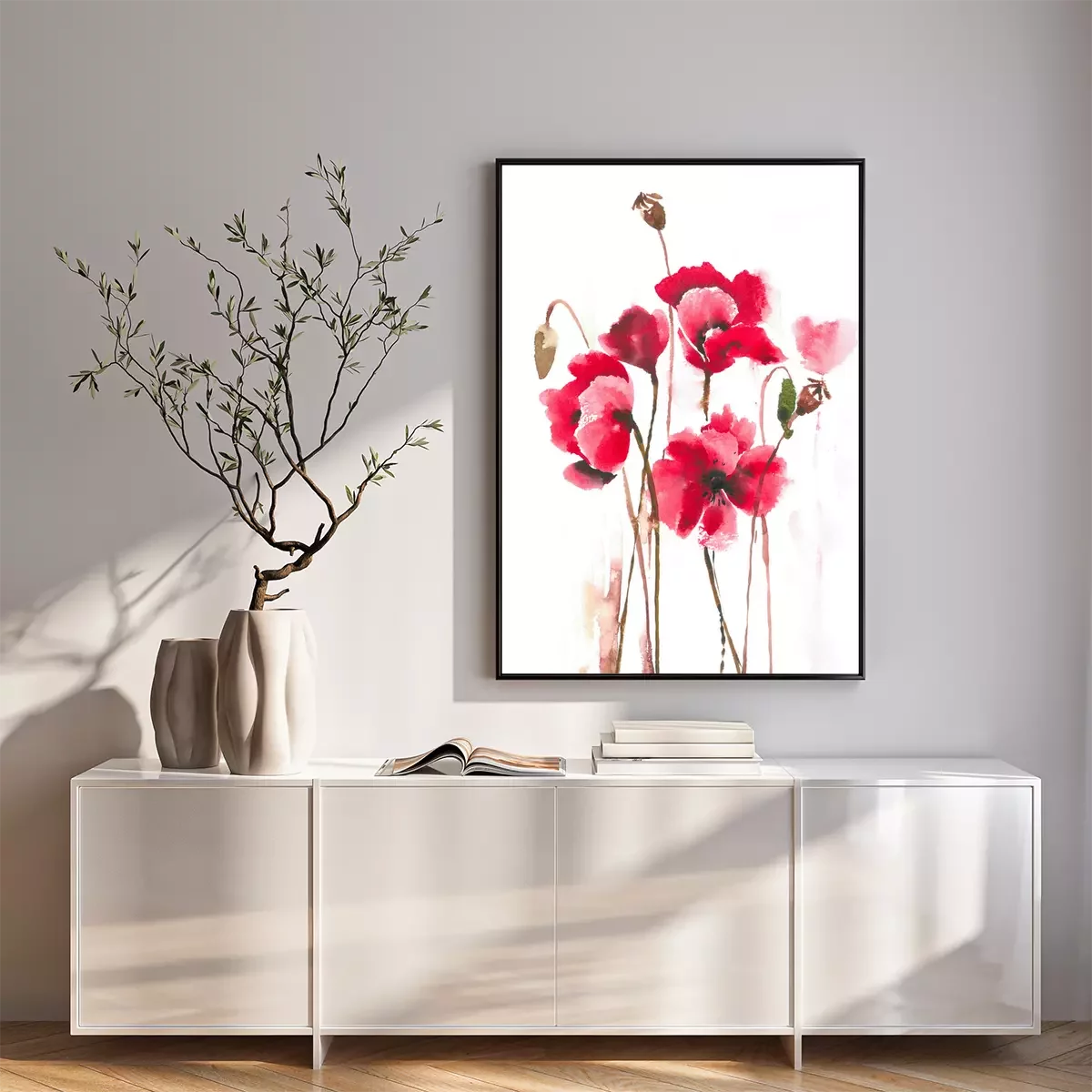 Poster: Drei Mohnblumen mit sichtbaren Kernen