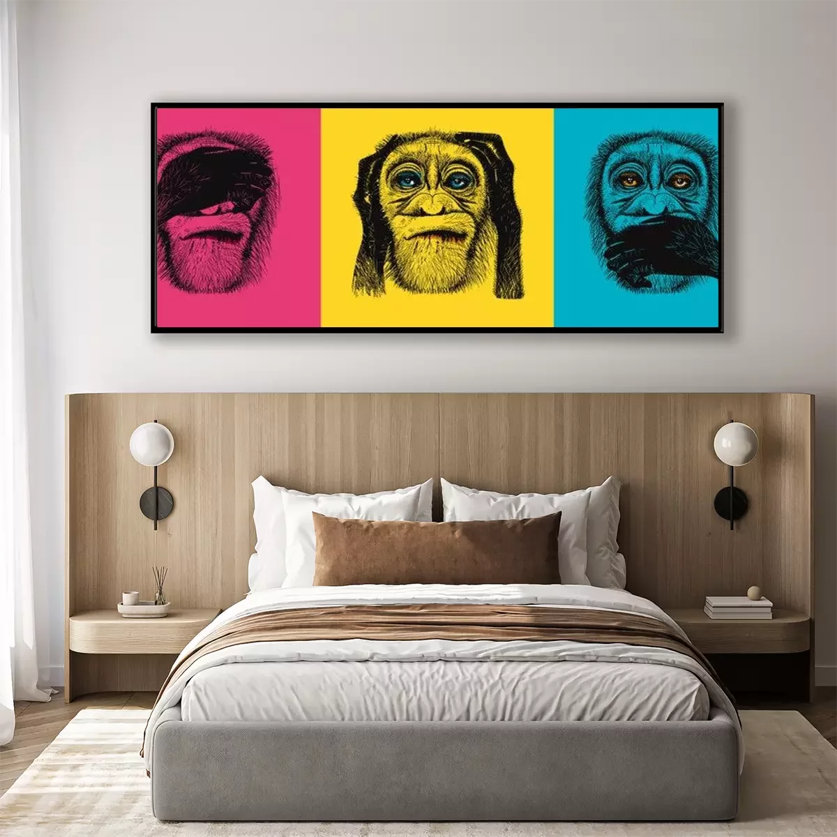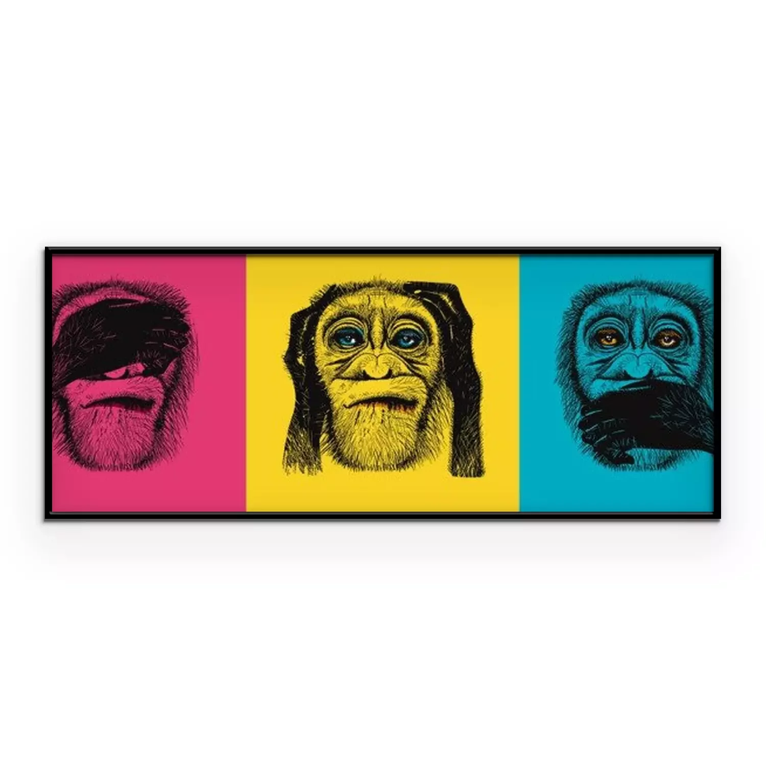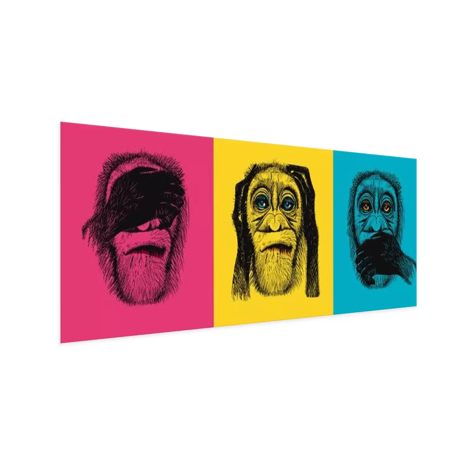 Poster: Drei weise Affen auf buntem Hintergrund im Pop-Art-Stil