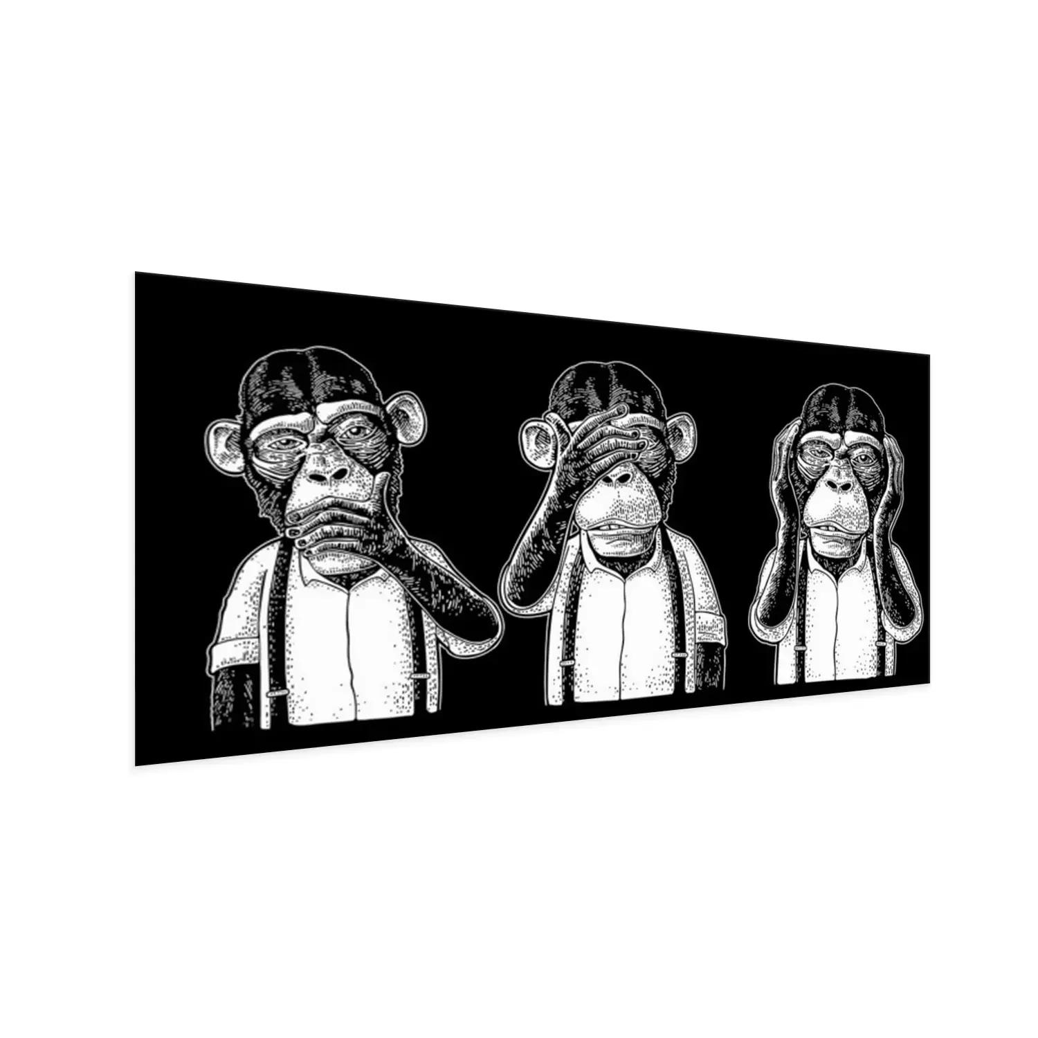 Poster: Drei weise Affen auf schwarzem Hintergrund