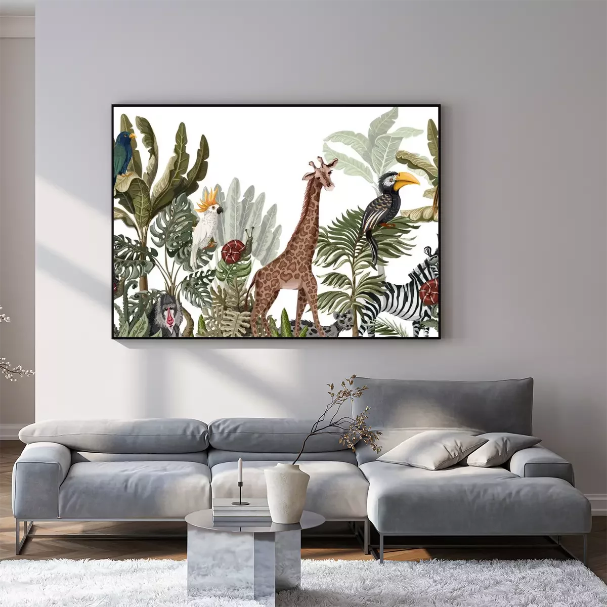 Tropische Tiere und Pflanzen auf gestreiftem Hintergrund