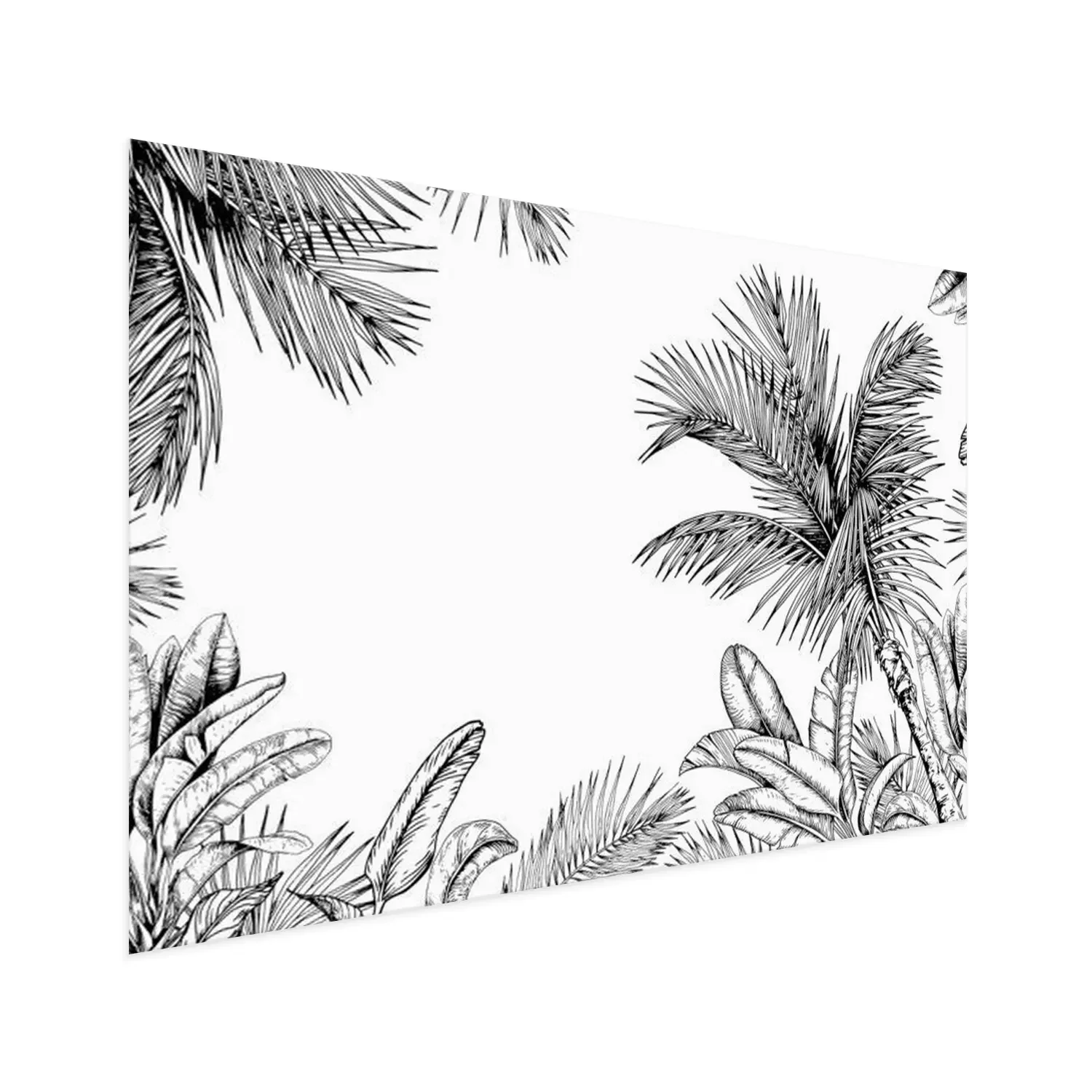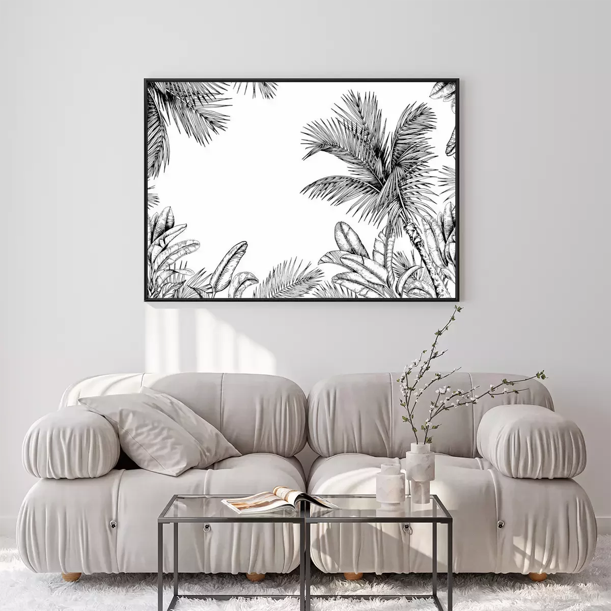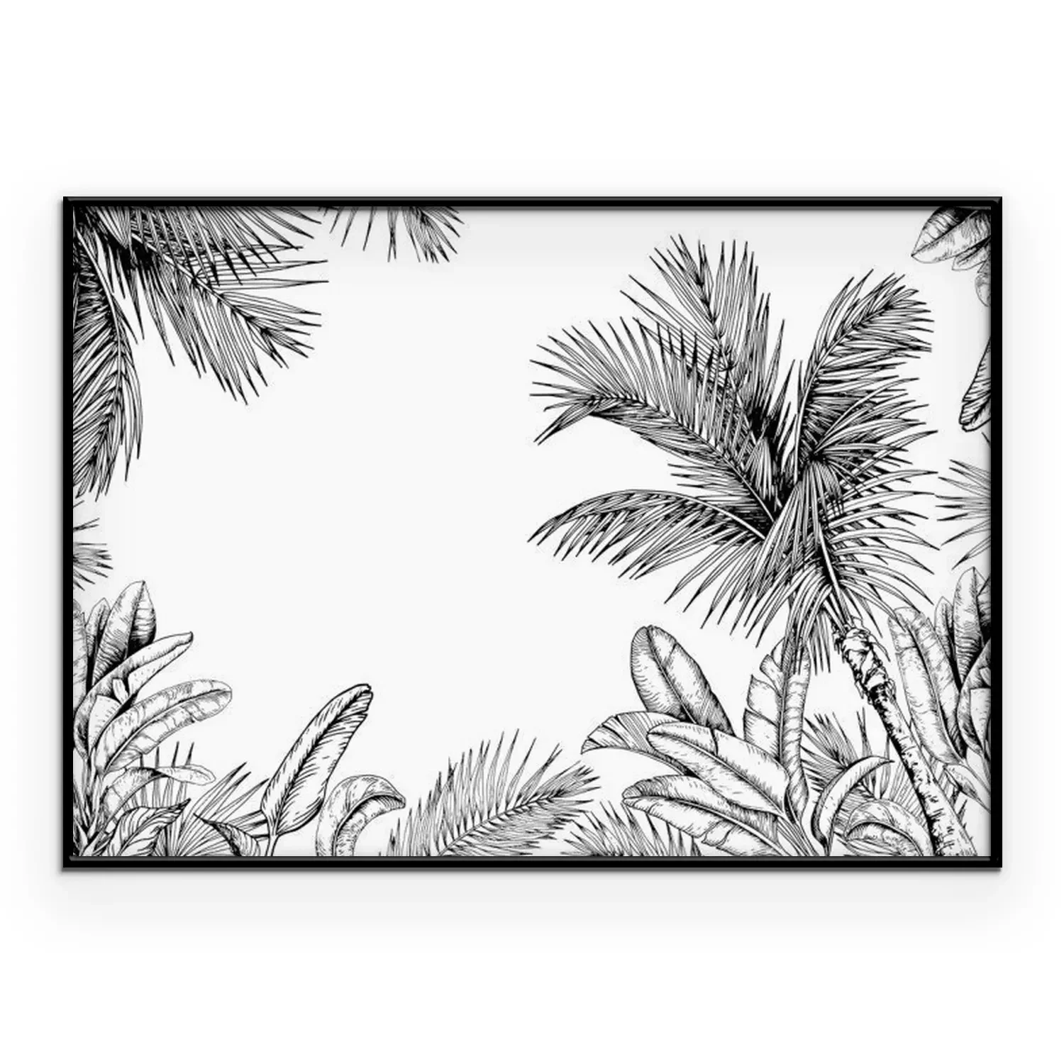 Schwarz-weißer Rahmen mit Blättern von tropischen Pflanzen