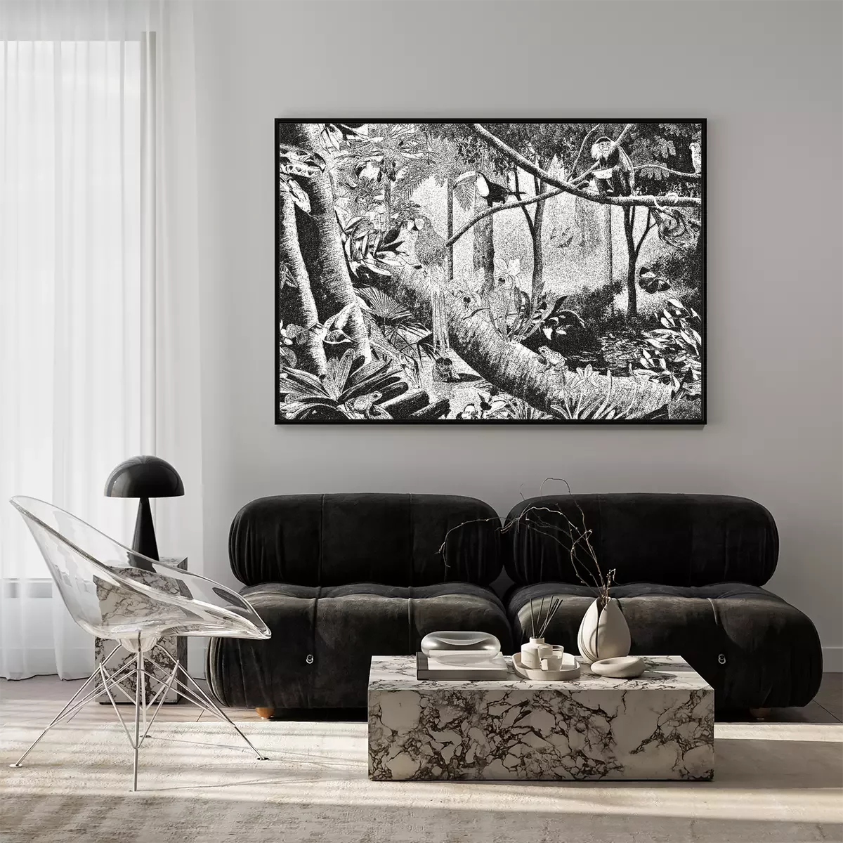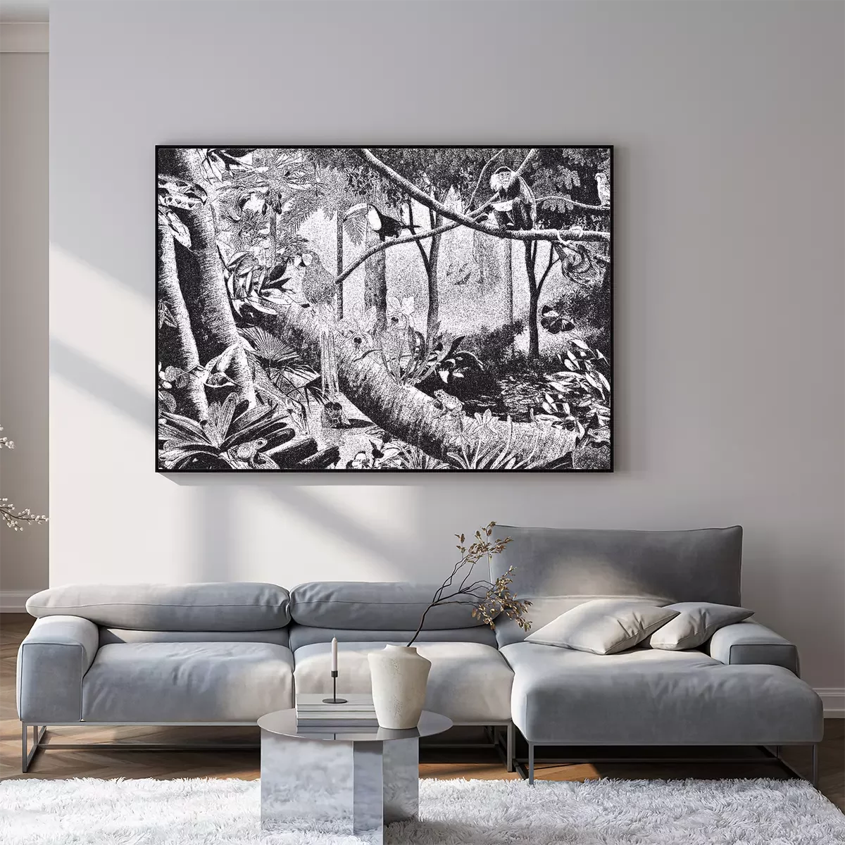 Poster: Dschungel schwarz-weiß Illustration
