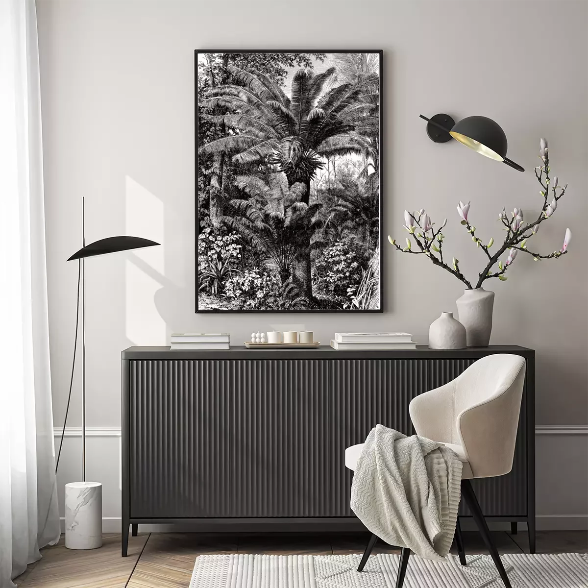 Poster: Dschungel Schwarz-Weiß-Zeichnung
