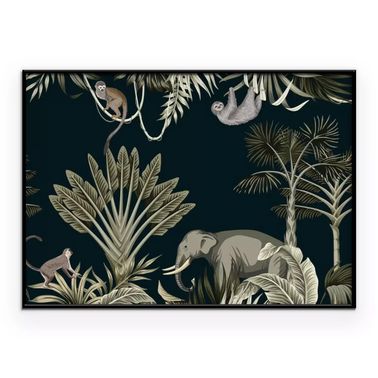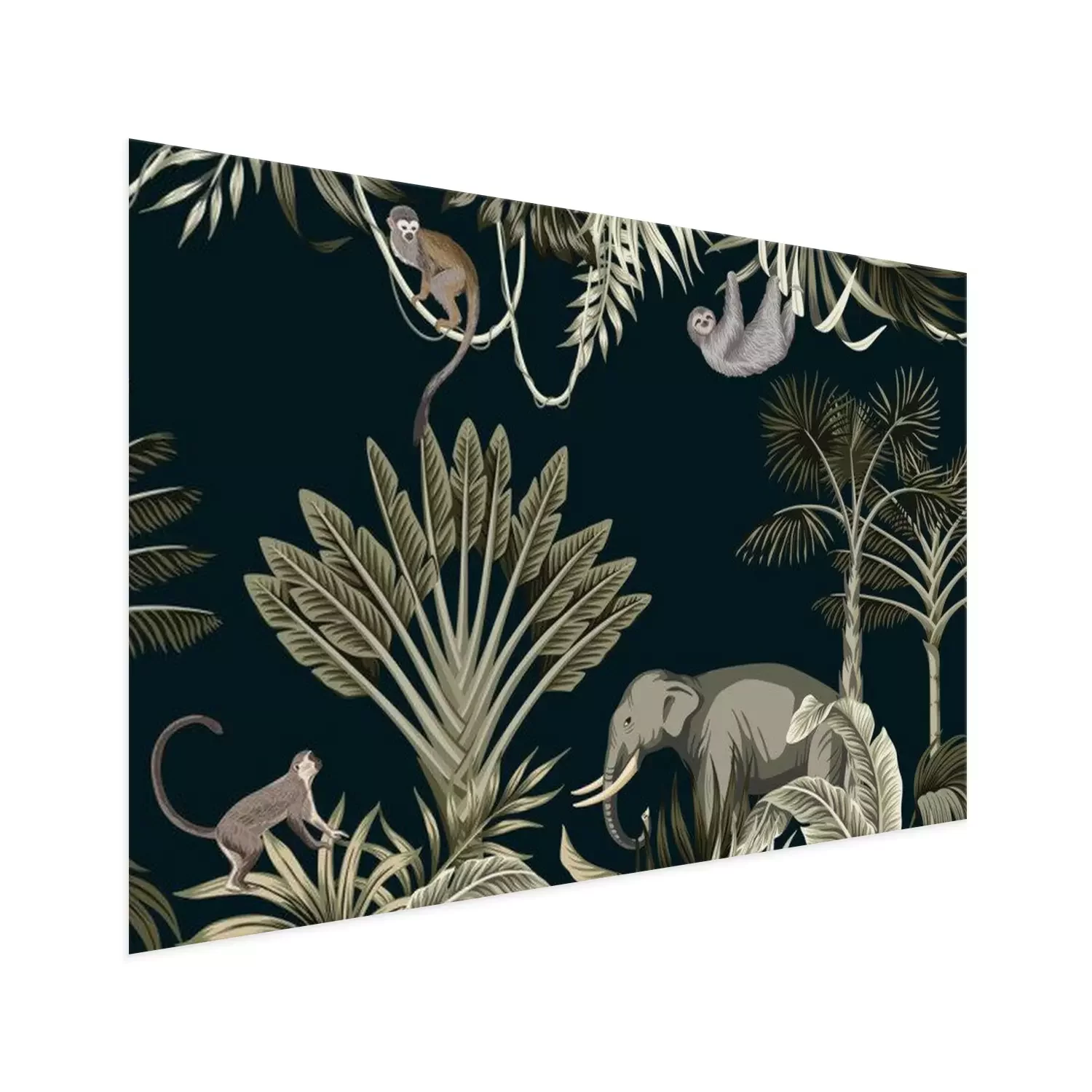 Poster: Dschungeltiere auf schwarzem Hintergrund