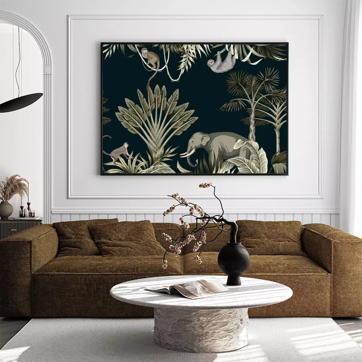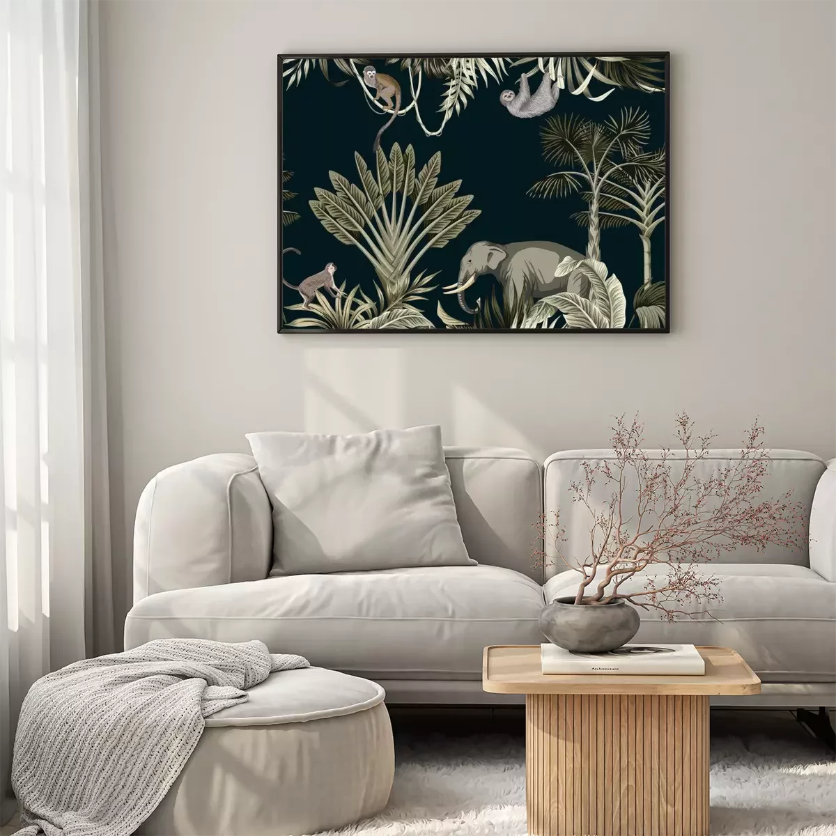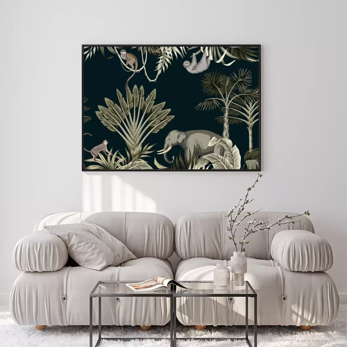 Poster Dschungeltiere auf schwarzem Hintergrund