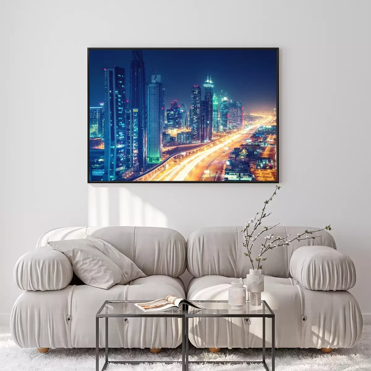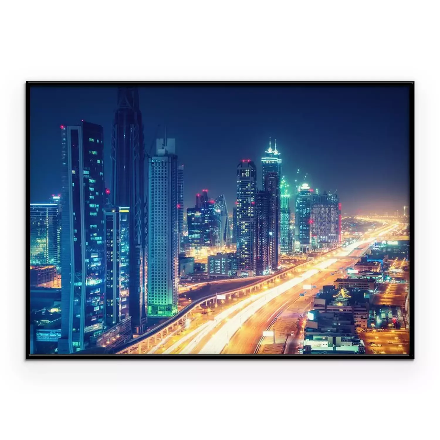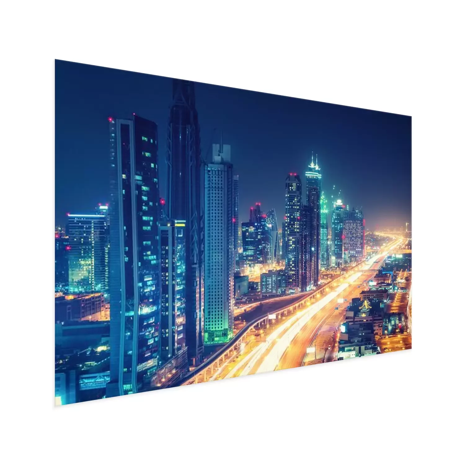 Poster Dubais beleuchtete Straße und hohe Gebäude