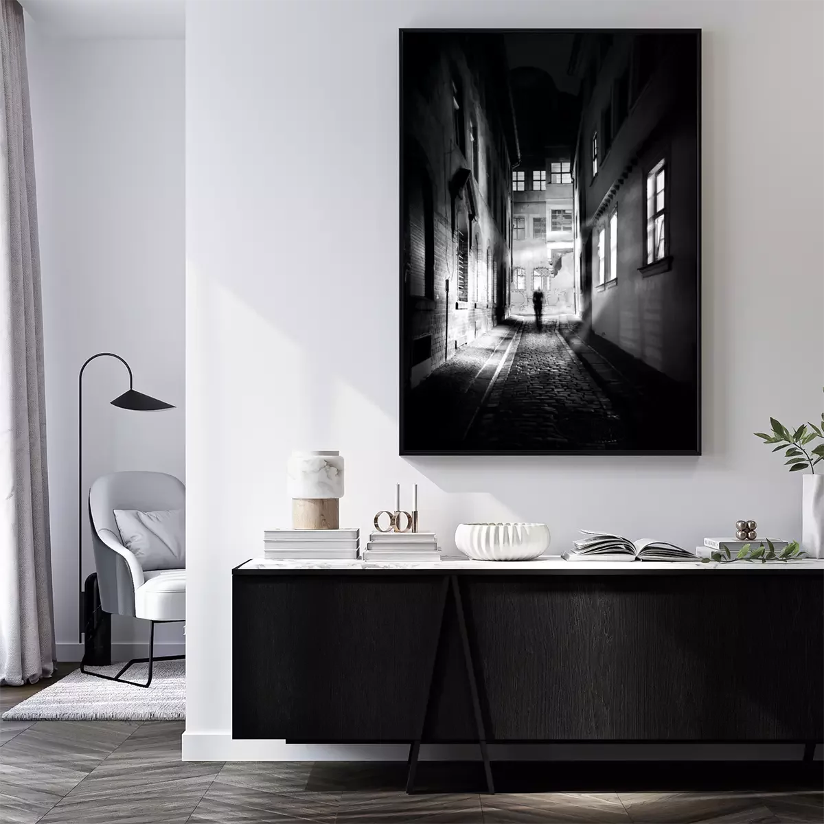Poster: Düstere Straße bei Nacht