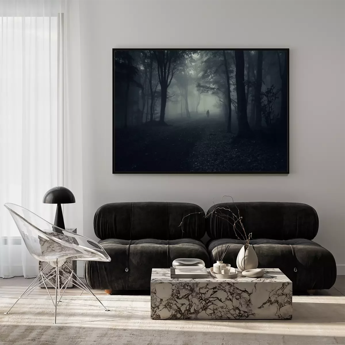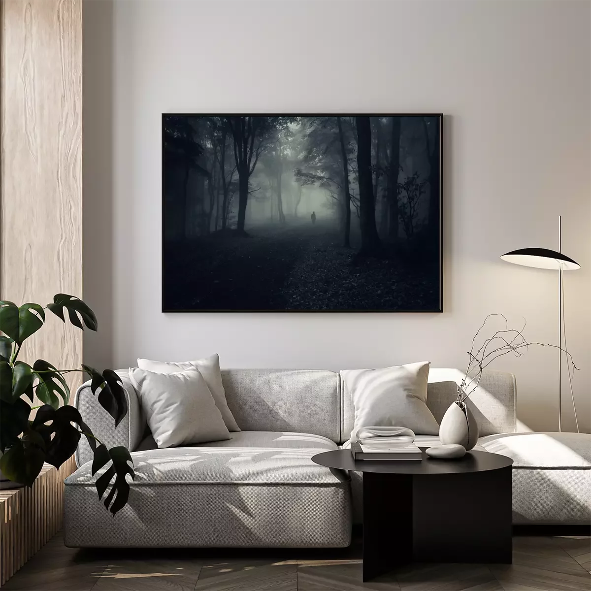 Poster: Düsterer Wald in dunklen Farben