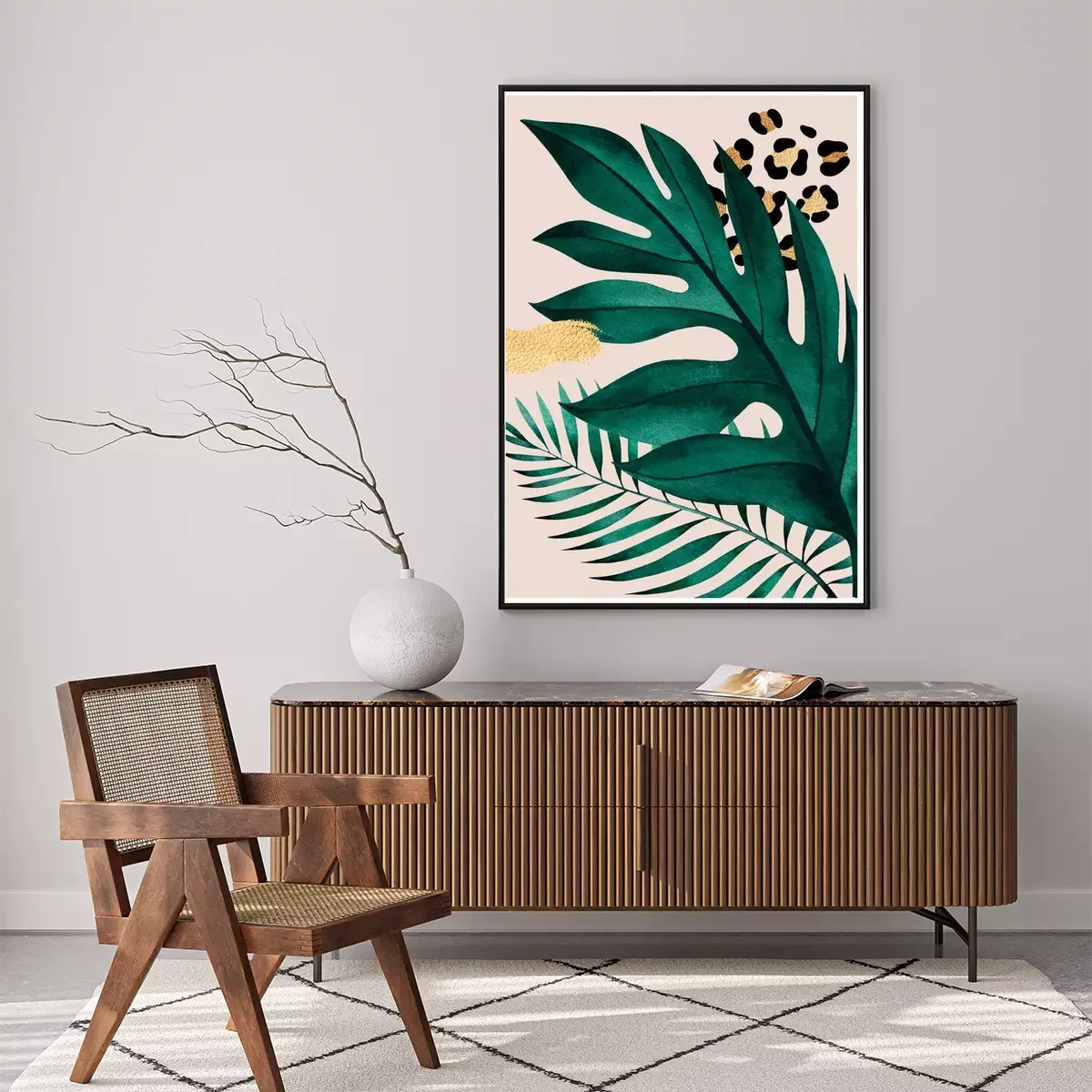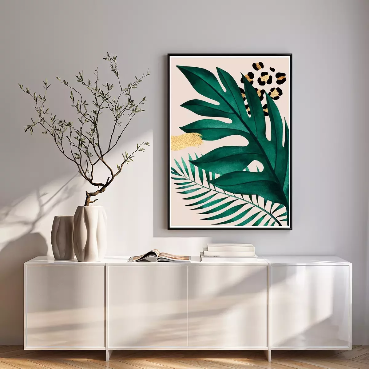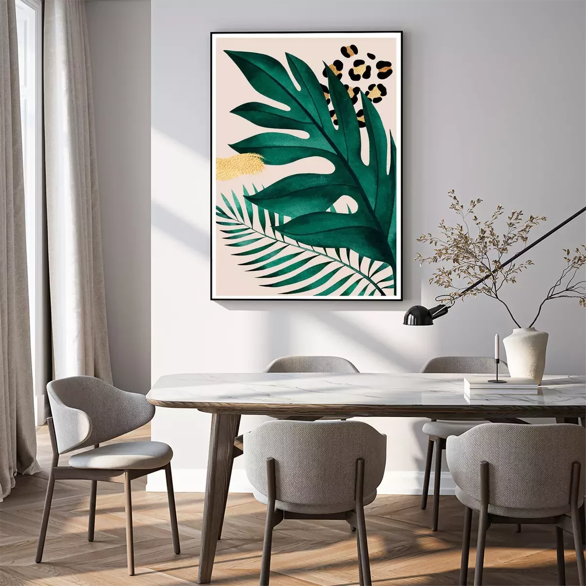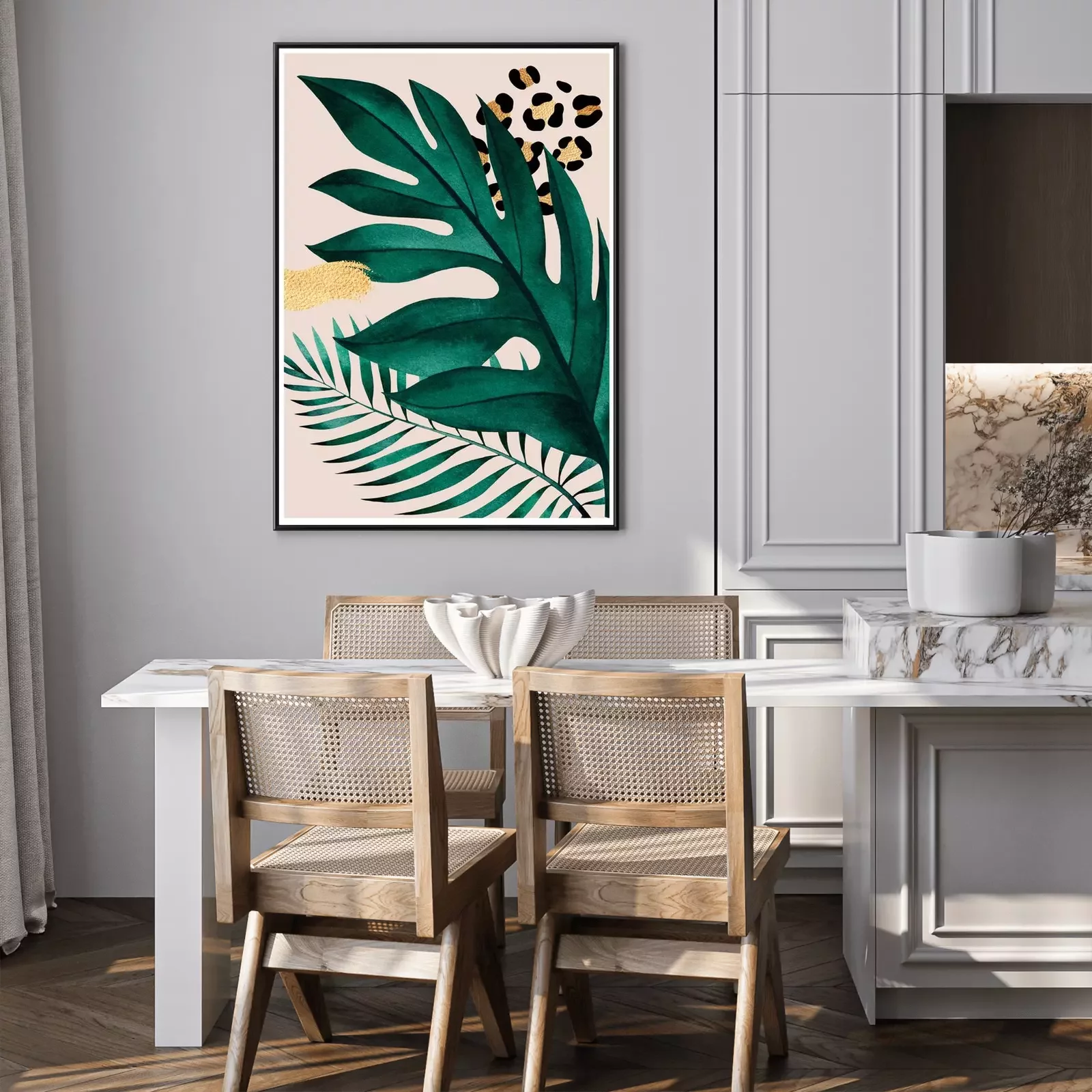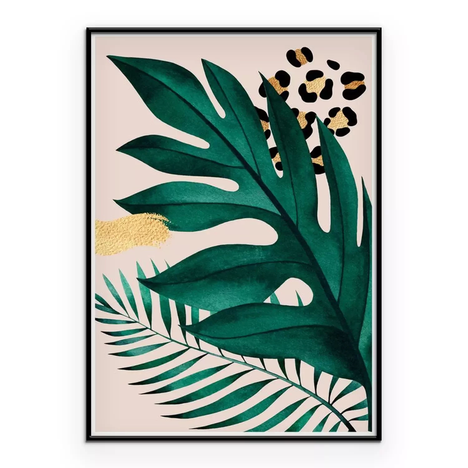 Poster: Dunkelgrüne Blätter und goldene Flecken