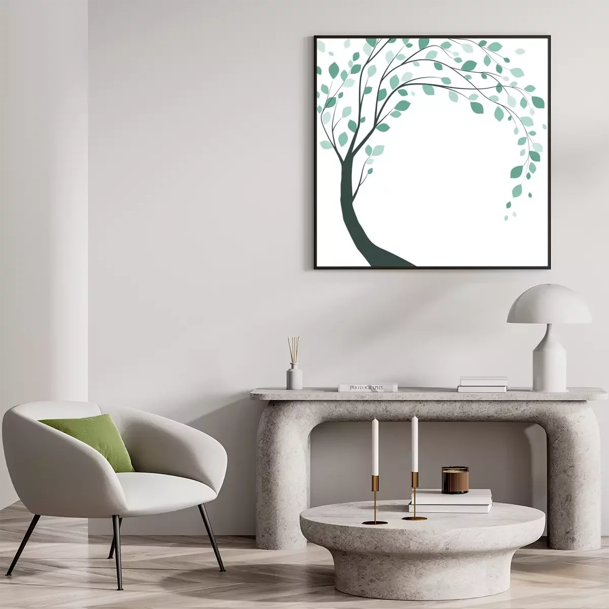 Poster: Dunkelgrüne Illustration eines gebeugten Baumes