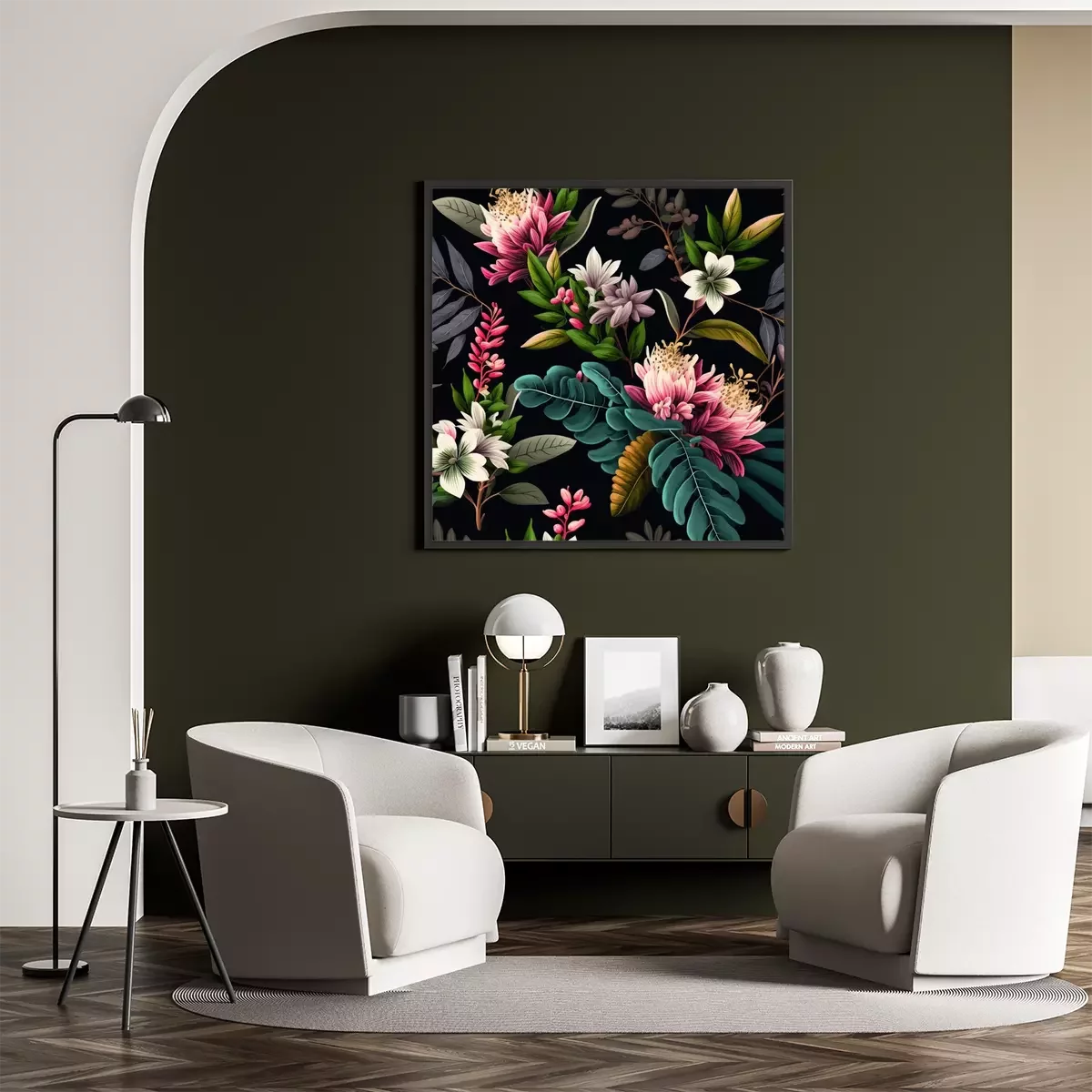 Poster: Dunkle Abbildung mit Blumen