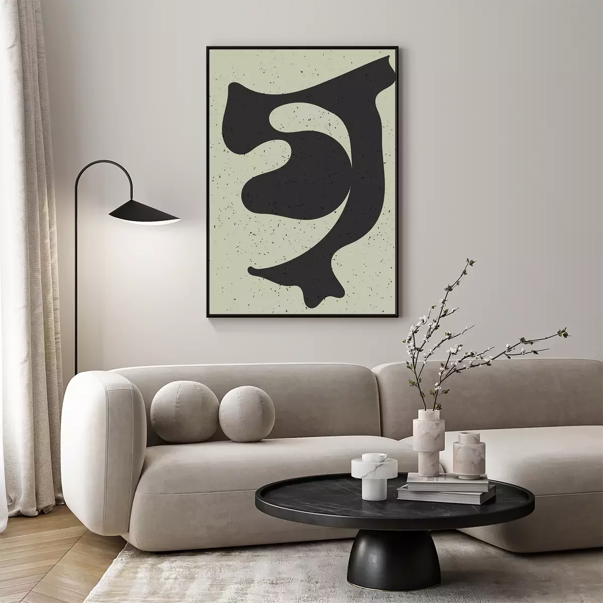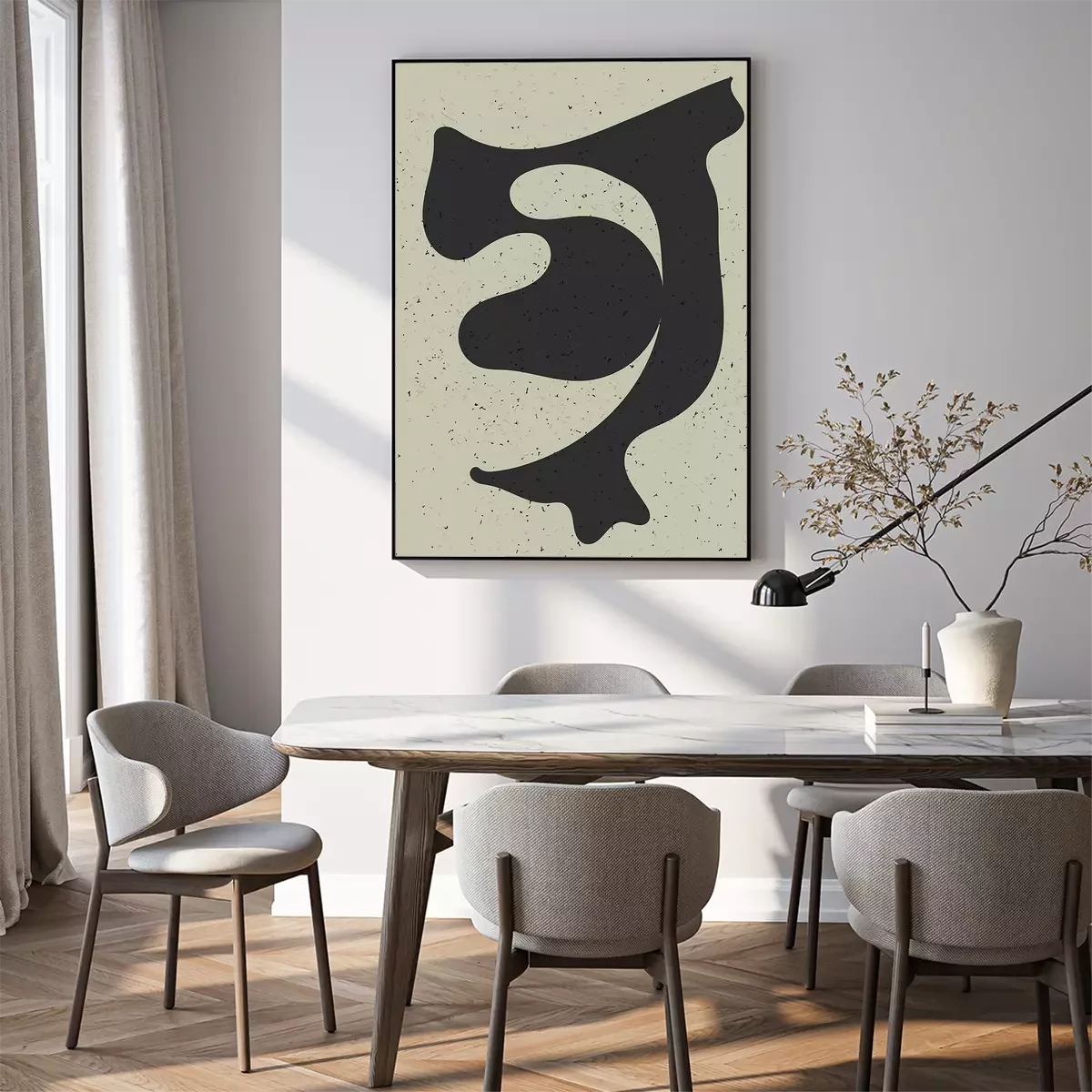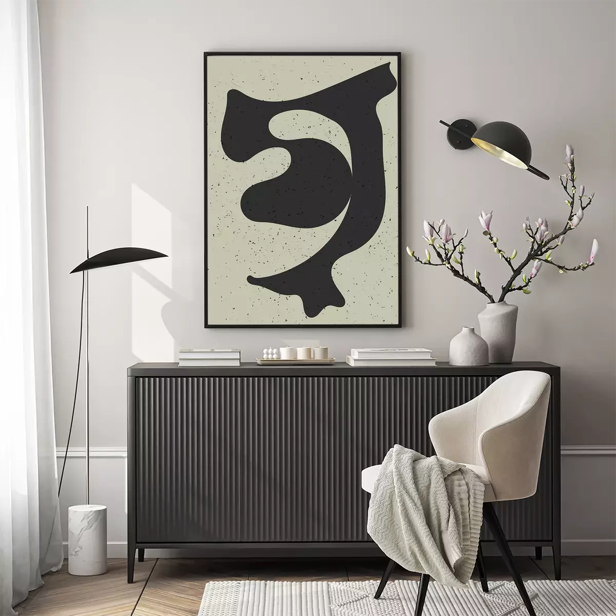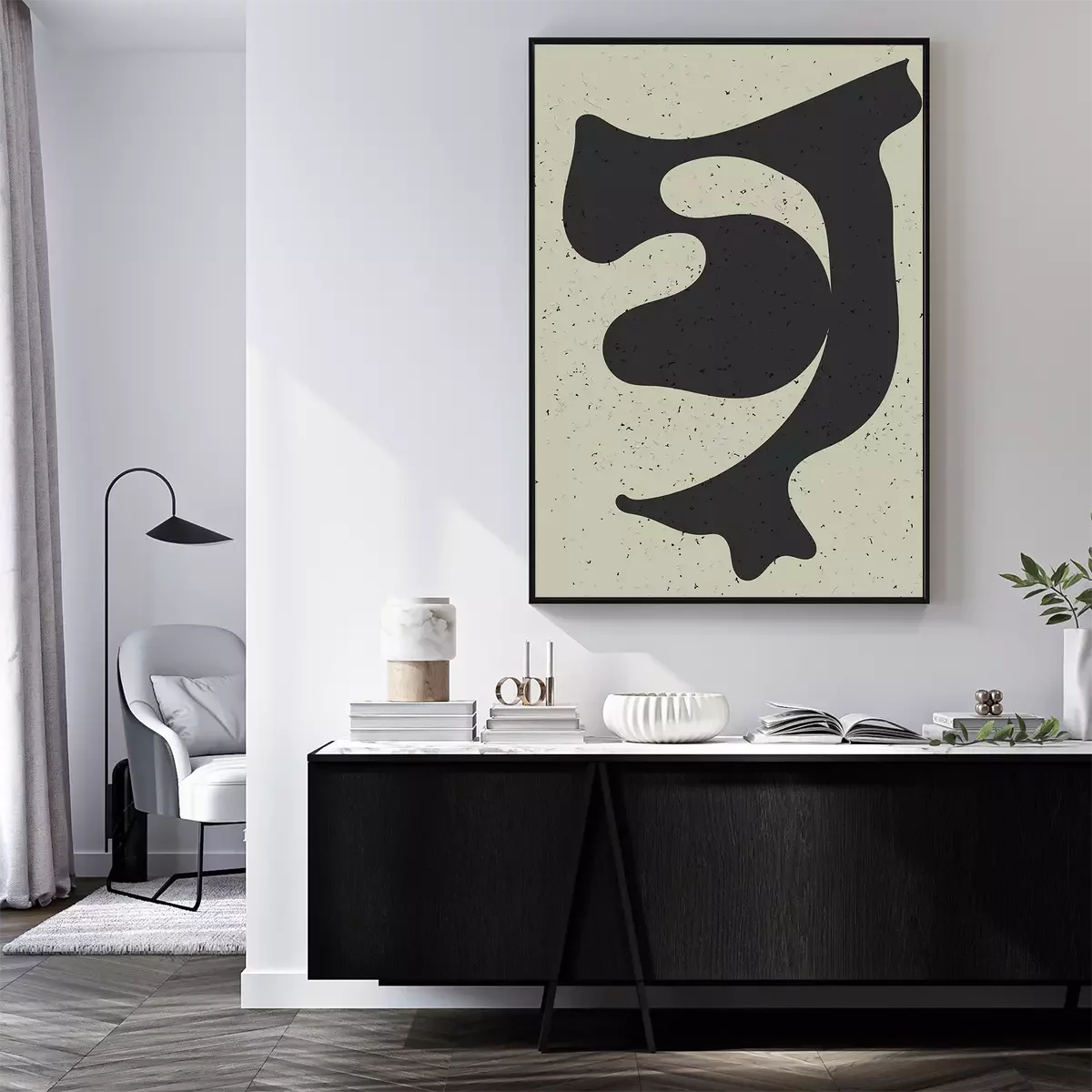 Poster: Dunkle Form auf rauem Hintergrund