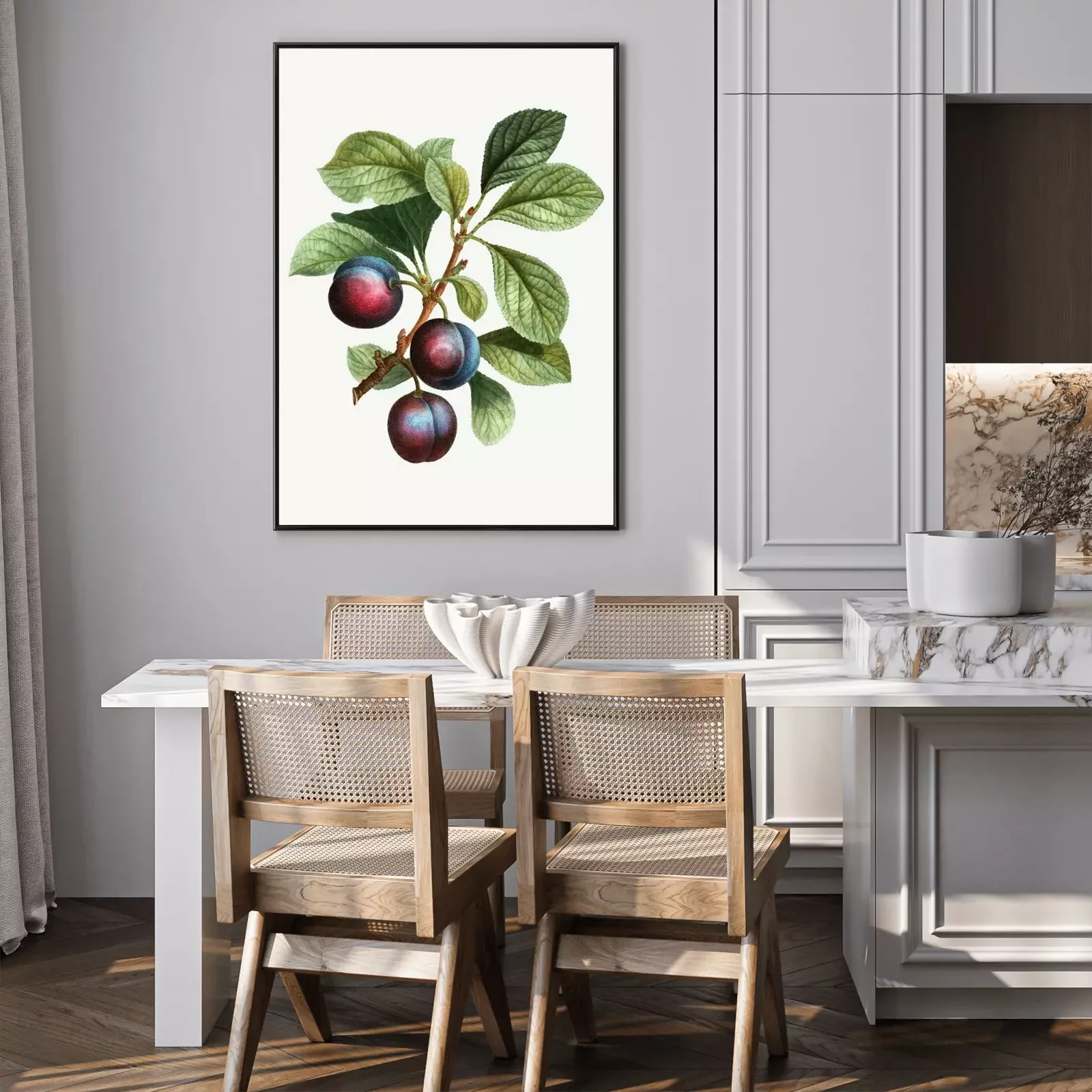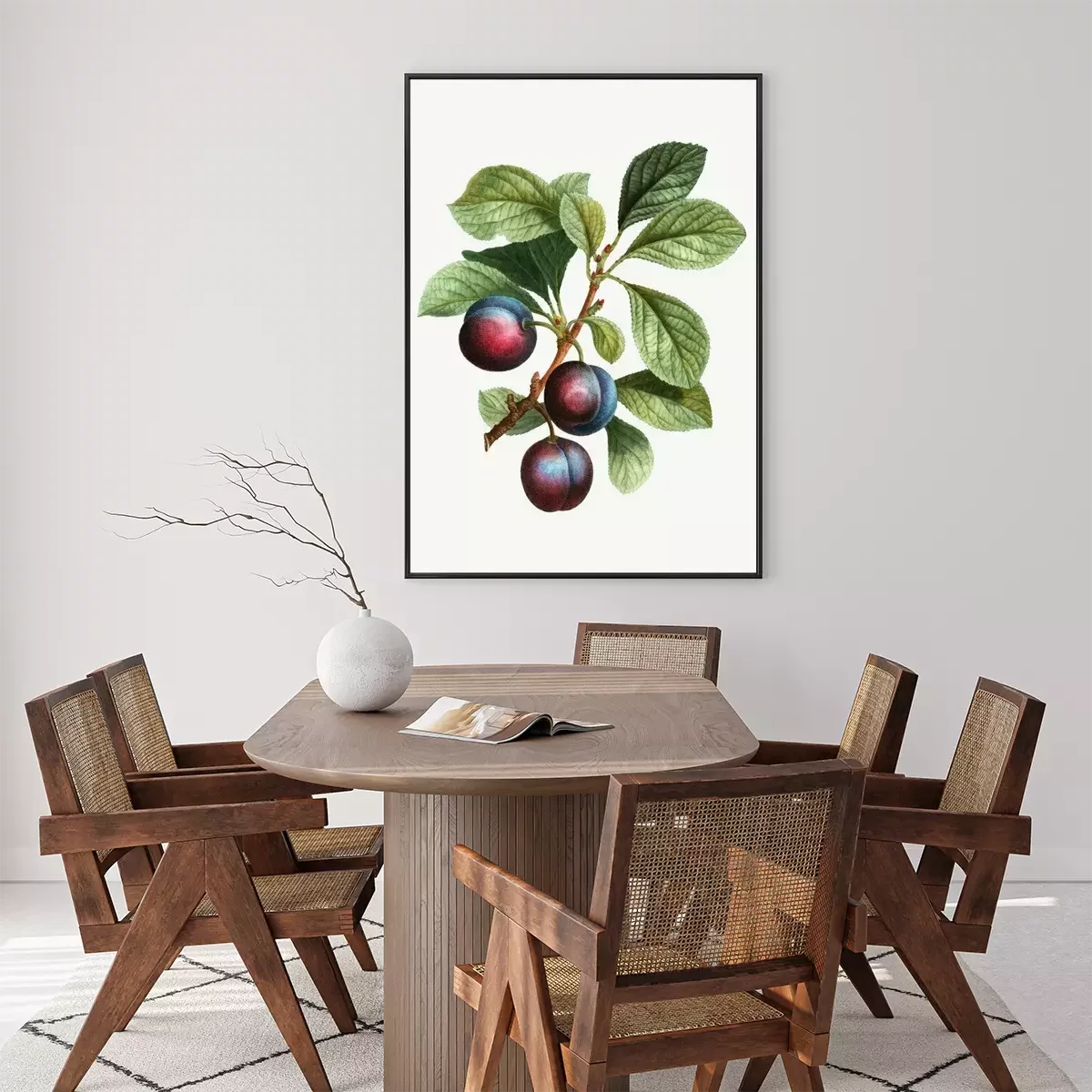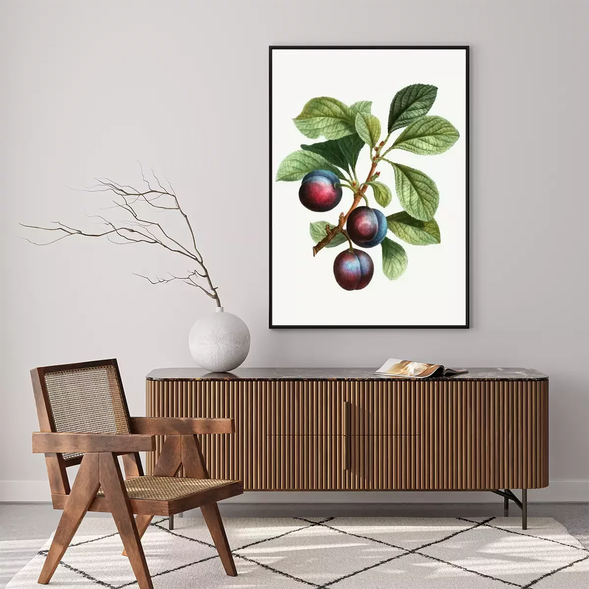 Poster: Dunkle Pflaumen auf dem Zweig bunte Zeichnung