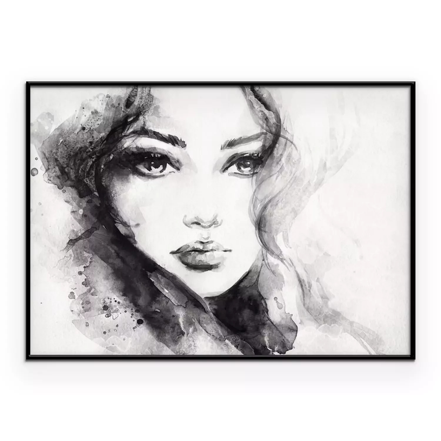 Gesicht einer Frau und schwarze Flecken aus Aquarellfarbe