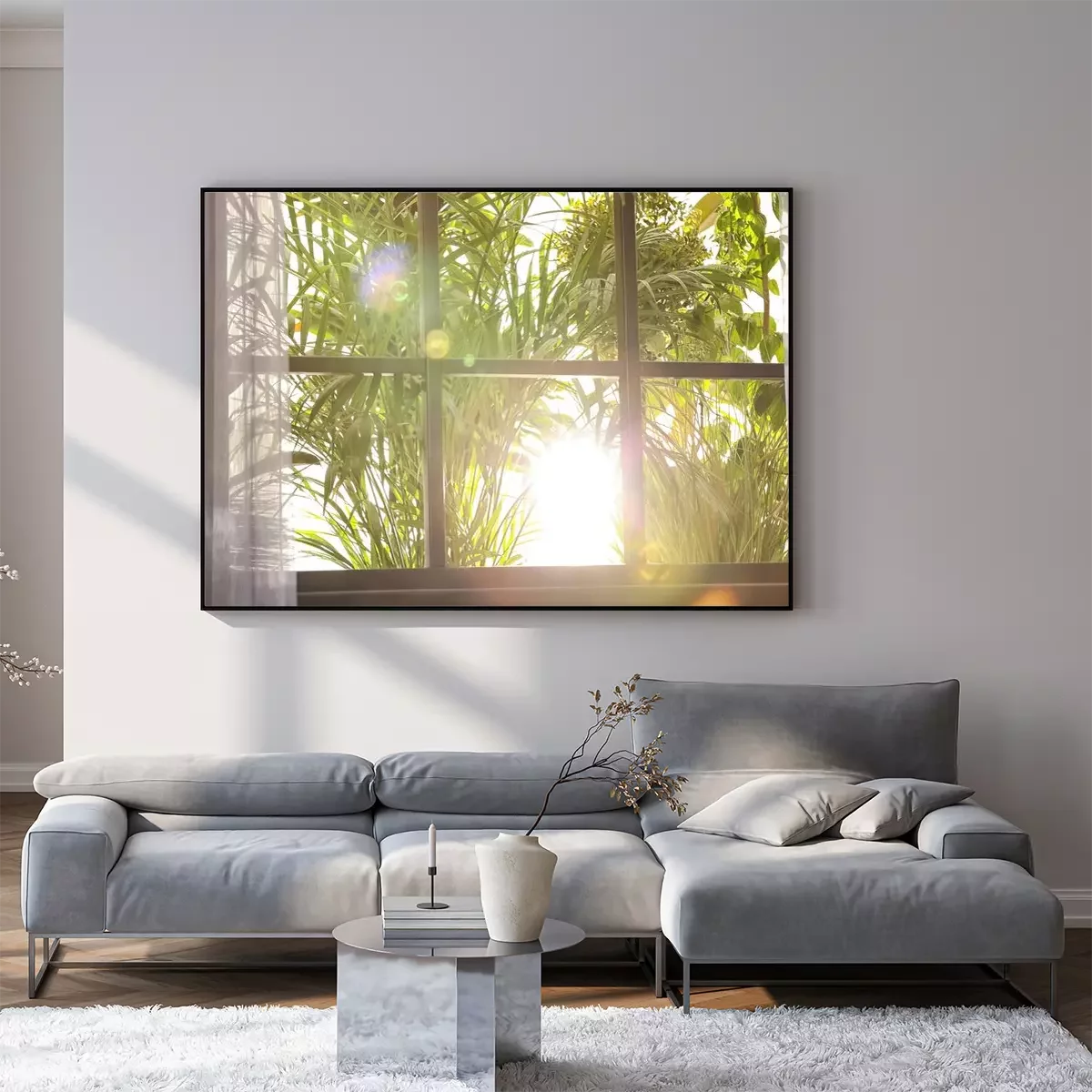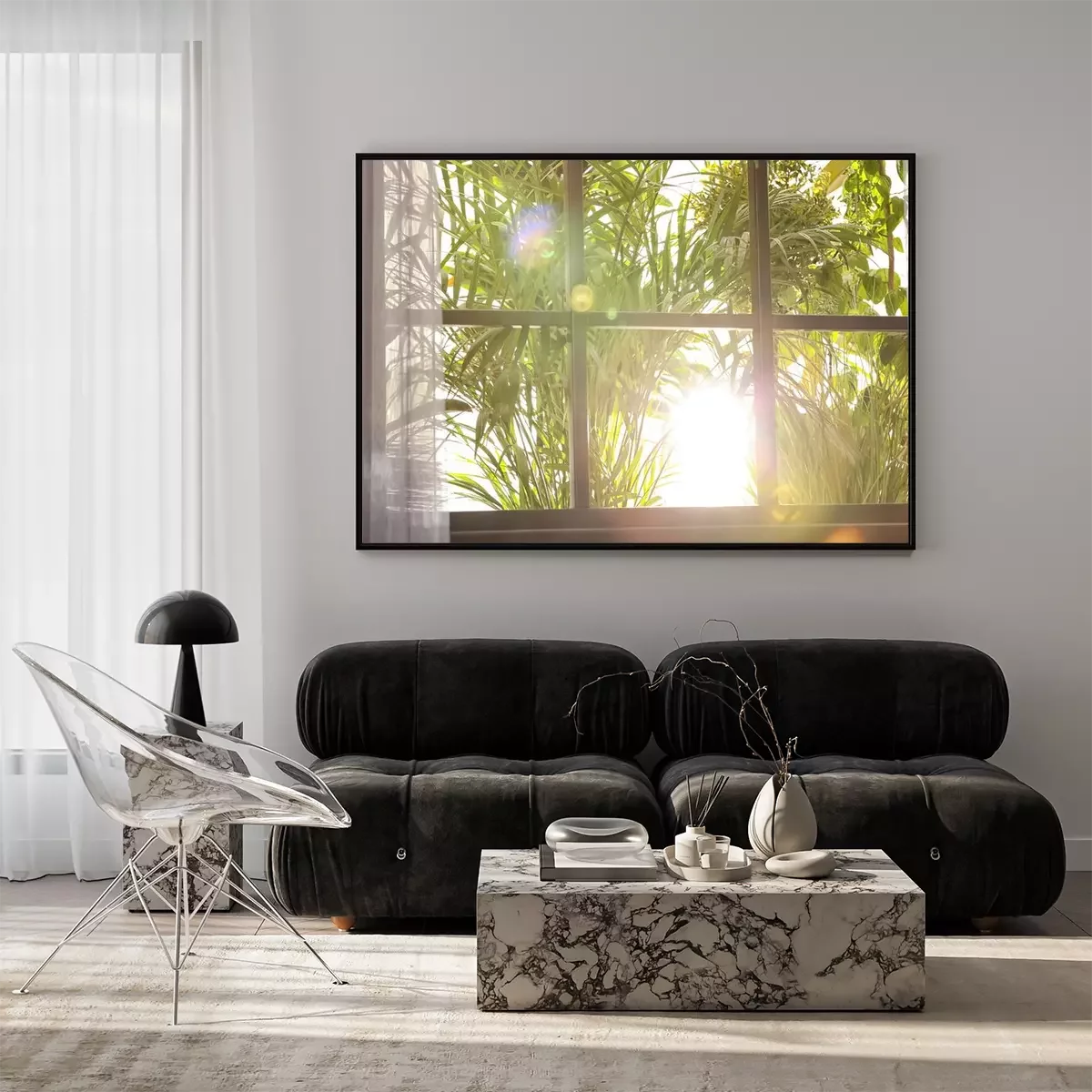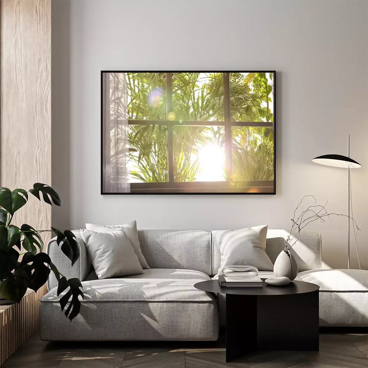 Poster: Durch das Fenster sichtbare Topfpflanzen