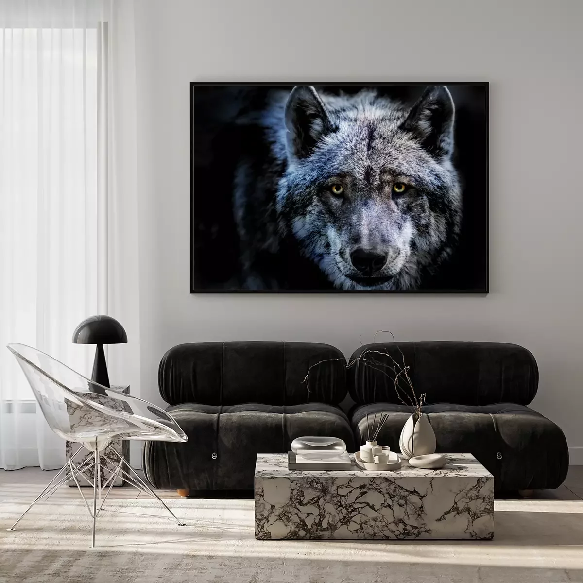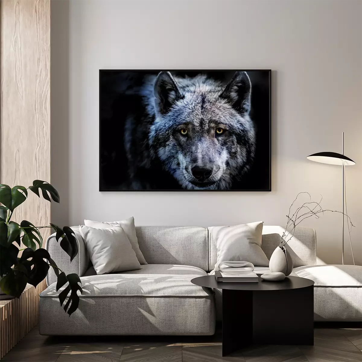 Poster: Durchdringender Blick des Wolfes