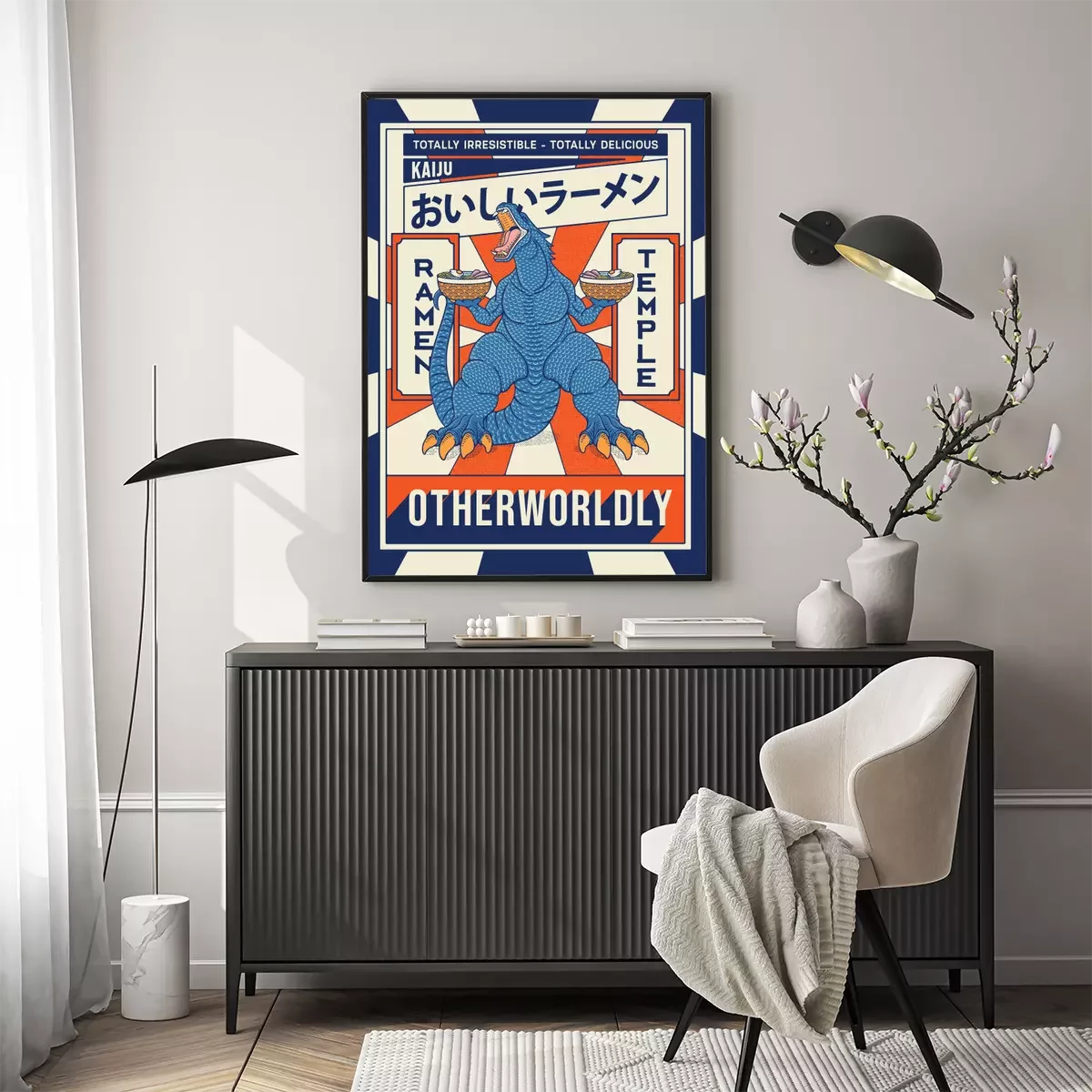Poster: Ein blauer Ramen-liebender Dinosaurier