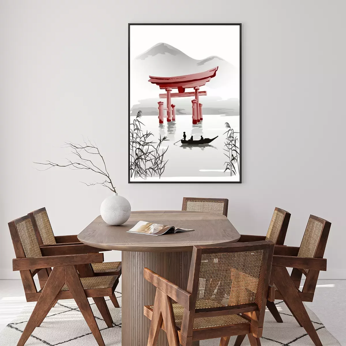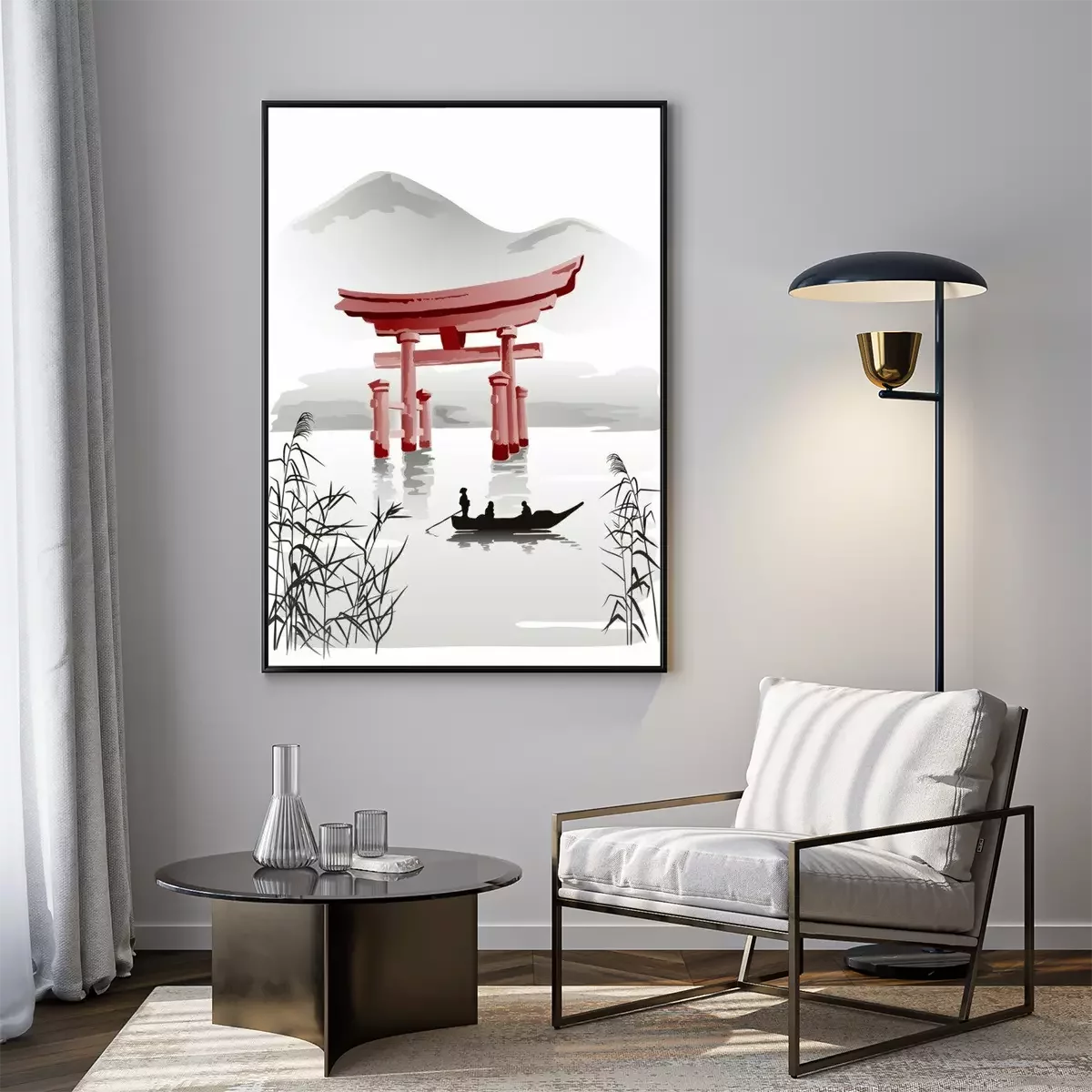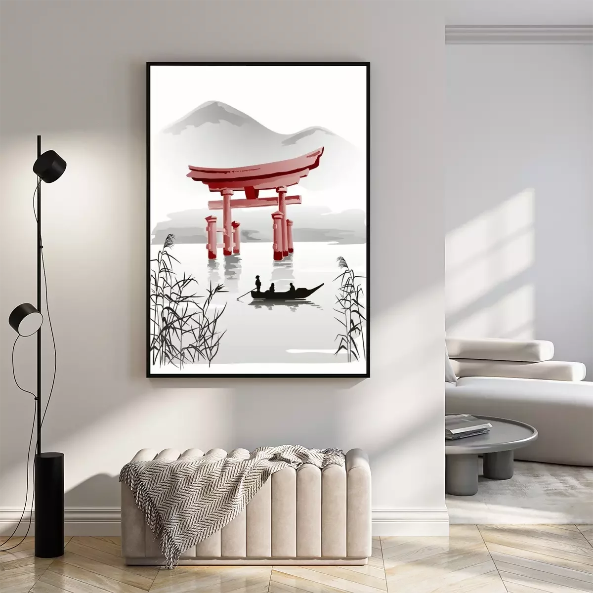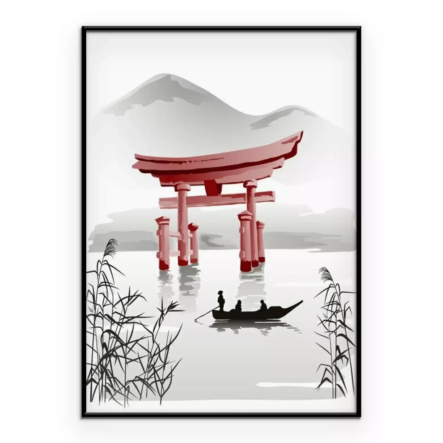 Poster: Ein Boot, das zum Torii-Tor fährt