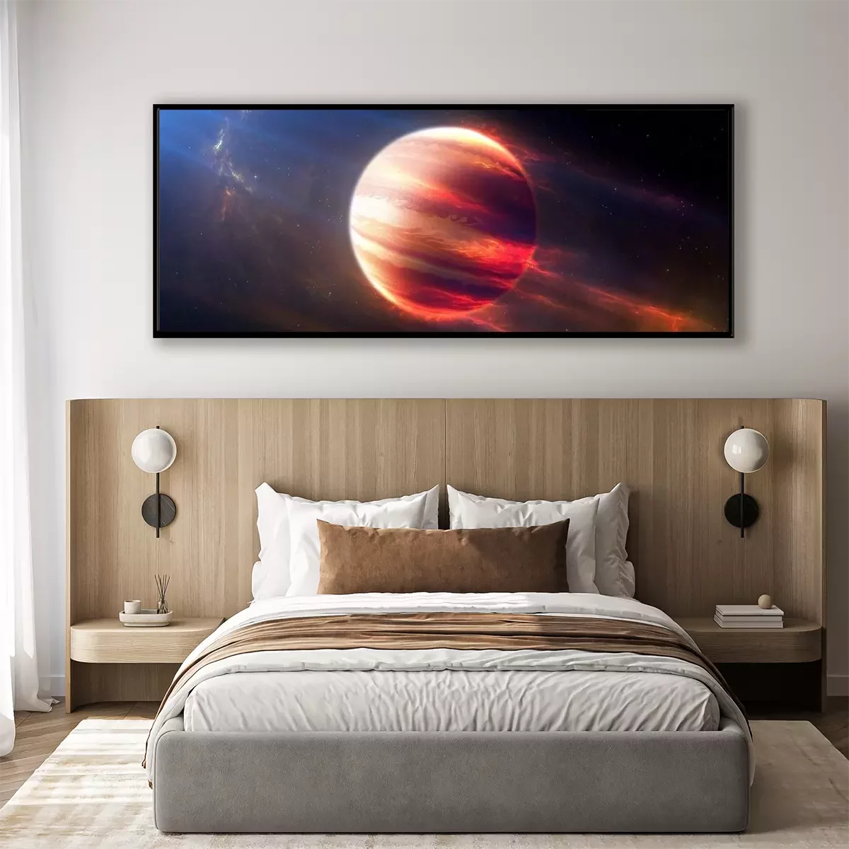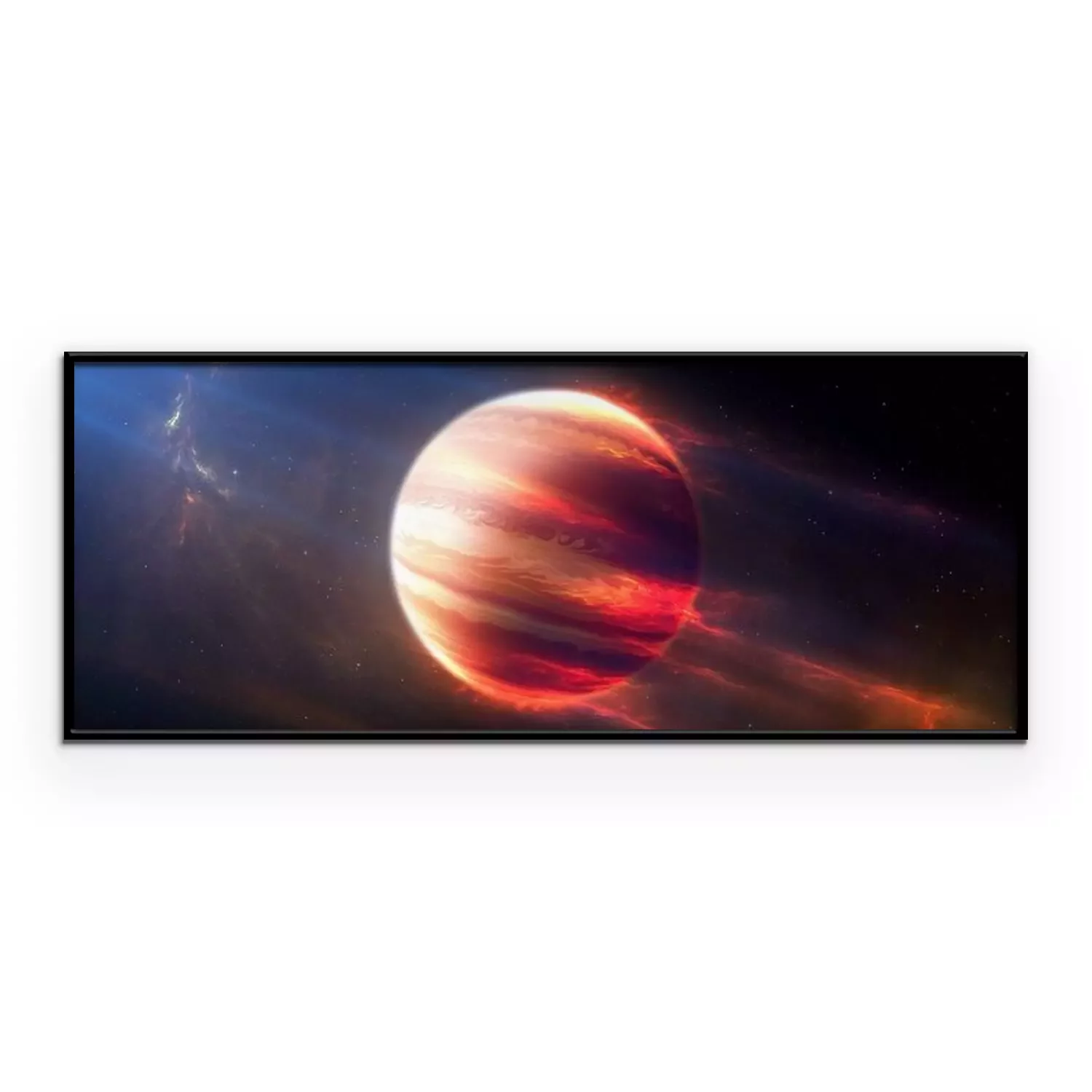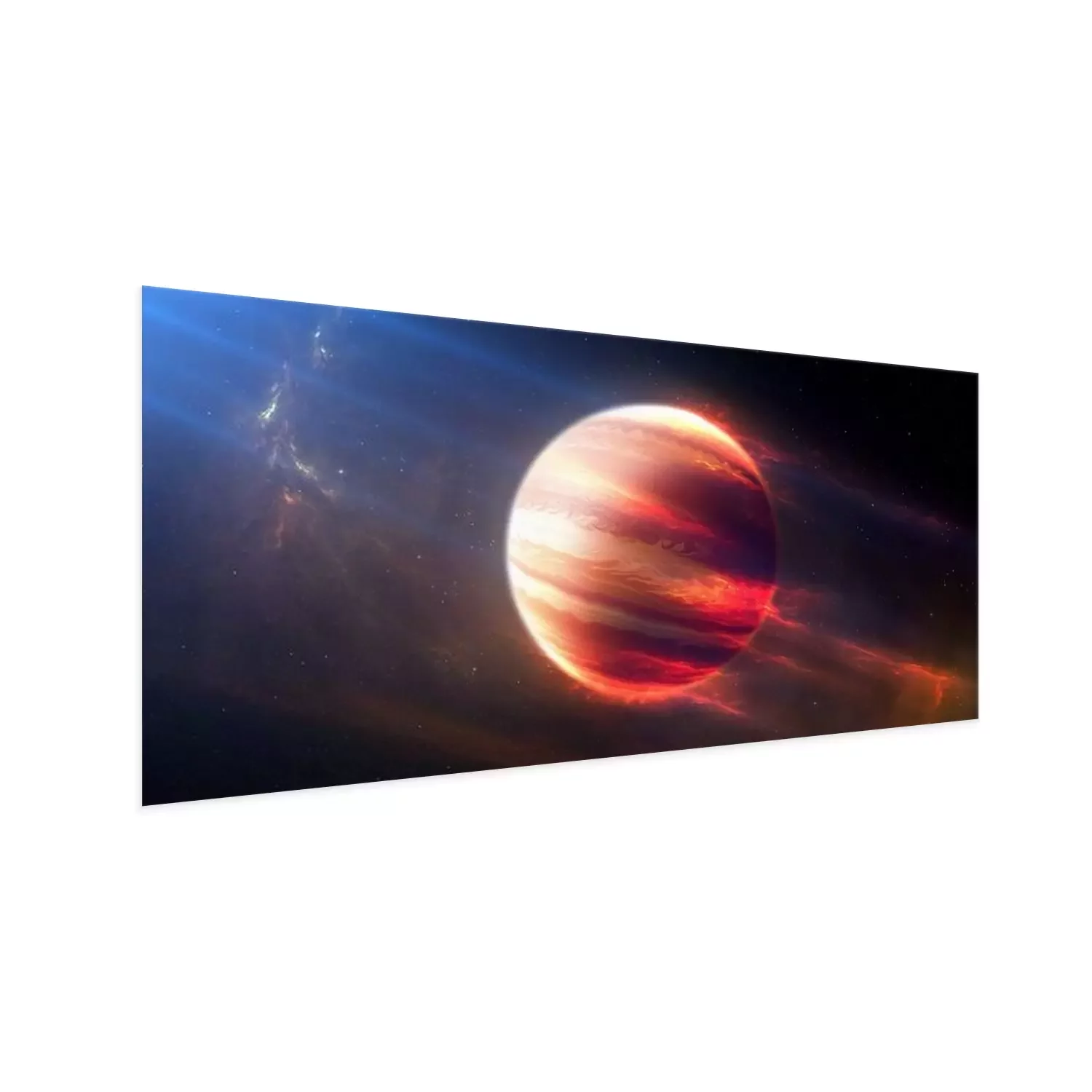 Poster: Ein feuriger Planet, der im Raum schwebt