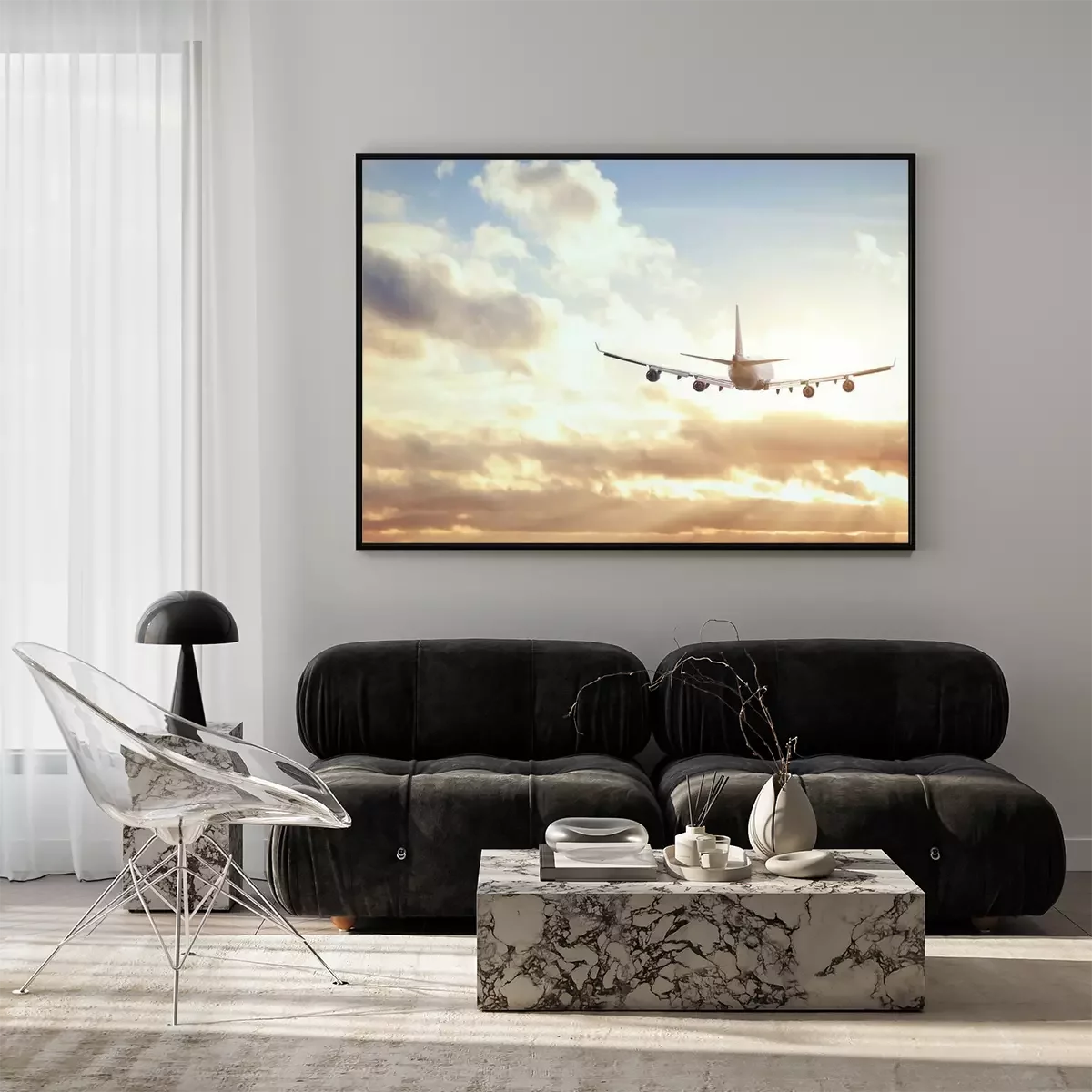 Poster: Ein Flugzeug über den Wolken