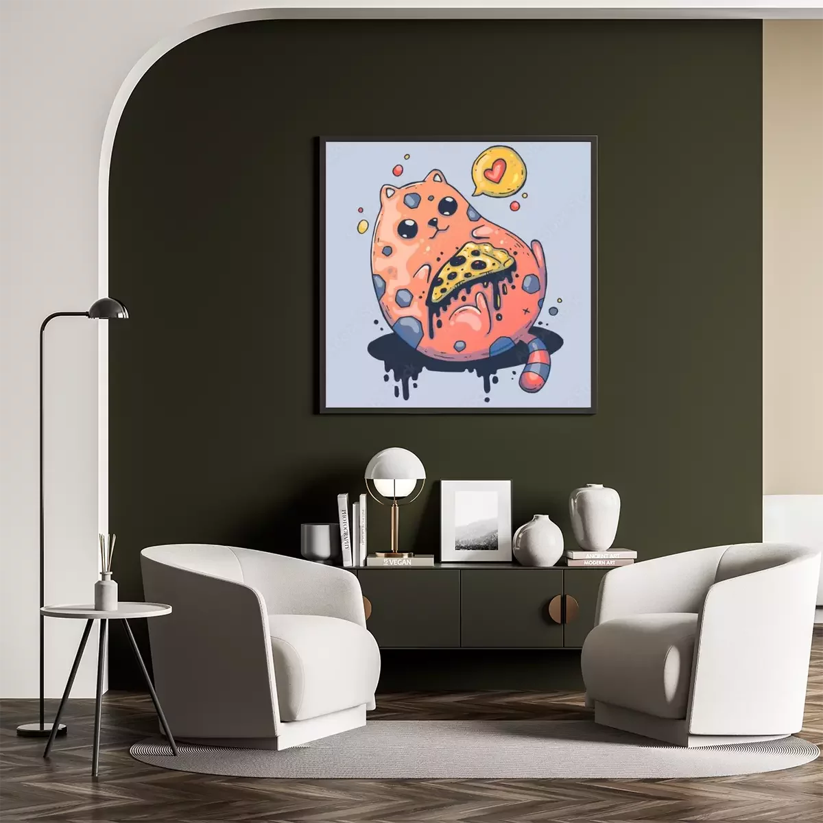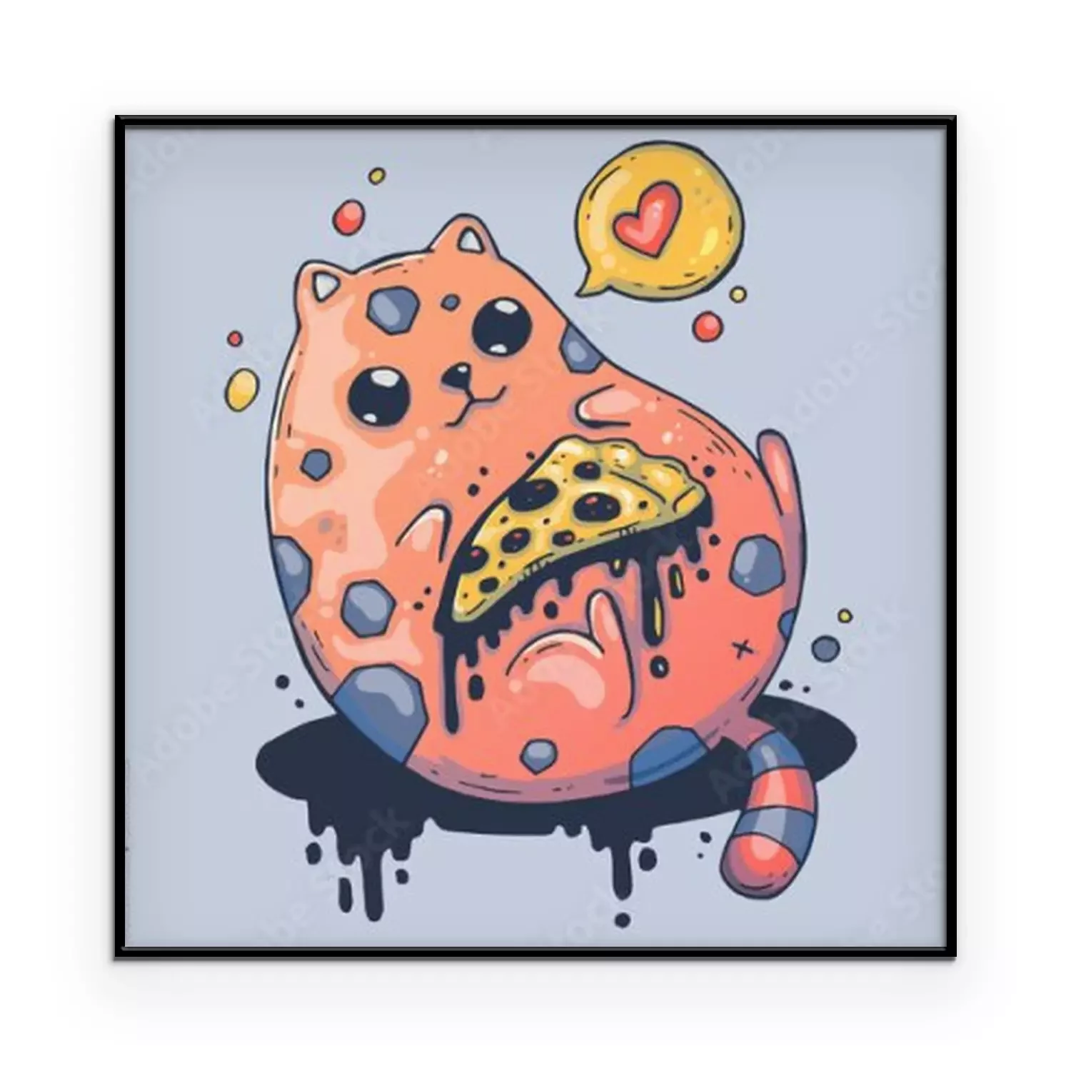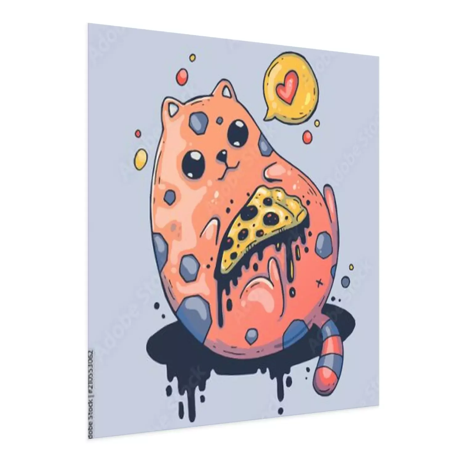 Poster: Ein Kätzchen mit einem Stück Pizza