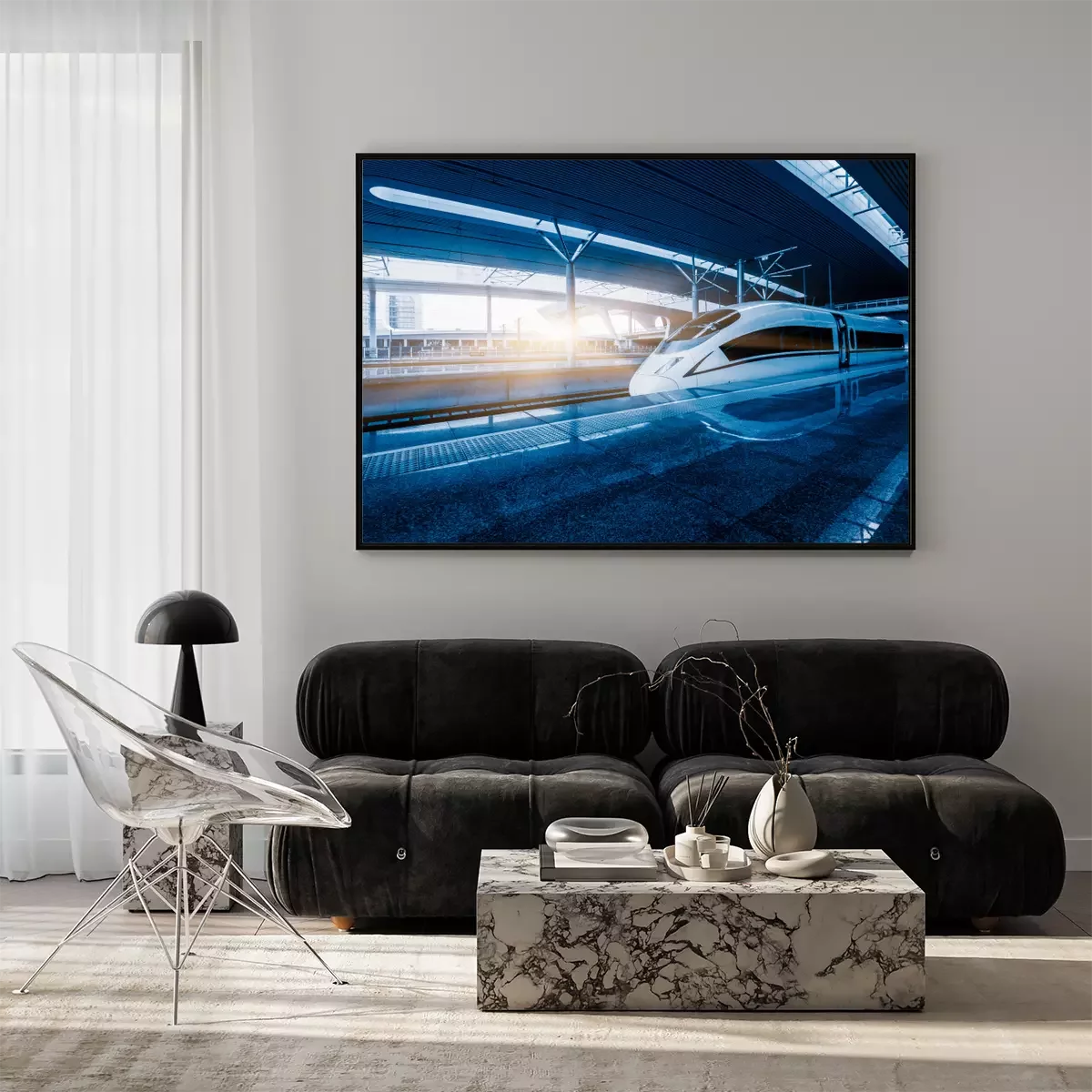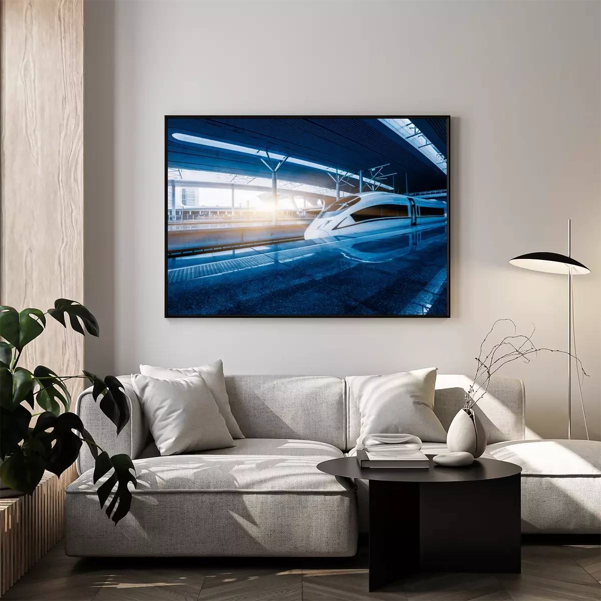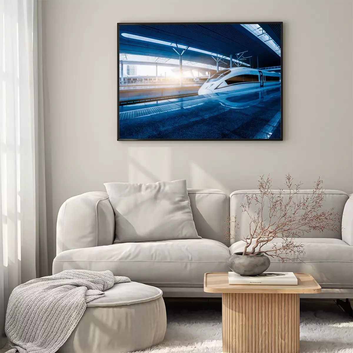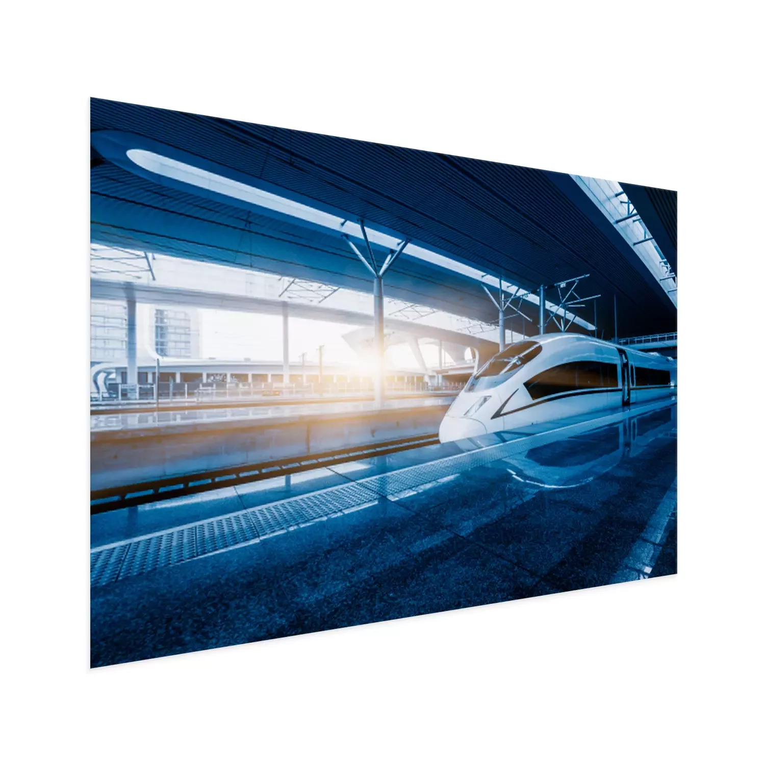 Poster: Ein moderner Hochgeschwindigkeitszug auf einem Bahnsteig
