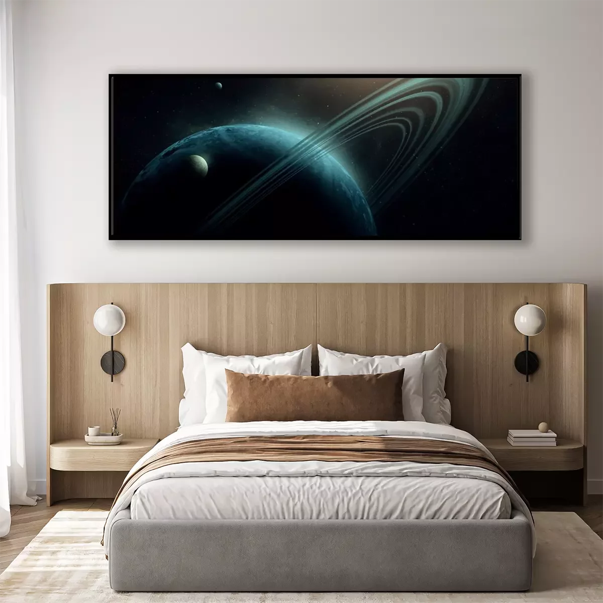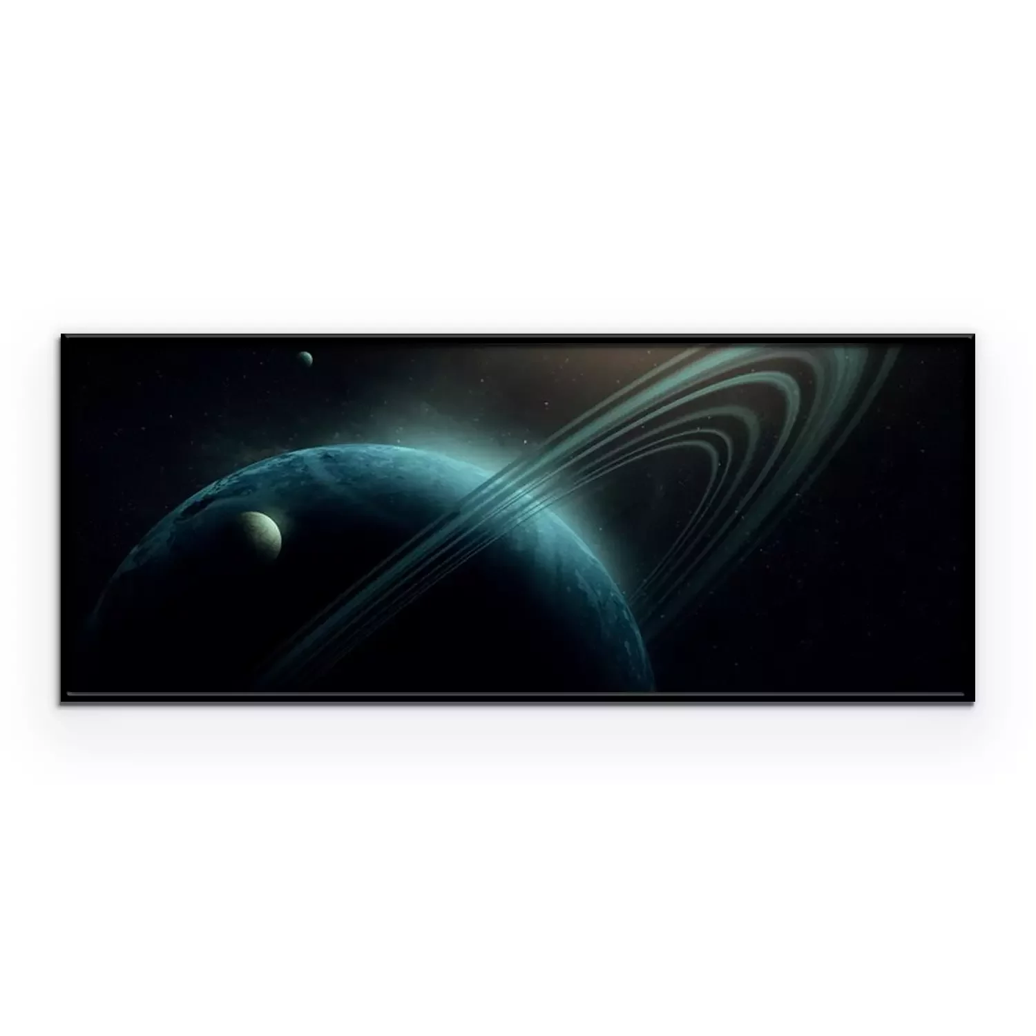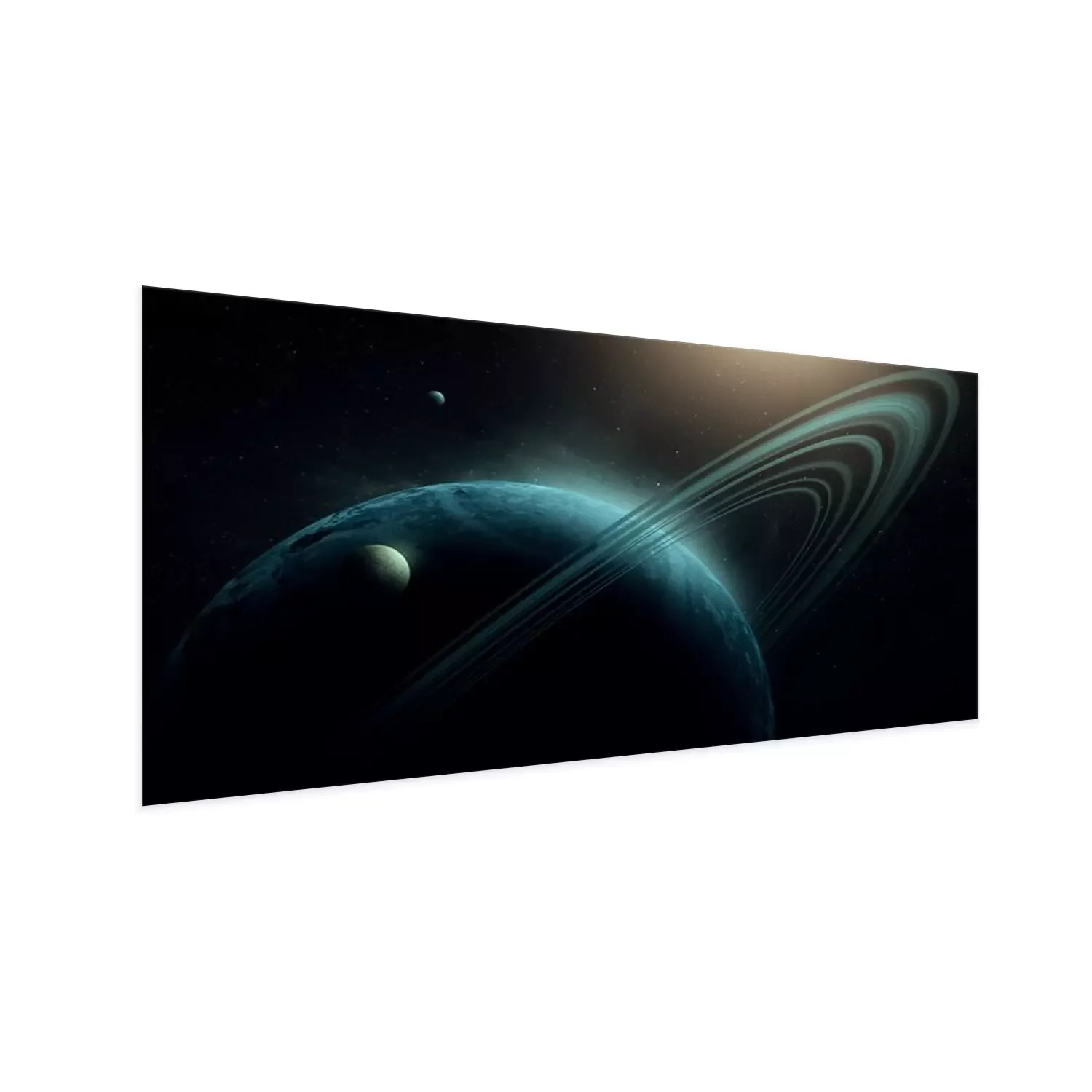 Poster: Ein Planet mit Ringen, die das Licht reflektieren