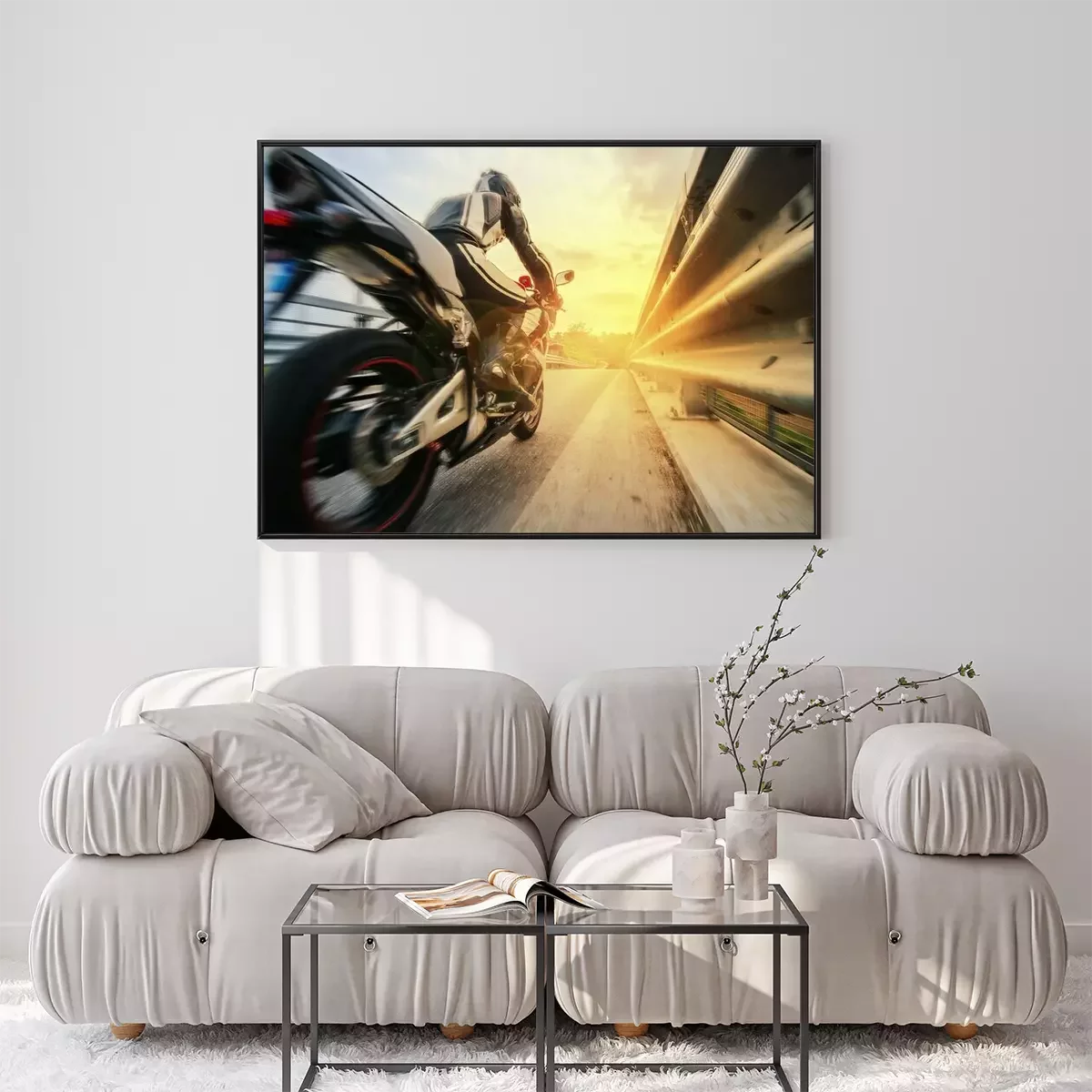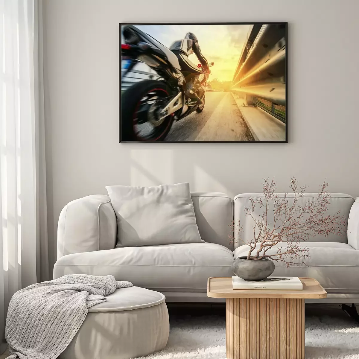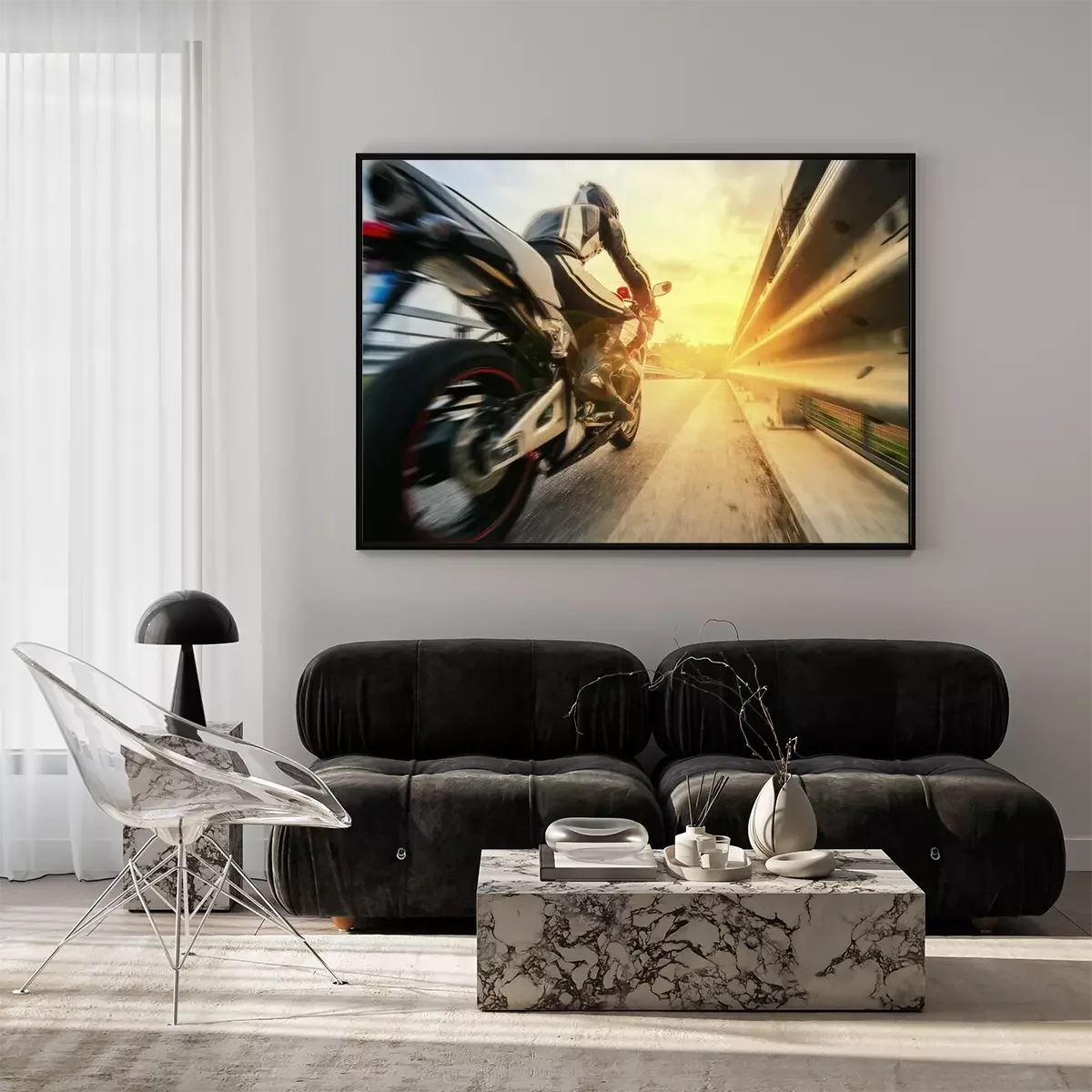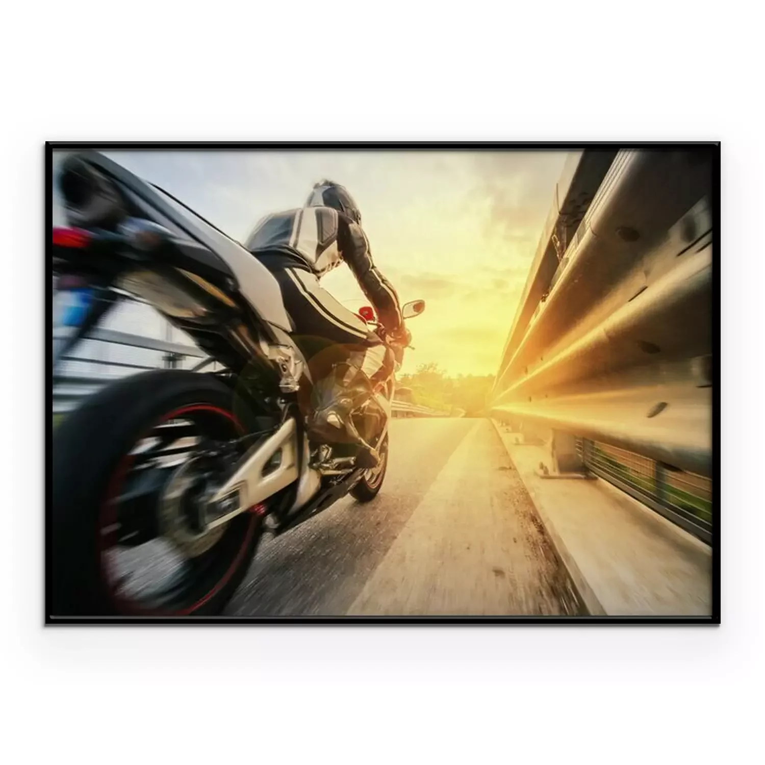 Poster Ein schneller Motorradfahrer auf der Straße
