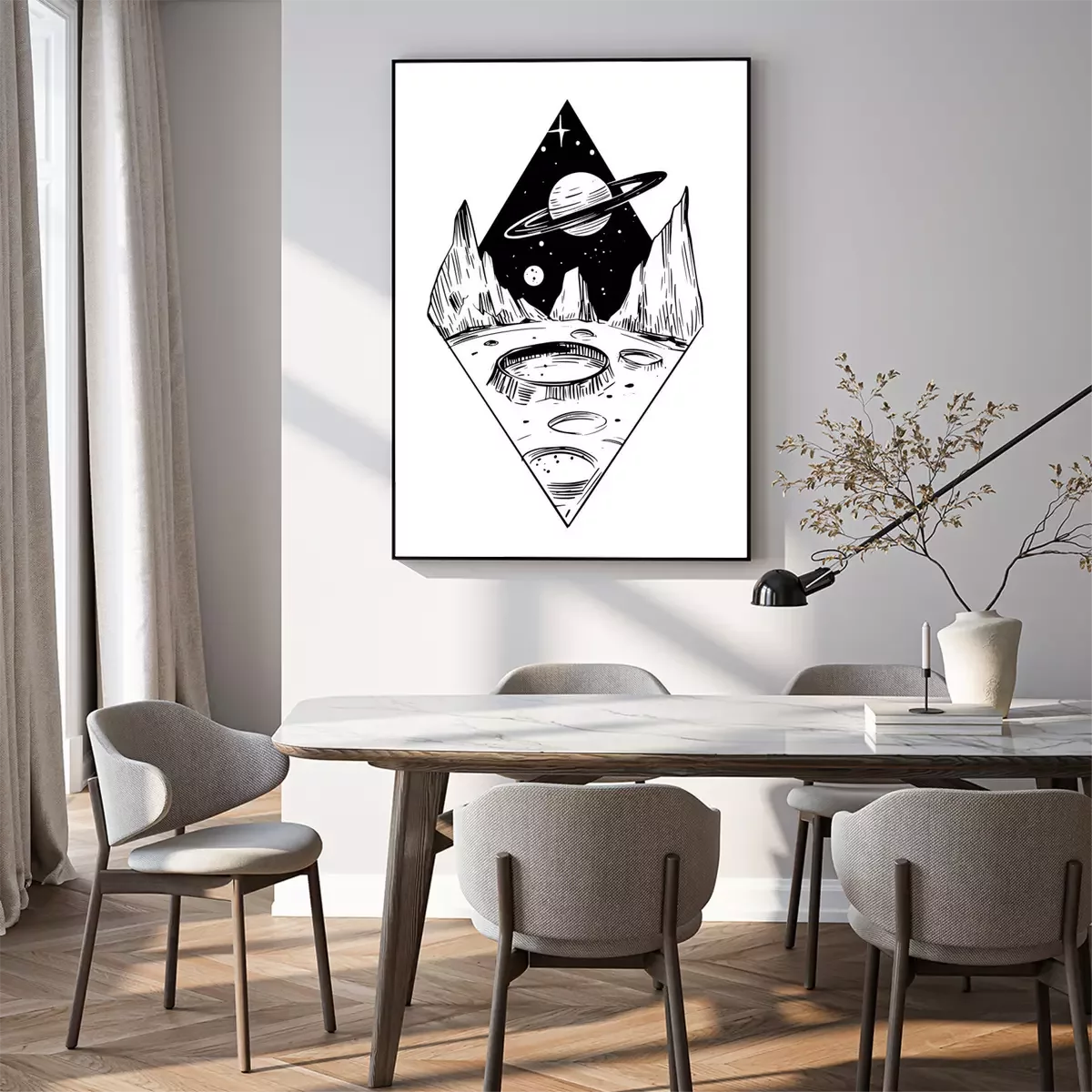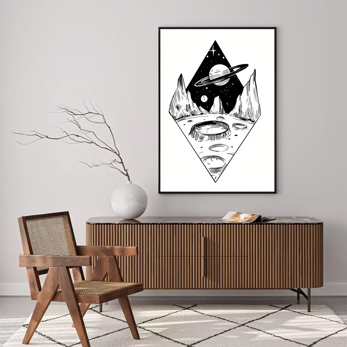 Poster: Ein Stück Weltraum in Schwarz und Weiß