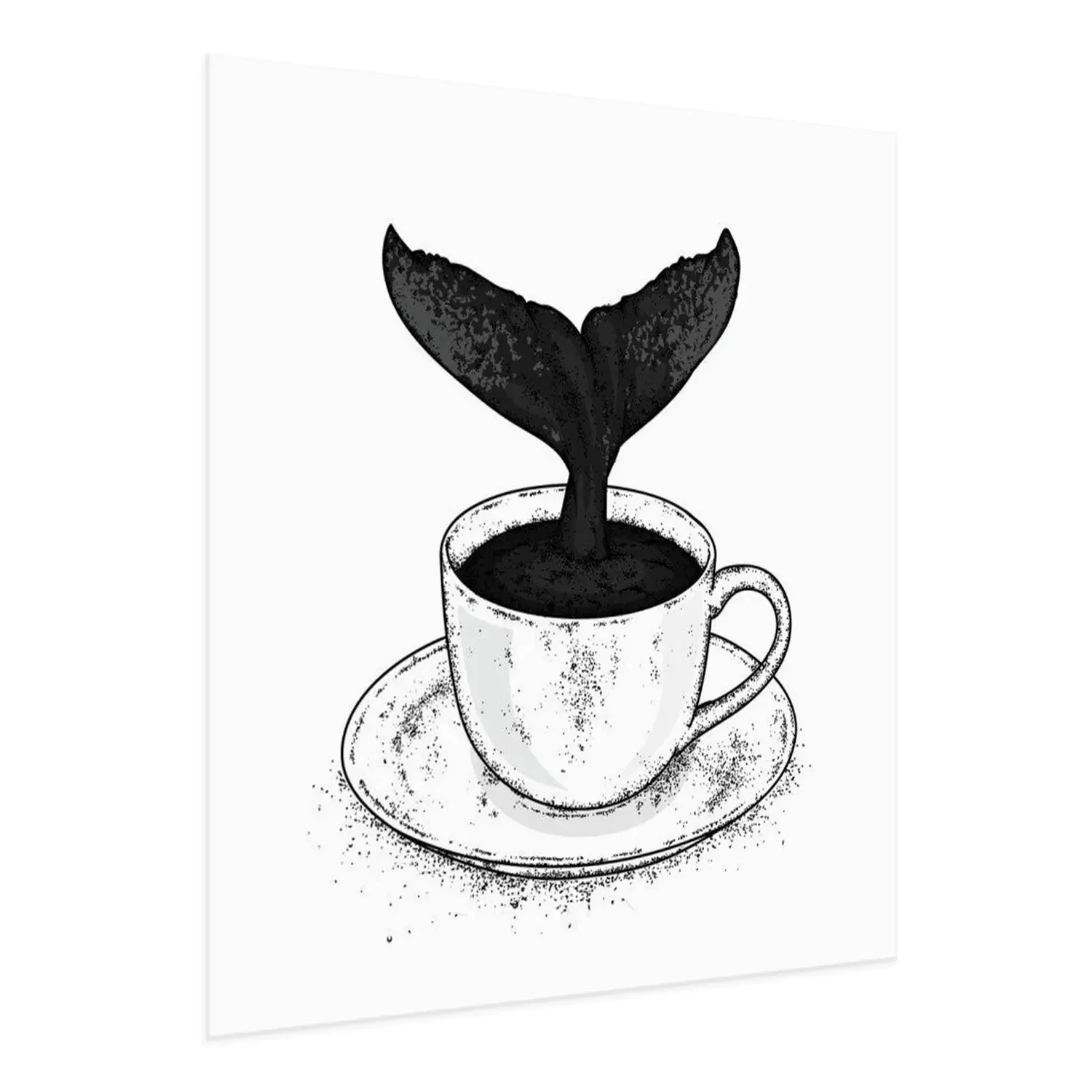 Poster Ein Wal, der ins Wasser taucht. Vector Illustration für eine Postkarte oder ein Plakat, Druck für Kleidung. Meer und Ozean. Wal in der Tasse.