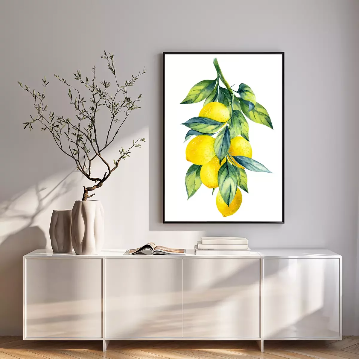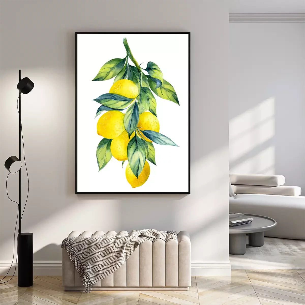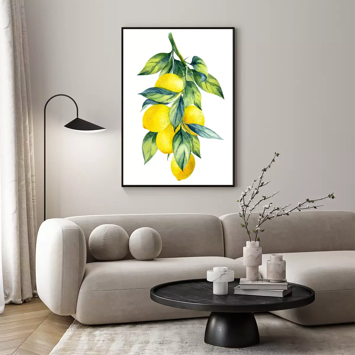 Aquarellzitronen mit Blättern auf weißem Hintergrund