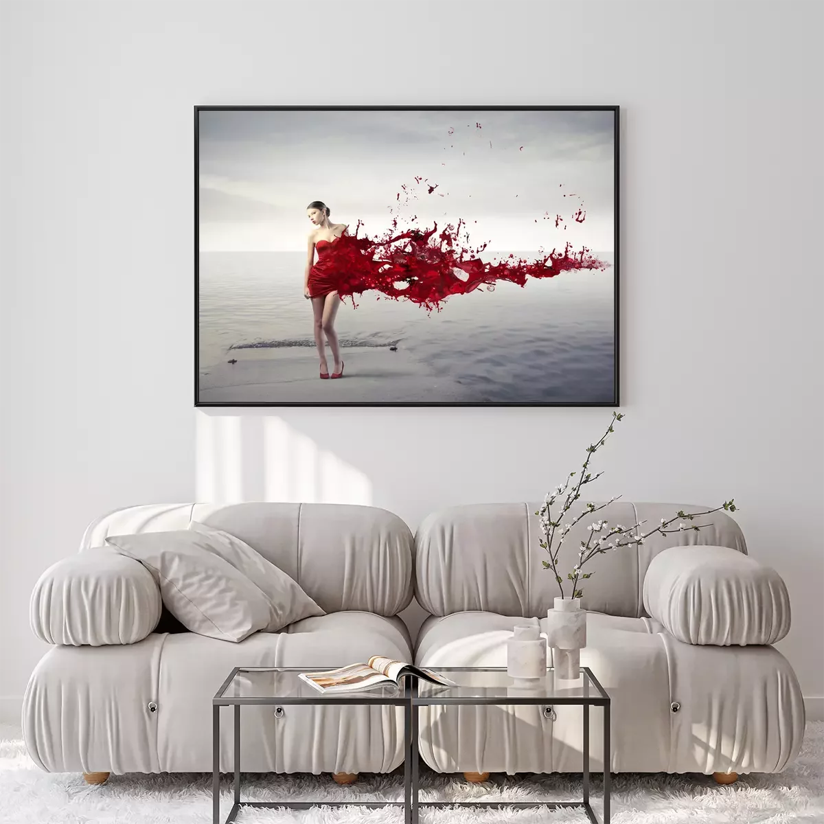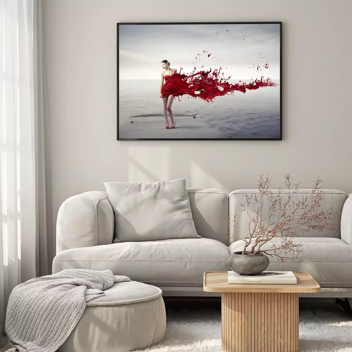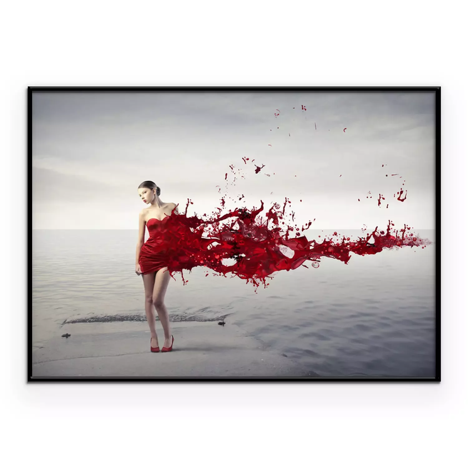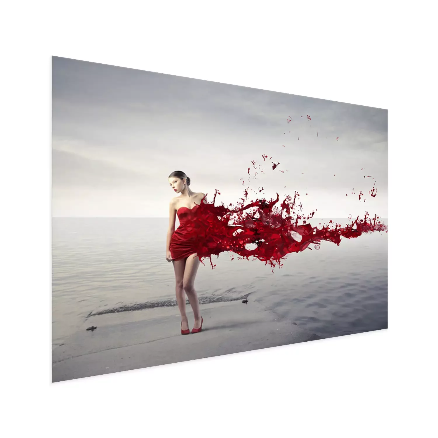 Poster: Eine Frau in einem abstrakten roten Kleid