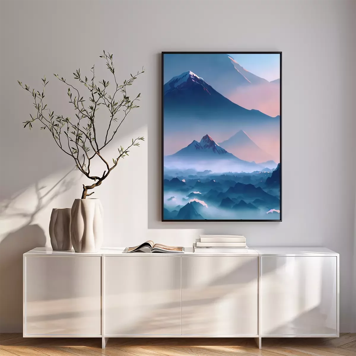 Poster: Eine Illustration mit Blick auf die majestätischen Berge