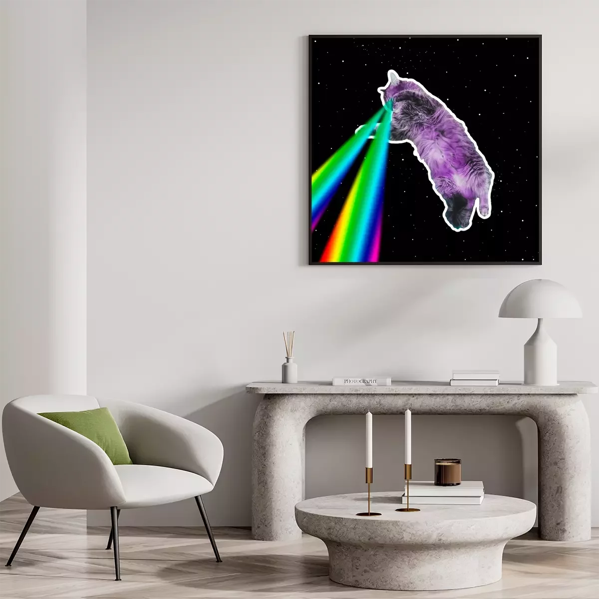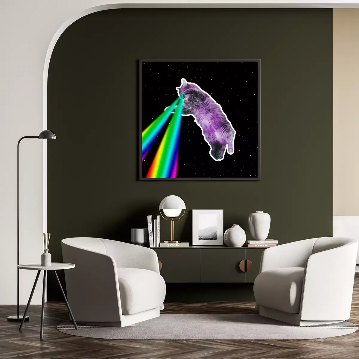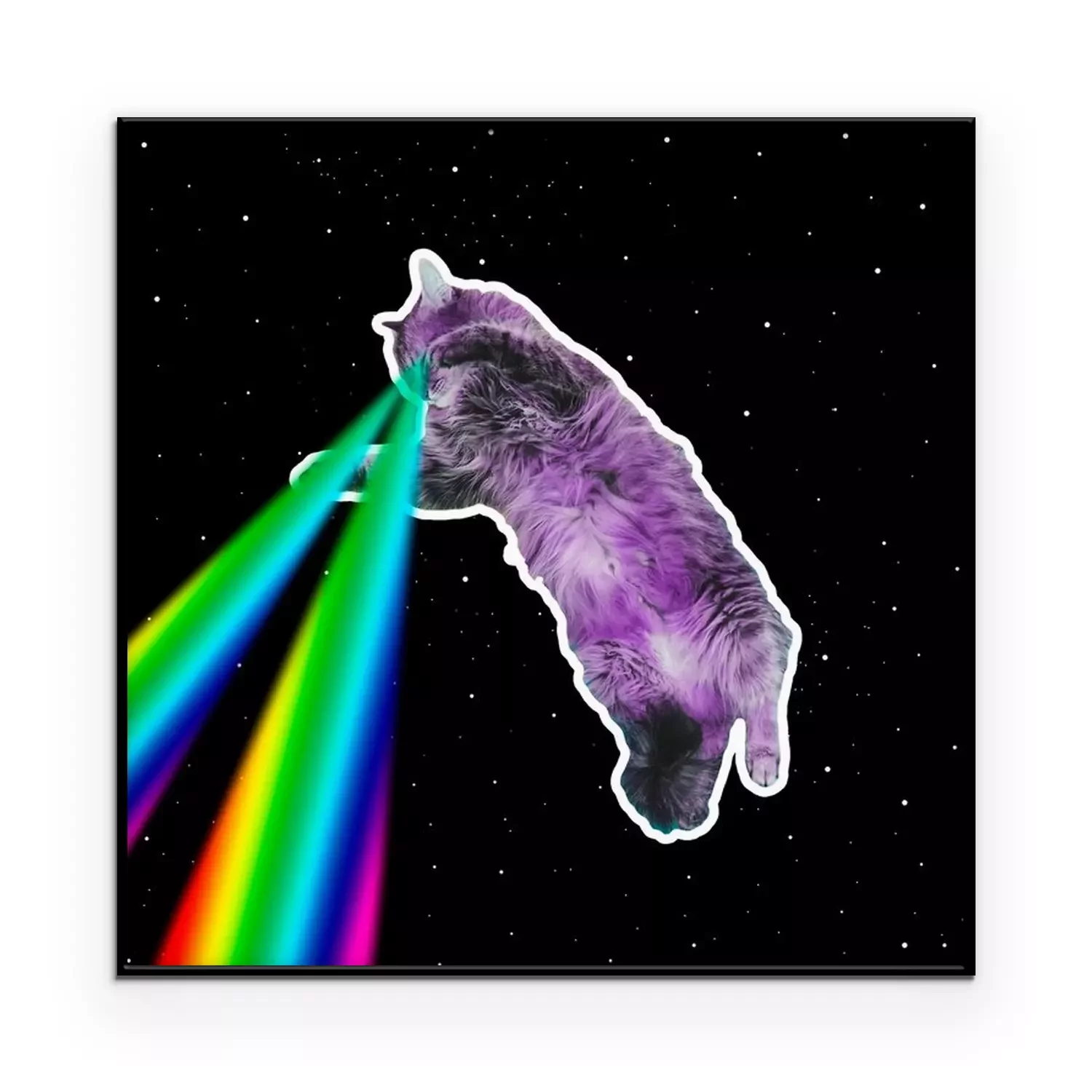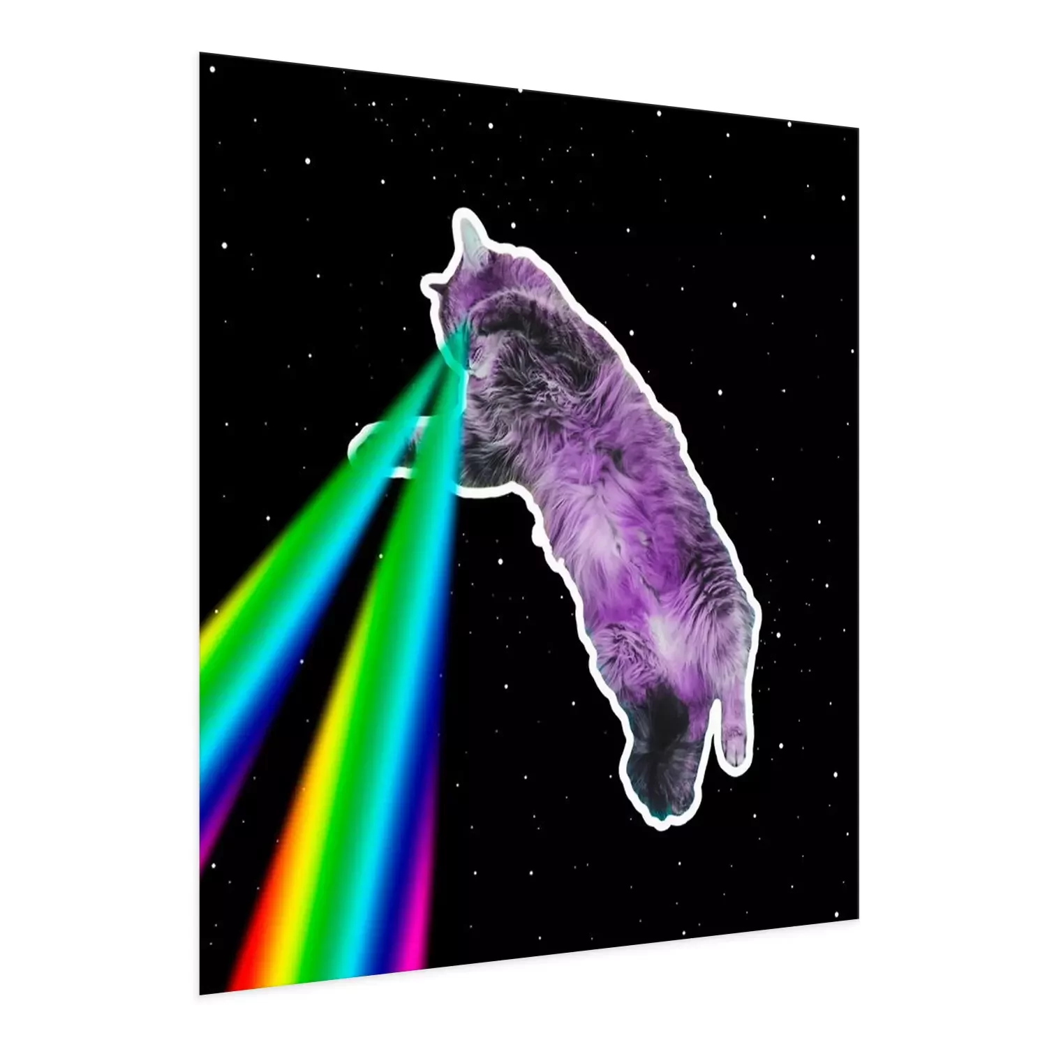 Poster: Eine Katze mit Regenbogenlasern