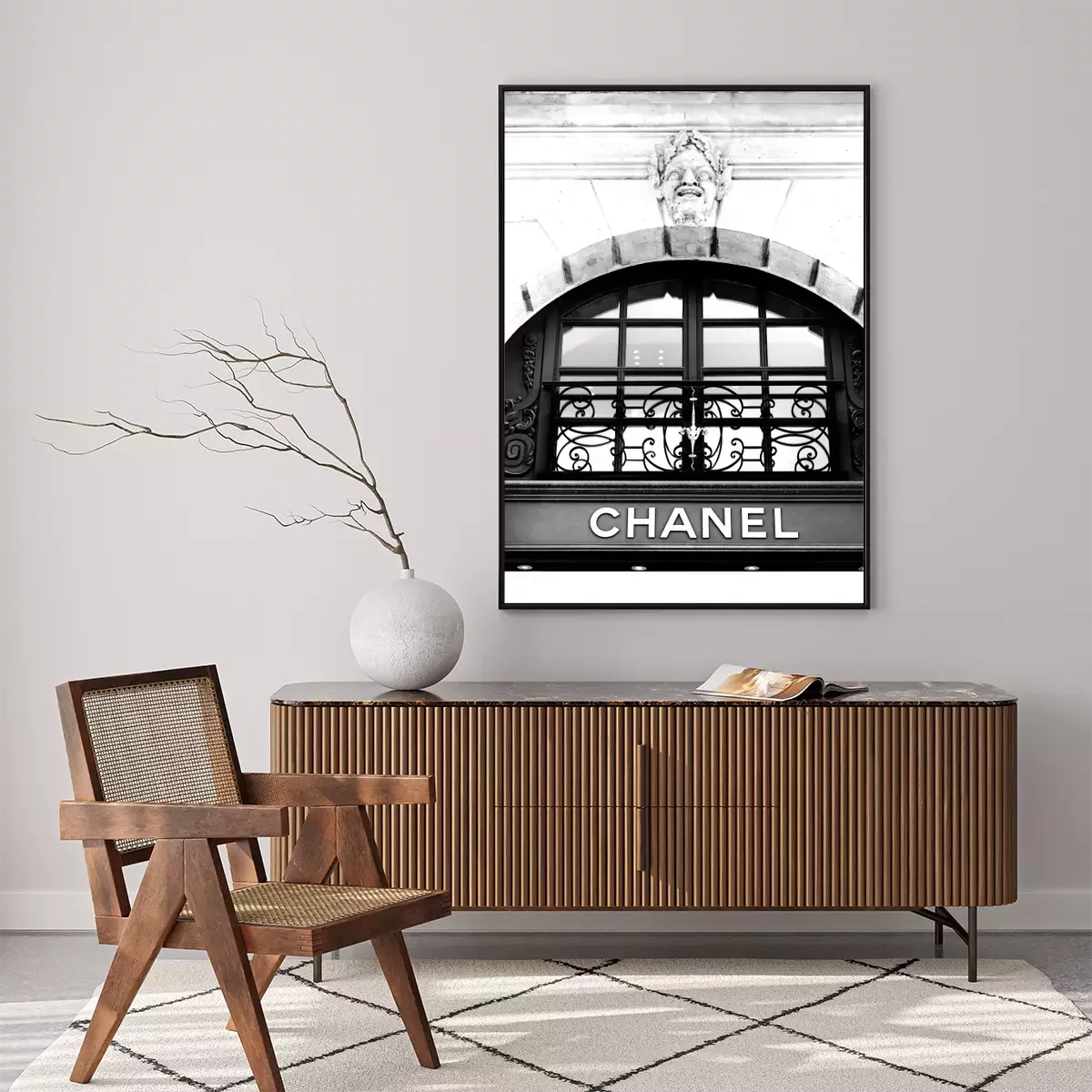 Eine minimalistische aufnahme des chanel-ladens