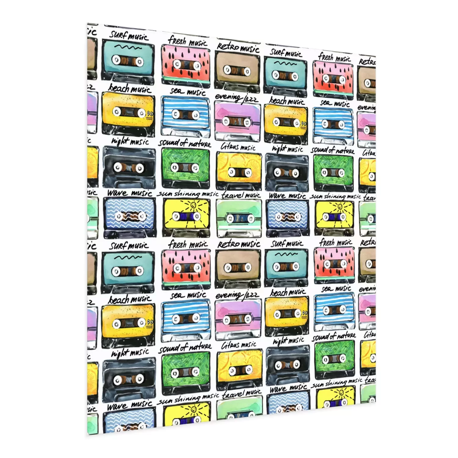Aquarellmuster mit Retro Kassetten. Audiokassettenillustration.
