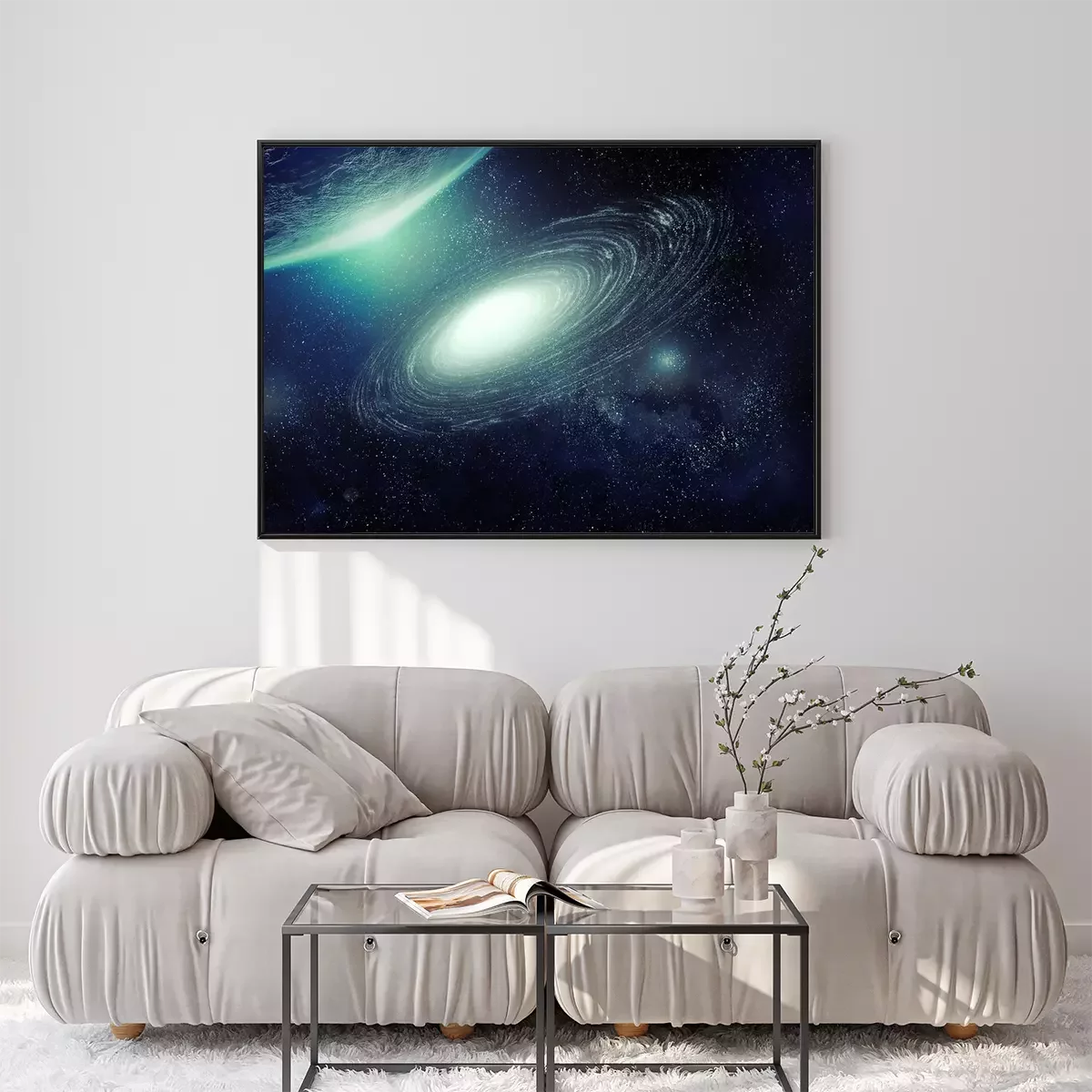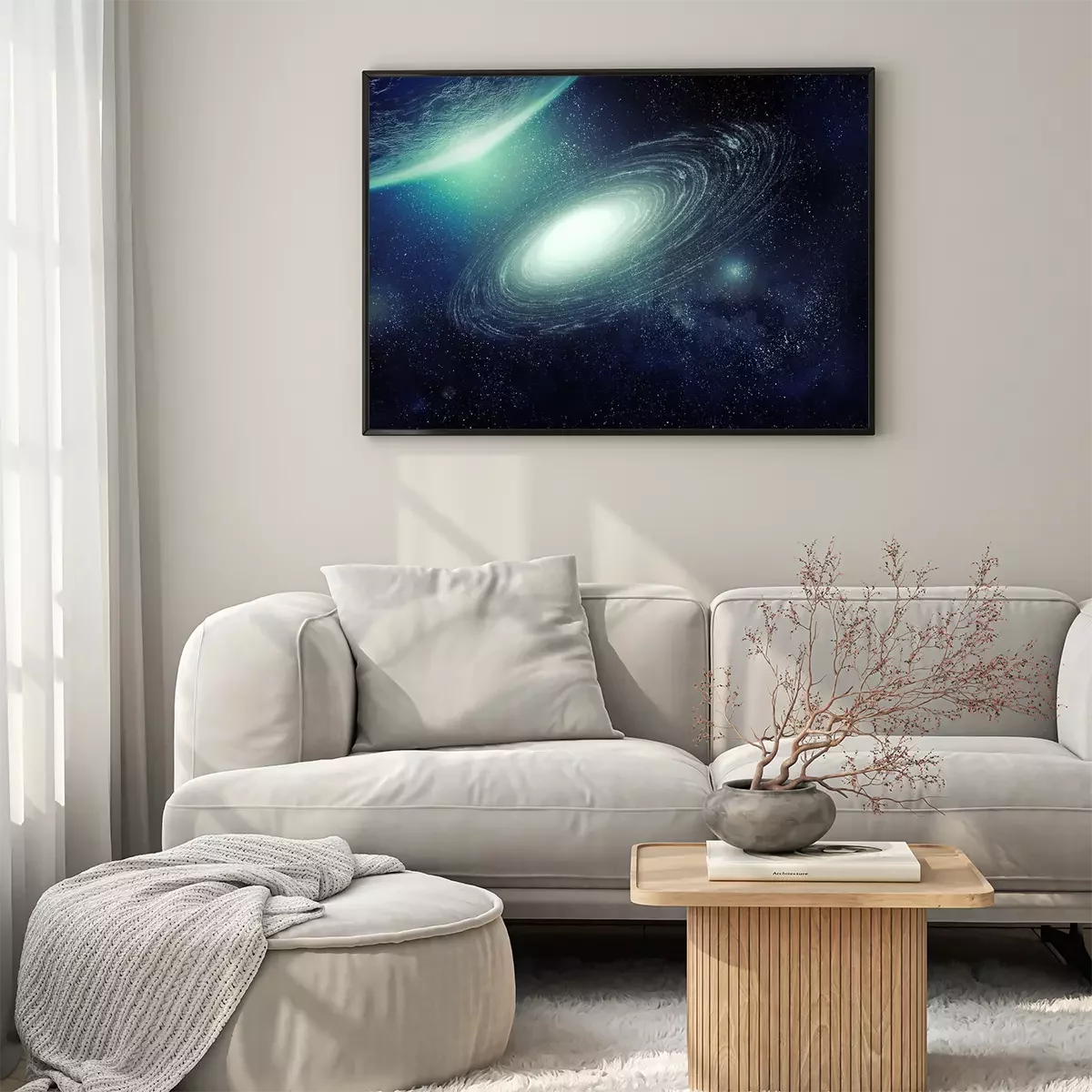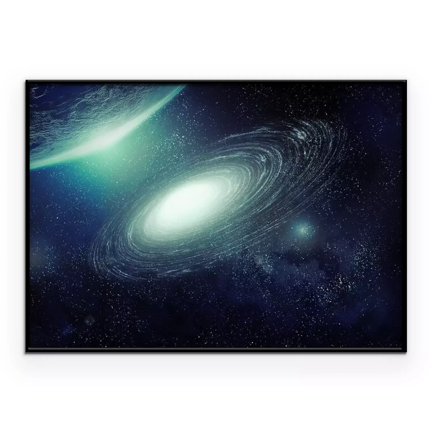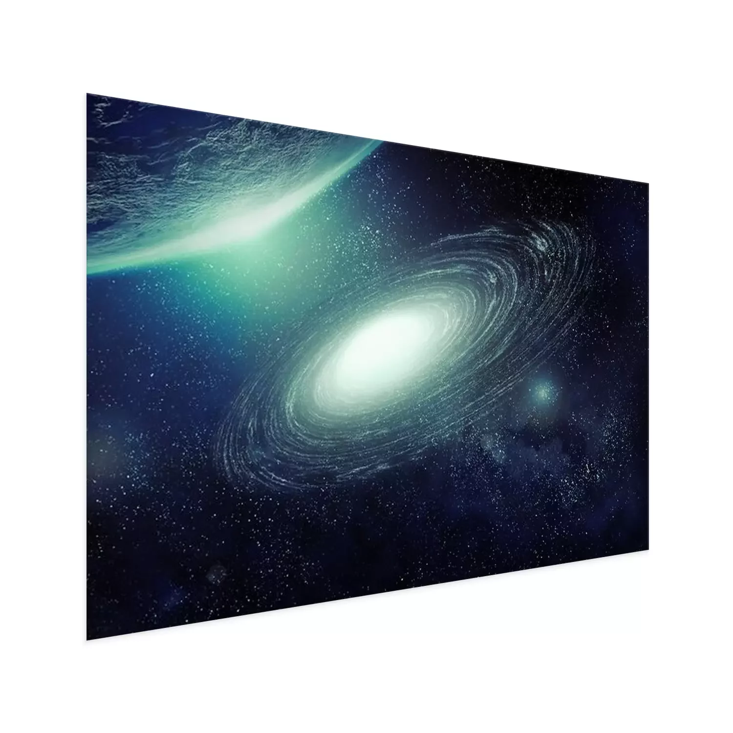 Poster: Eine schöne Galaxie begleitet von einem Planeten