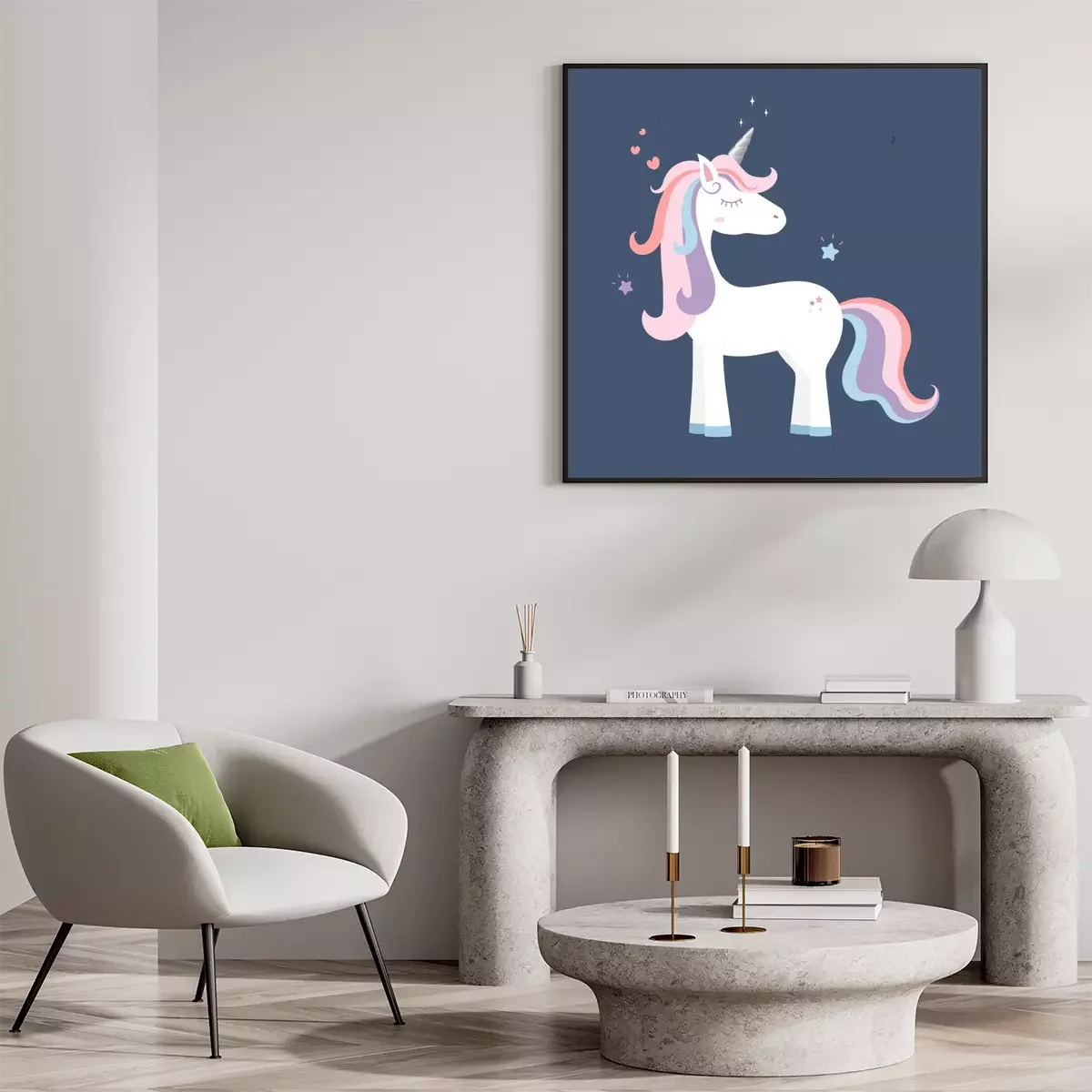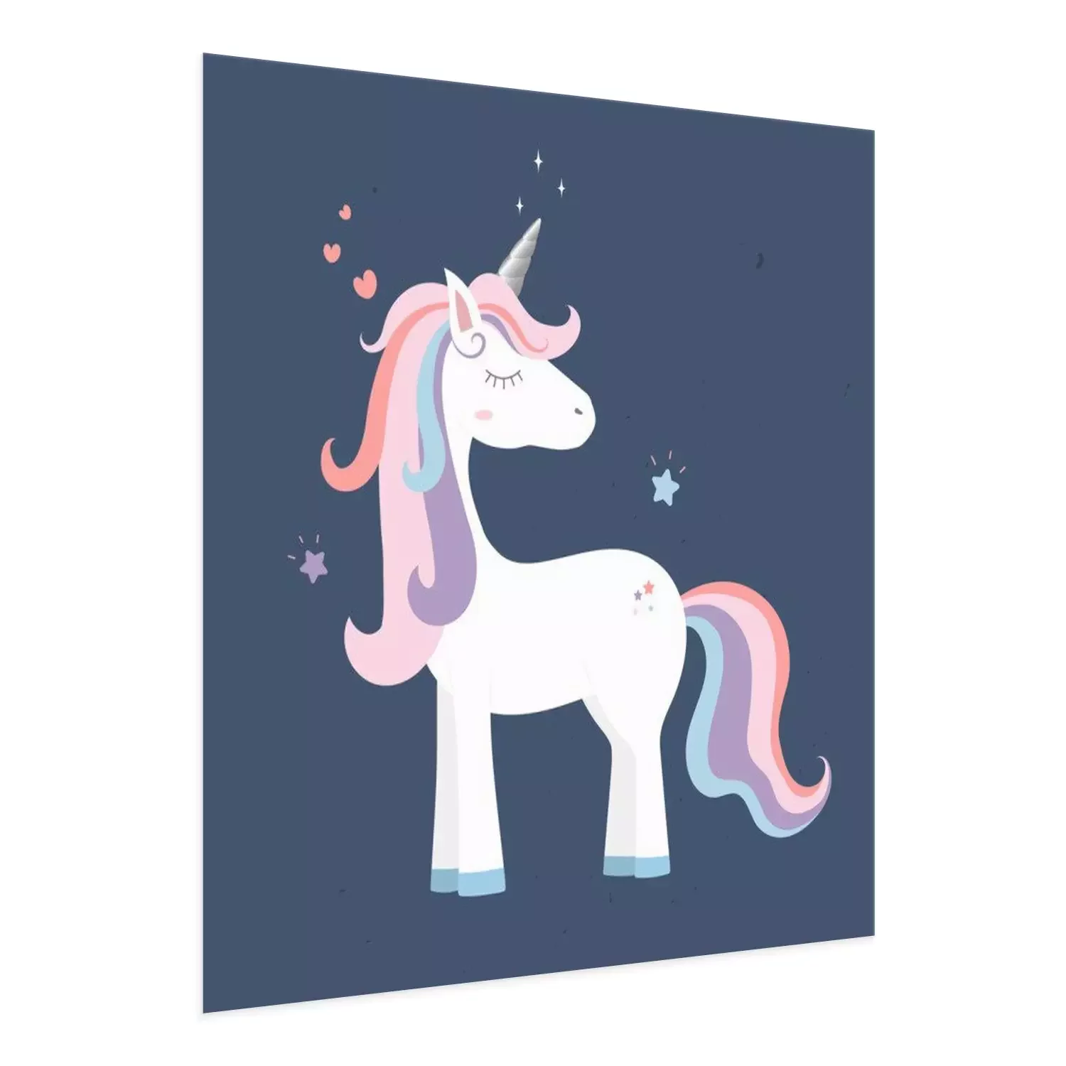 Poster Einhorn im Profil auf dunkelblauem Hintergrund